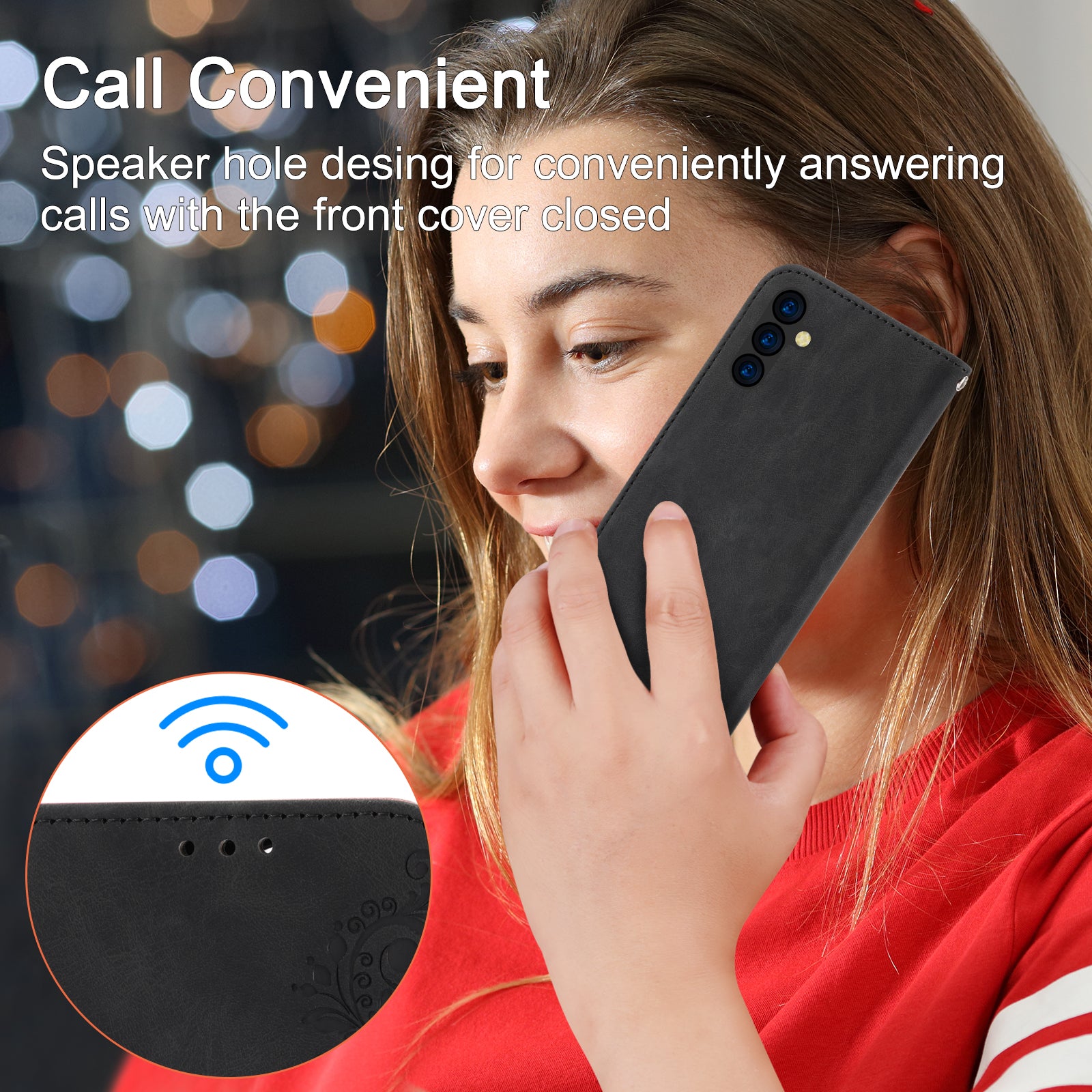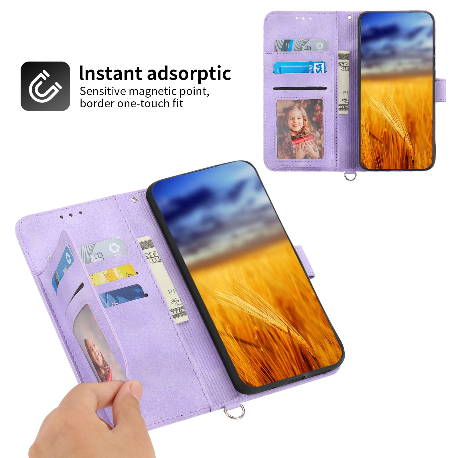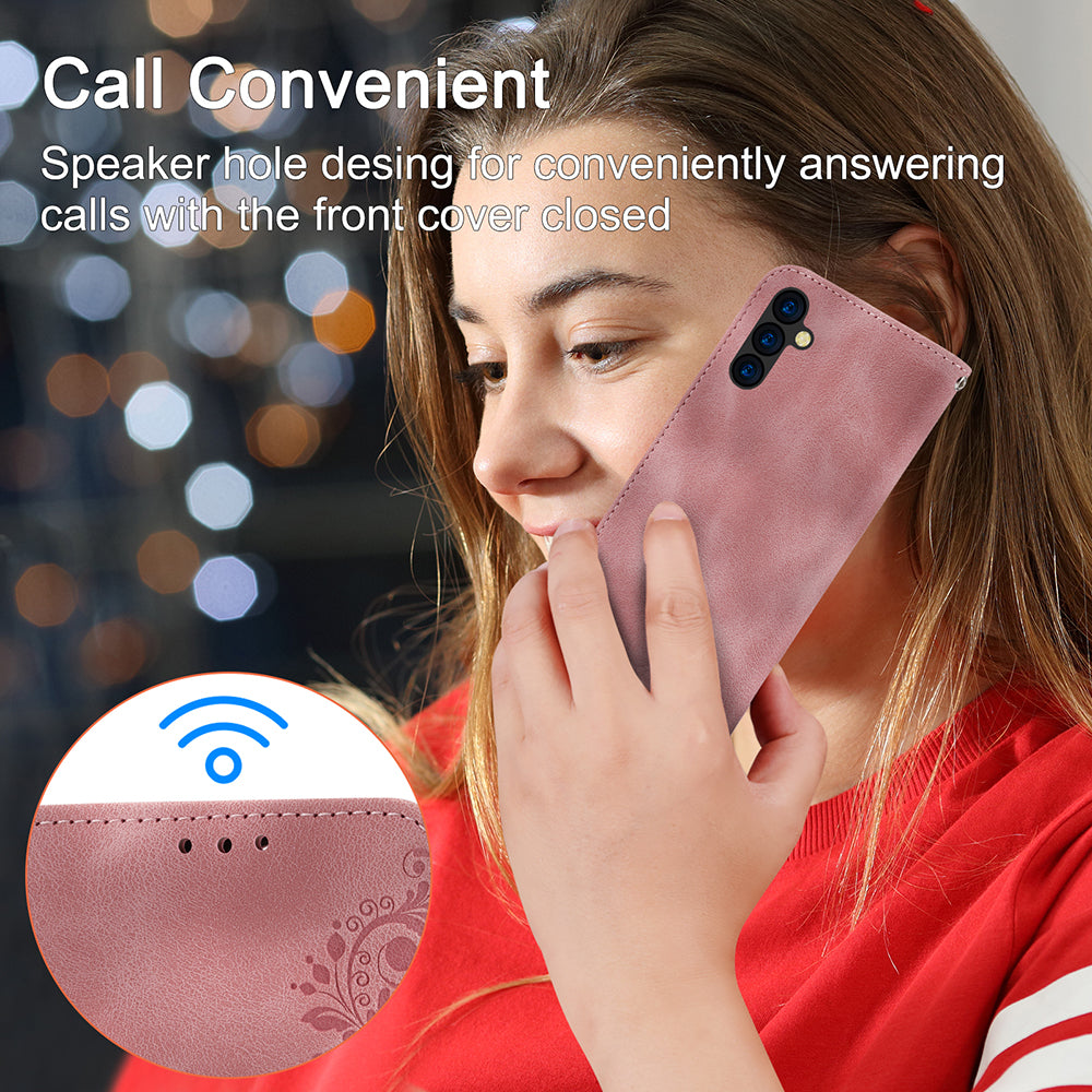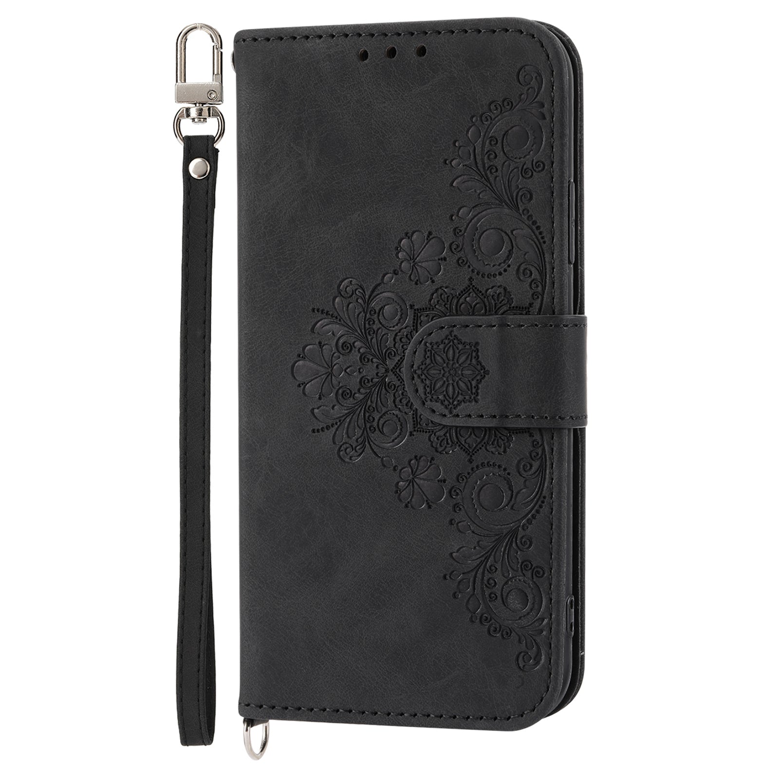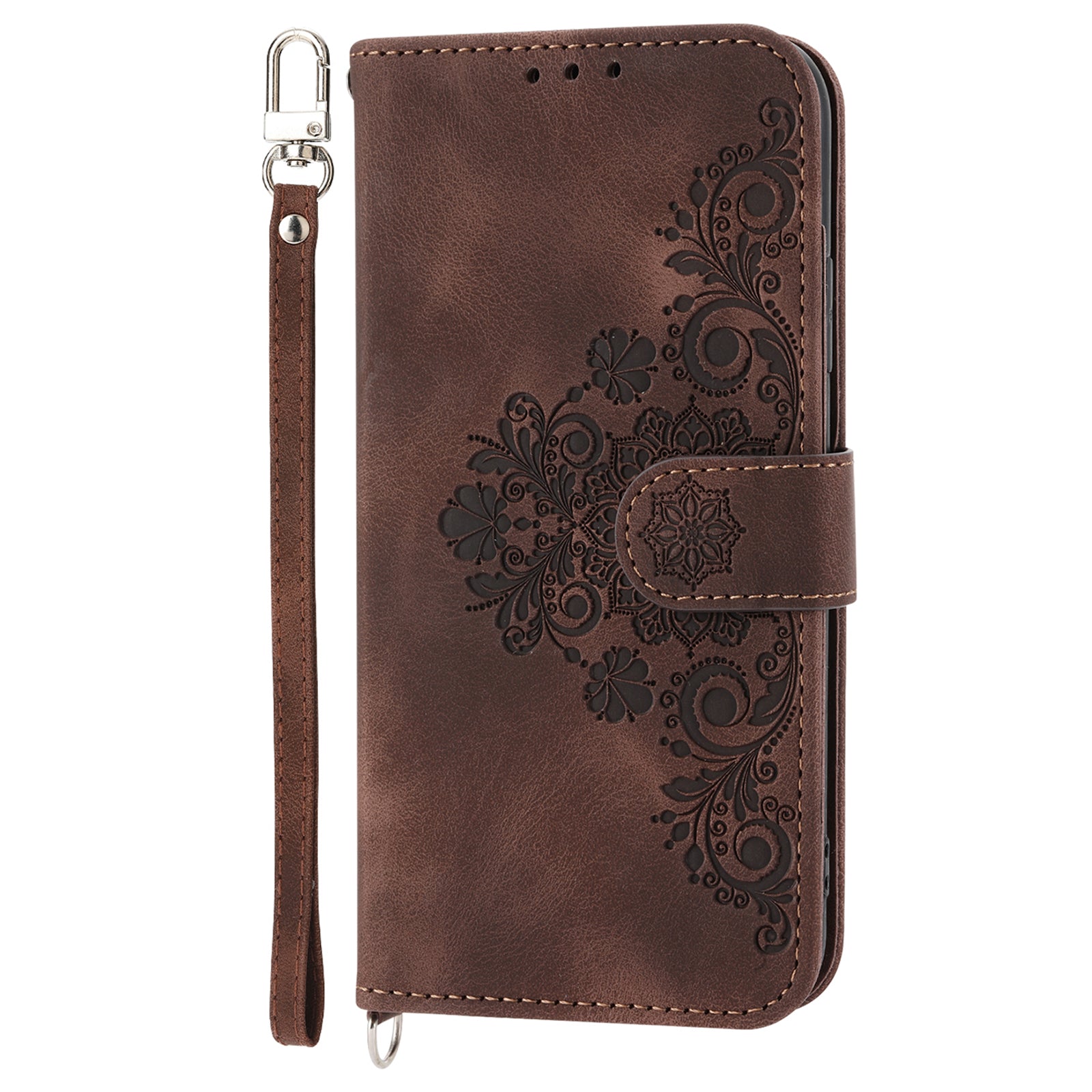 Flower Imprinted Phone Shell for Samsung Galaxy A24 4G Anti-Drop Phone Case Skin-Touch Leather Cover with Strap