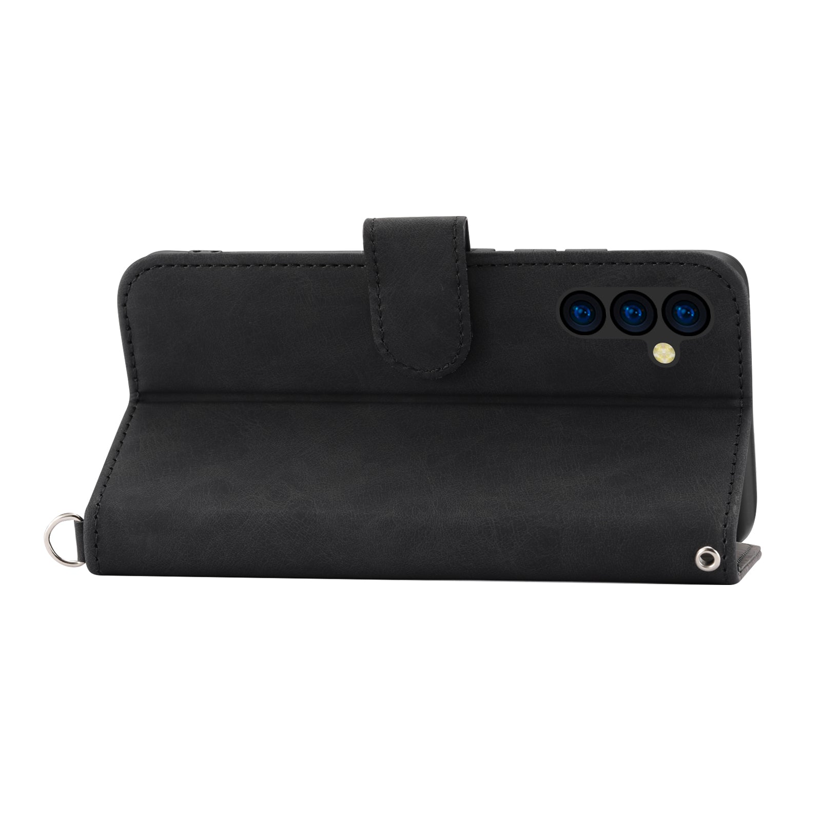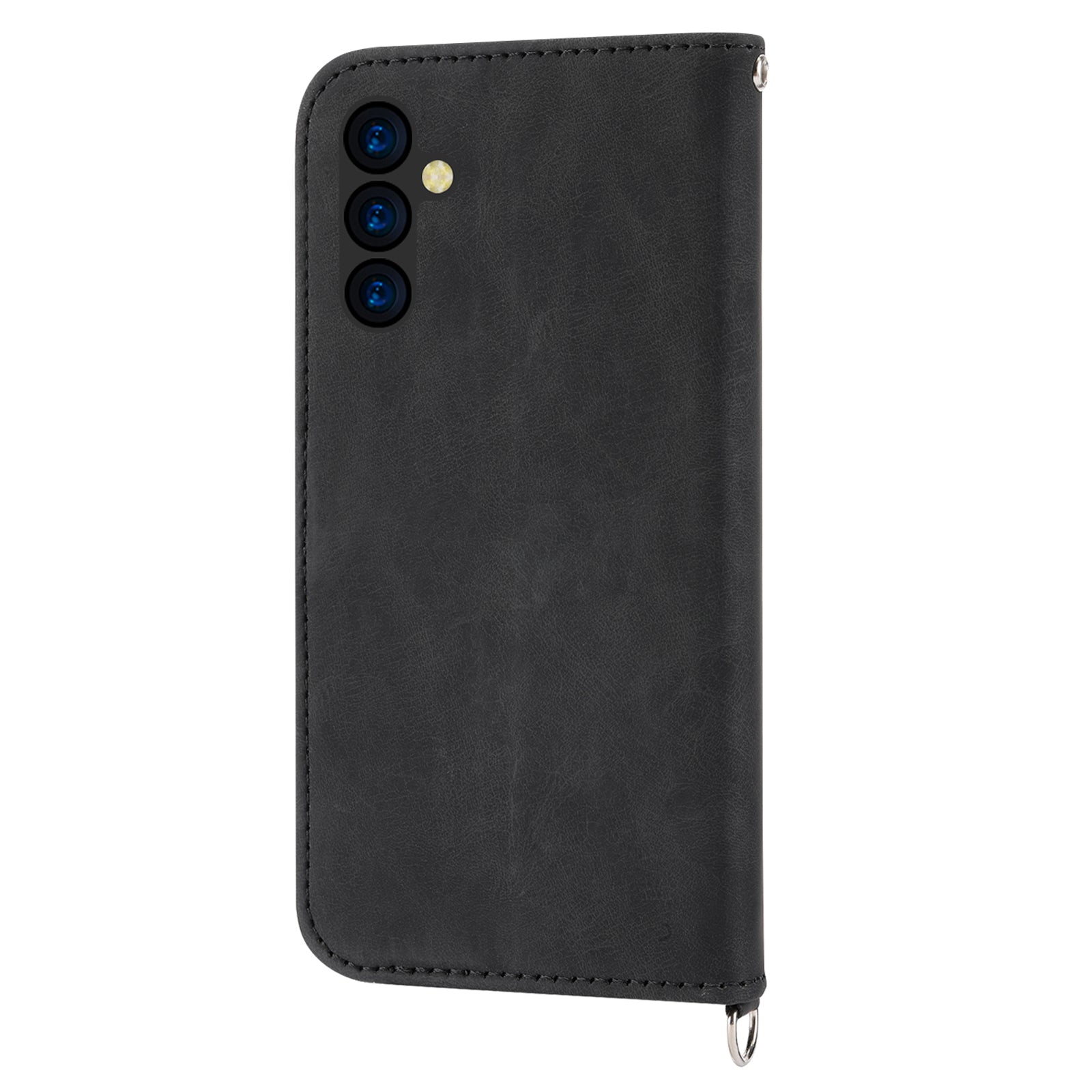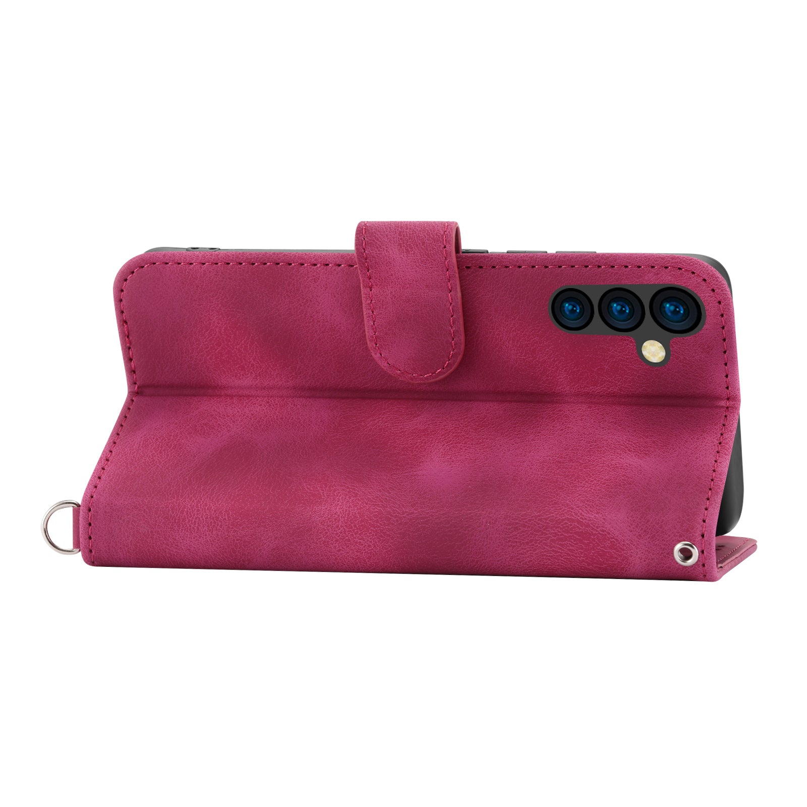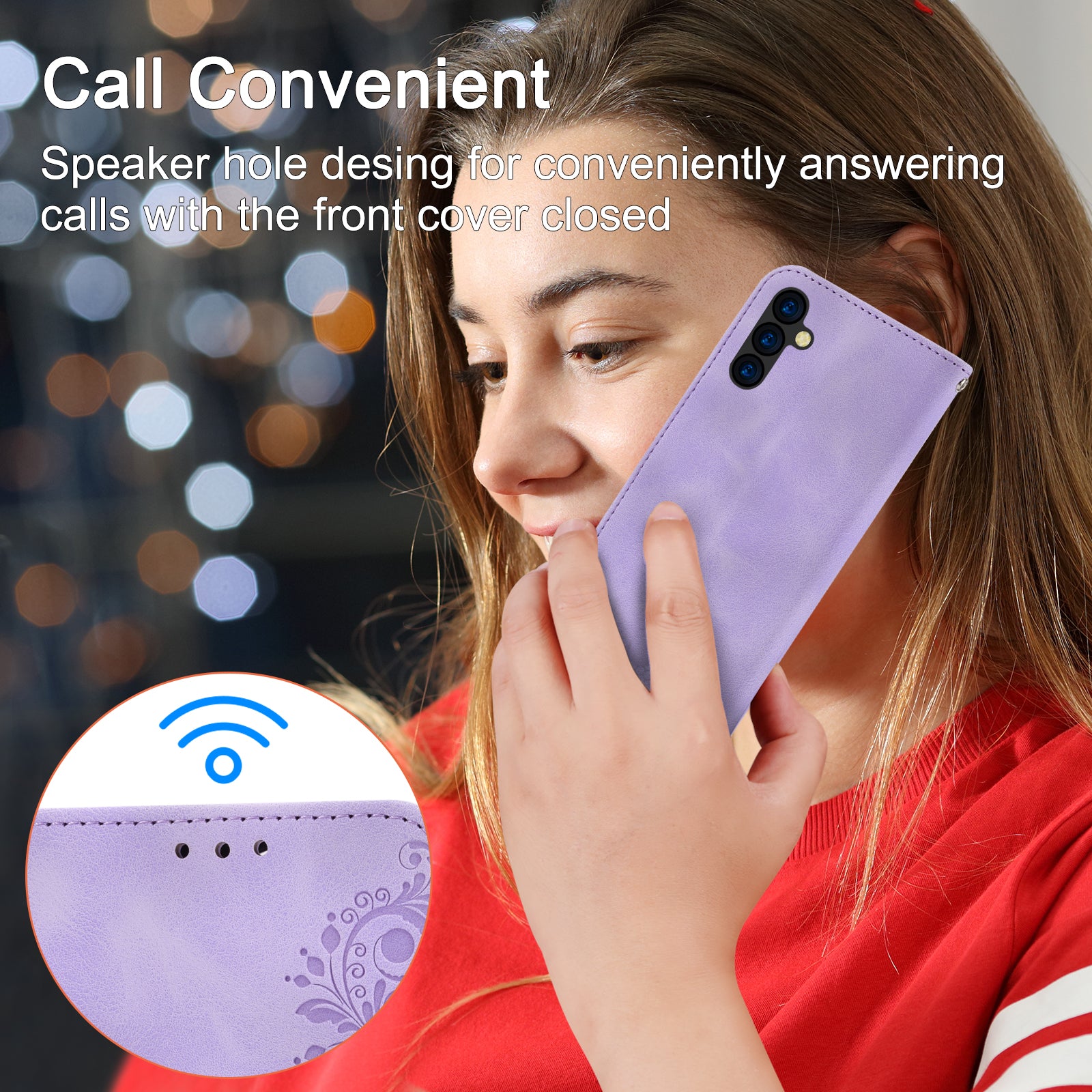 Flower Imprinted Phone Shell for Samsung Galaxy A24 4G Anti-Drop Phone Case Skin-Touch Leather Cover with Strap