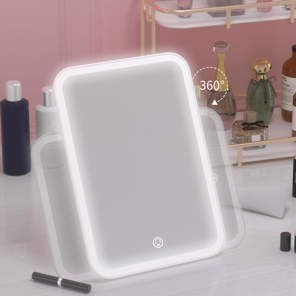 FLYMIRO 360 Degree Rotation LED Makeup Mirror with Light Tabletop Vanity Mirror
