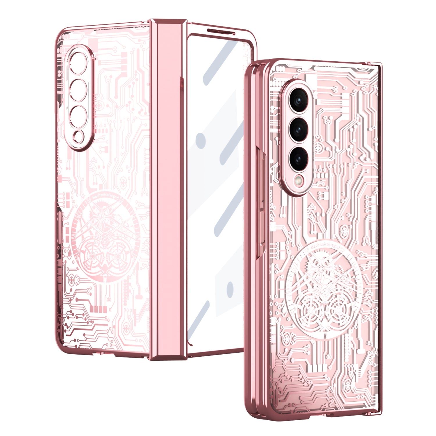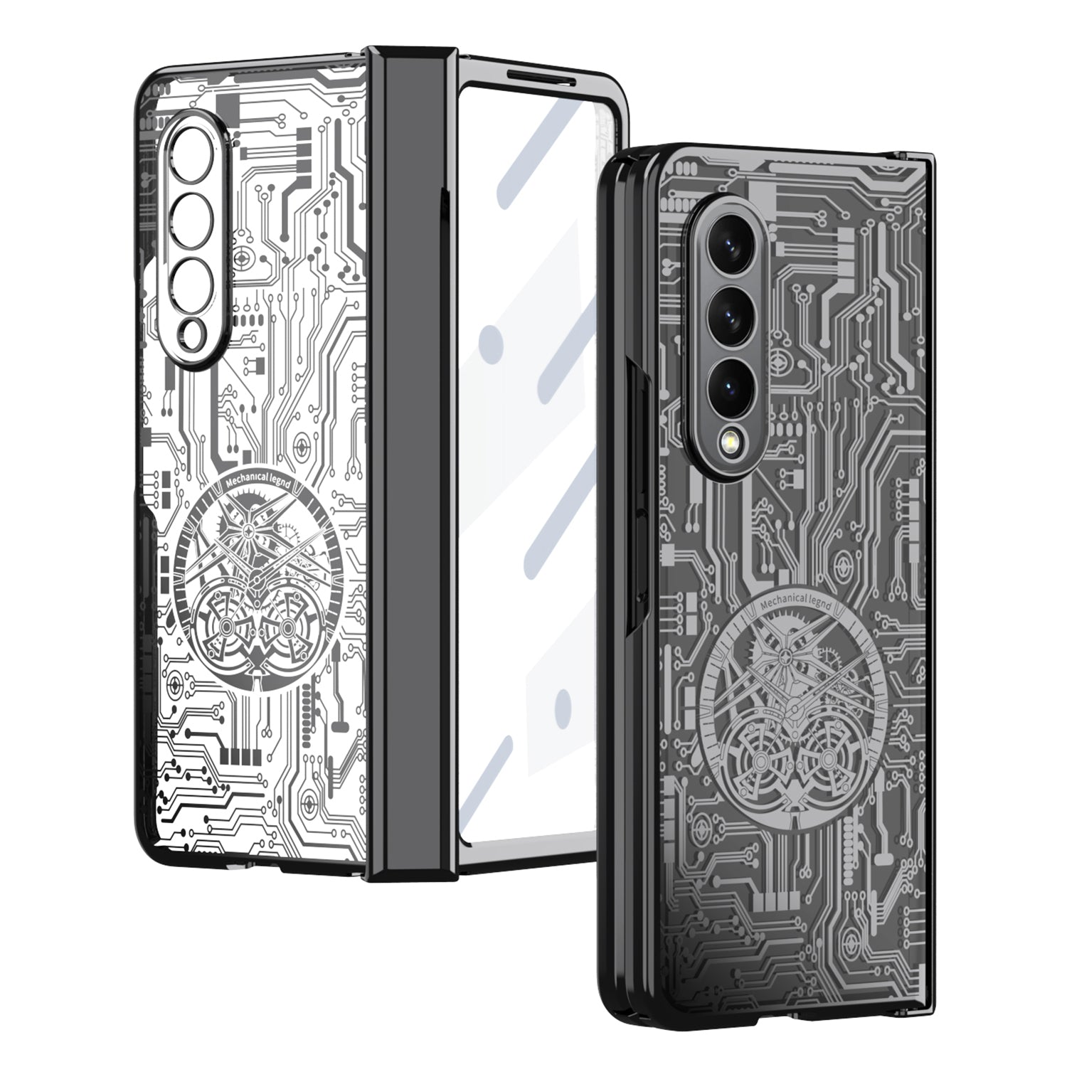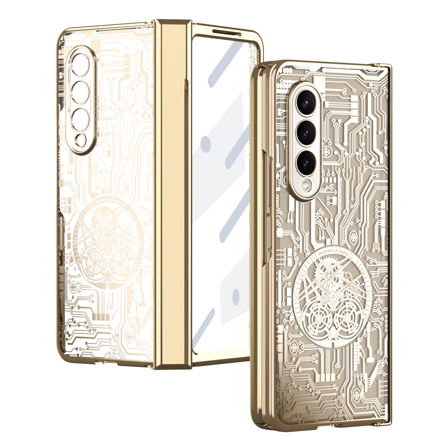 Folding Phone Case for Samsung Galaxy Z Fold3 5G Mechanical Legend Series Electroplating PC Shell with Tempered Glass Film
