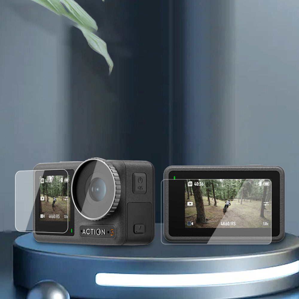For DJI Osmo Action 3 Battery Storage Box Lens Cover Tempered Glass Screen Protector Set