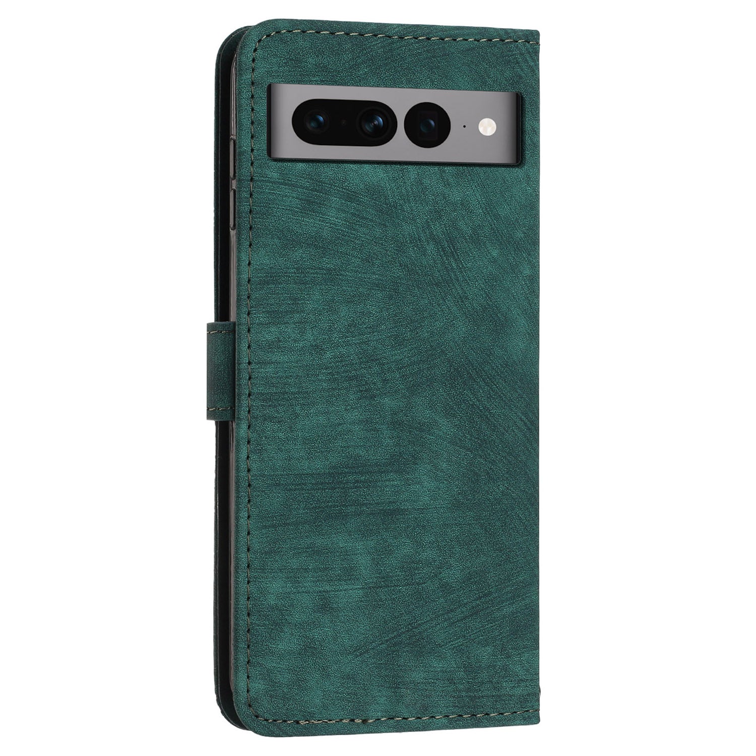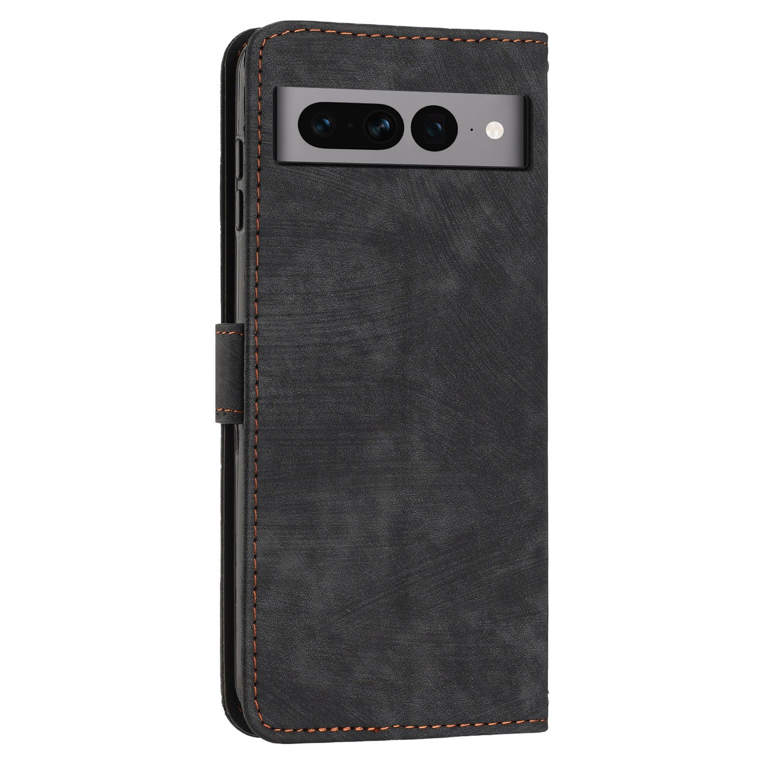 For Google Pixel 7 Pro 5G PU Leather Drop-proof Case Lines Imprint Flip Stand Wallet Phone Cover with 2 Straps
