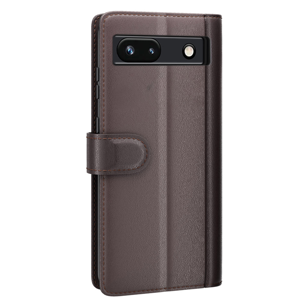For Google Pixel 7a Genuine Cow Leather Shockproof Phone Case Folding Stand Wallet Protective Cover