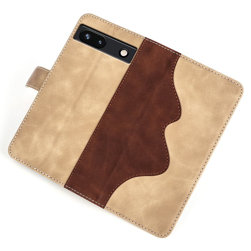 For Google Pixel 7a Leather Wallet Shockproof Phone Cover Dual Color Splicing Flip Stand Case
