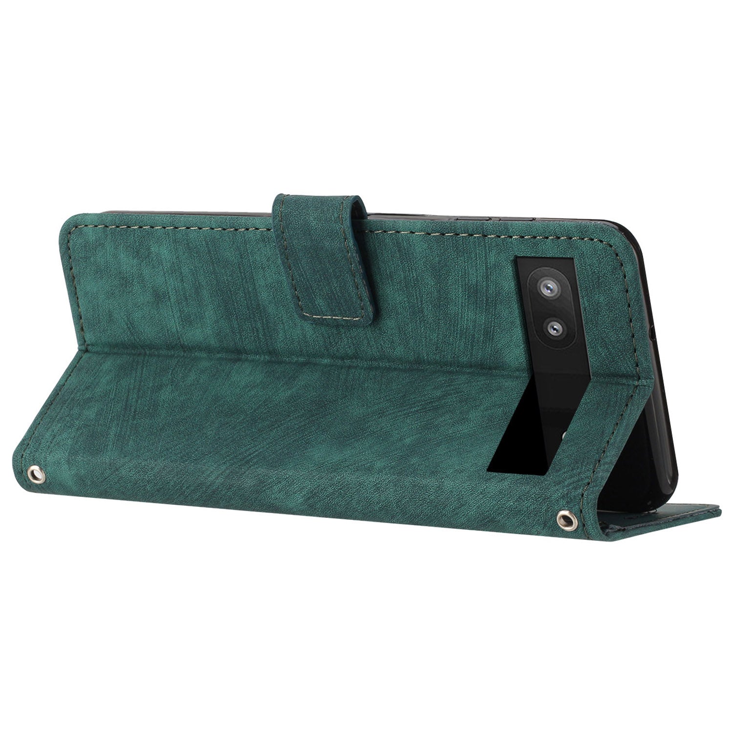 For Google Pixel 7a PU Leather Skin-touch Protective Cover Lines Imprint Wallet Stand Phone Case with 2 Straps