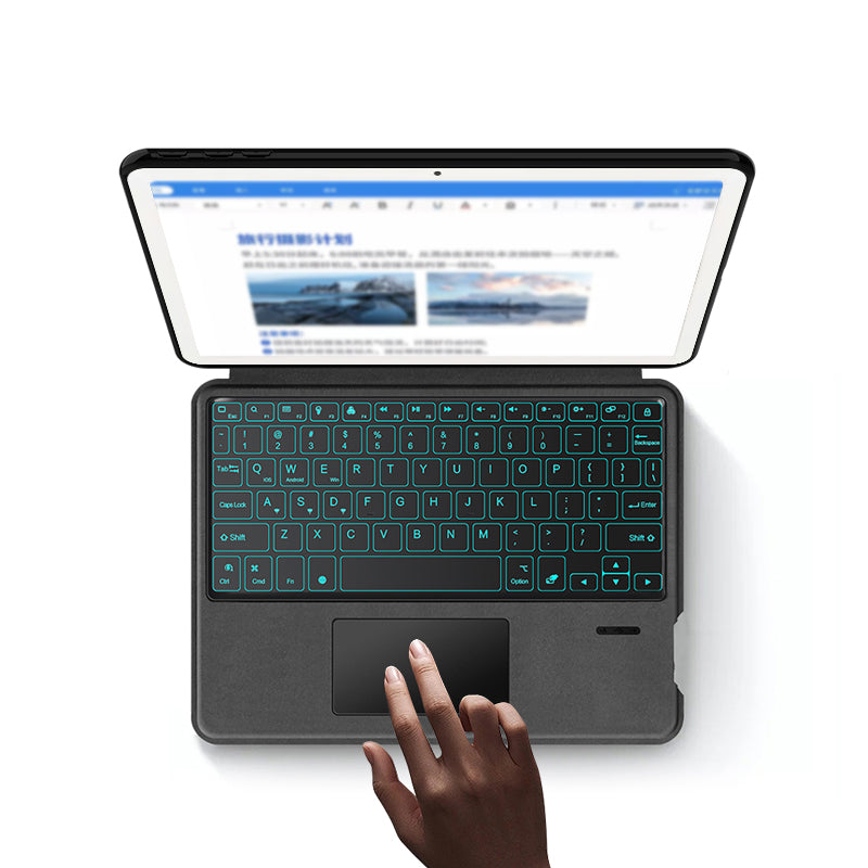 For Google Pixel Tablet PU Leather Stand Case with Backlit Keyboard, Multi-Touch Trackpad