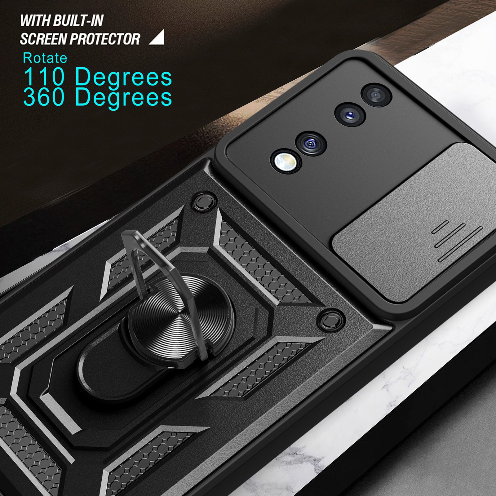 For Honor 70 5G Phone Kickstand Case Slide Camera Lens Protection PC+TPU Cover