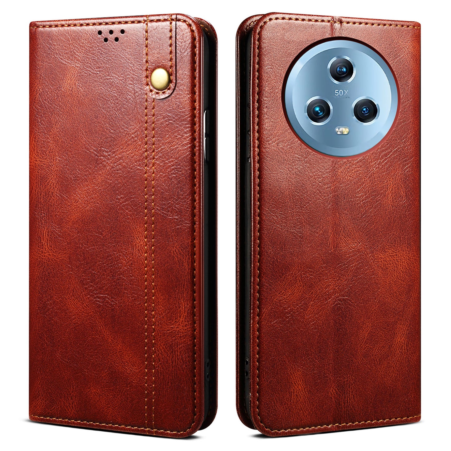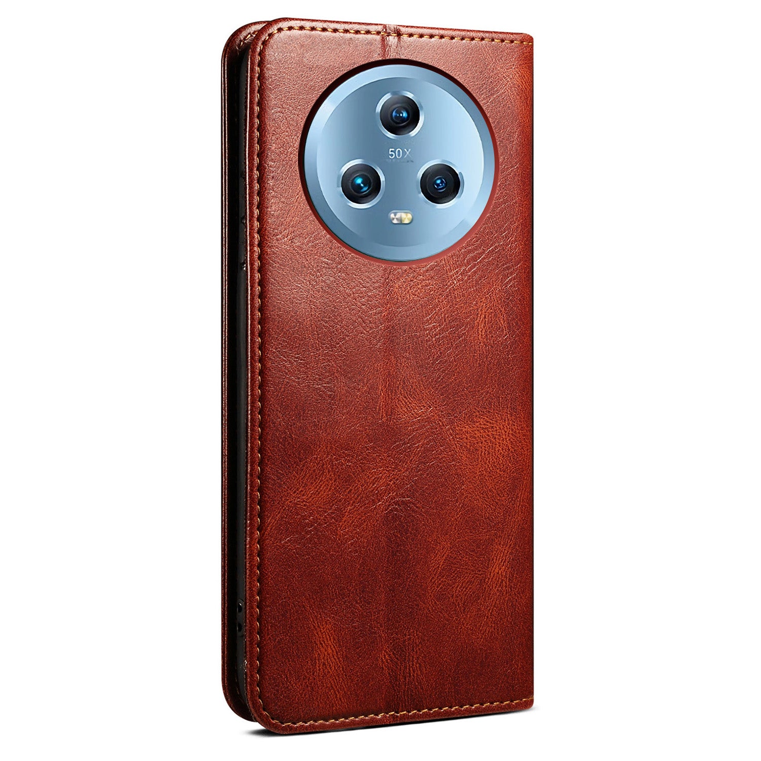 For Honor Magic5 Stand Wallet Leather Cell Phone Cover Waxy Crazy Horse Texture Mobile Phone Case