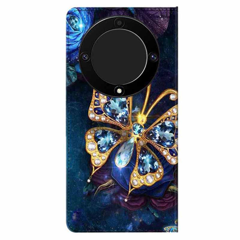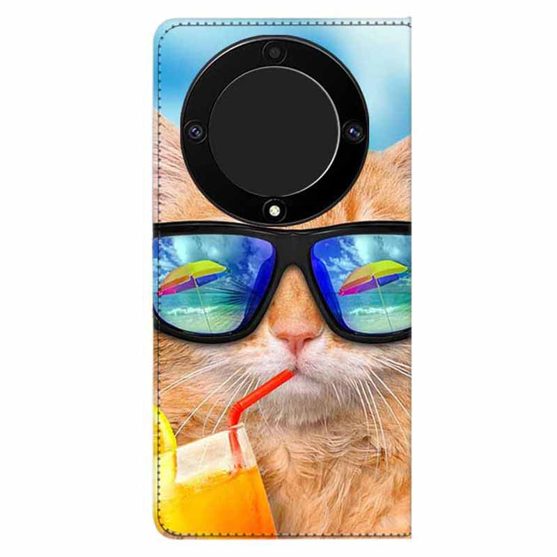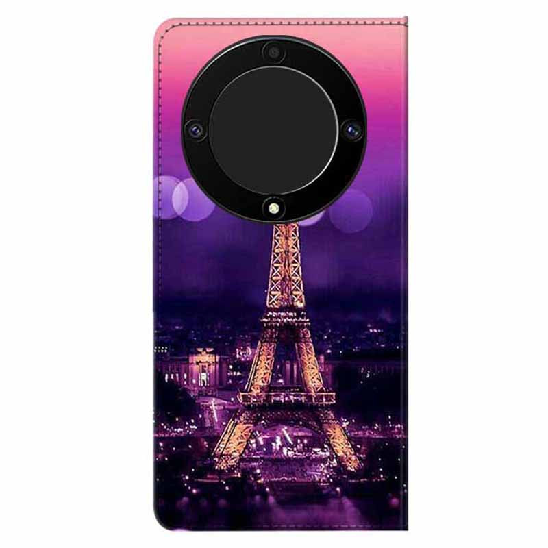 For Honor X9a 5G PU Leather Phone Case Pattern Printing Folding Stand Wallet Cover with Strap