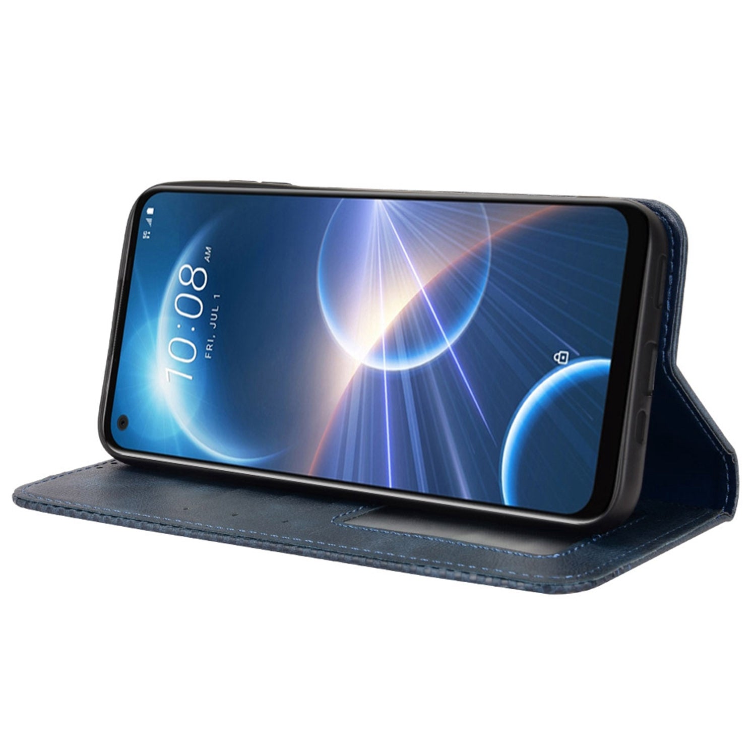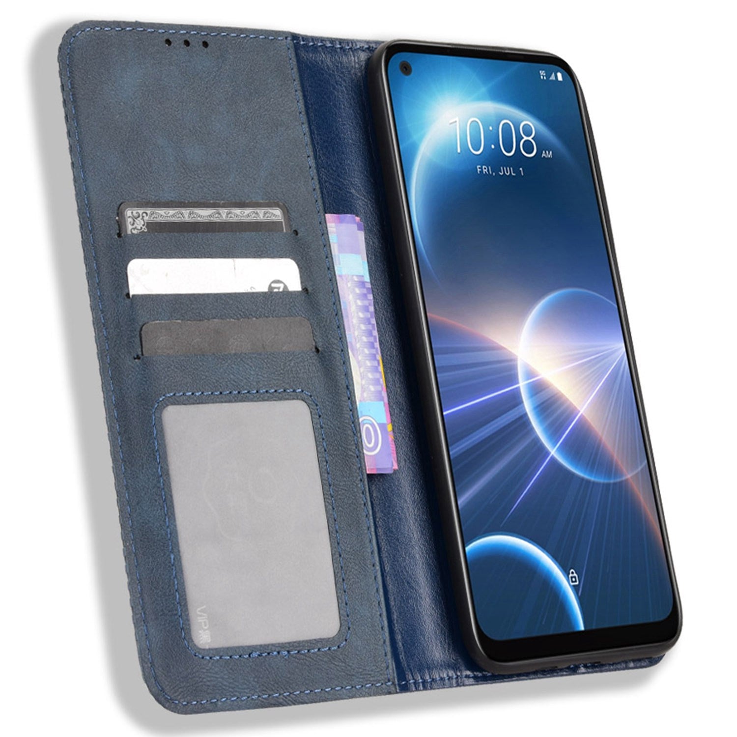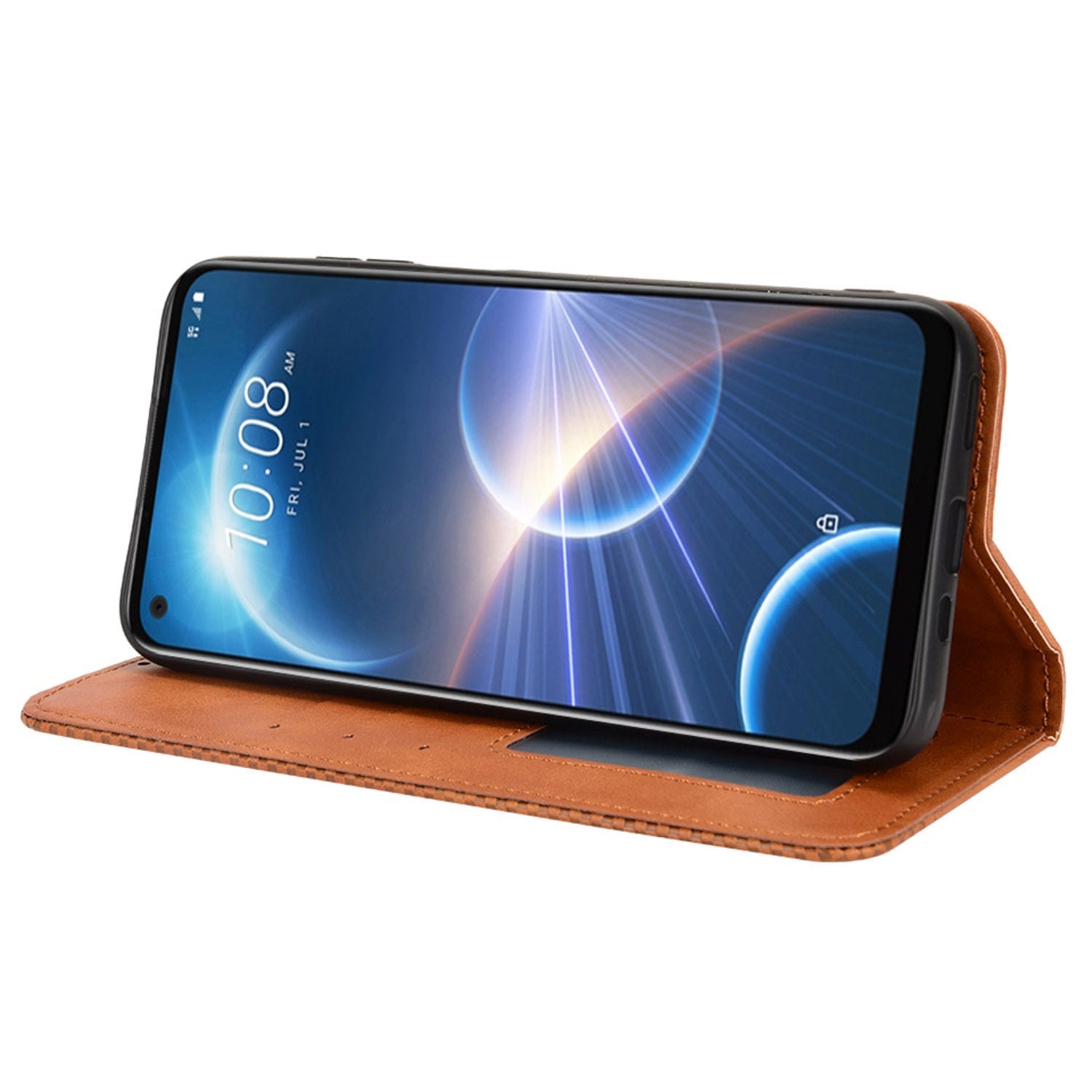 For HTC Desire 22 Pro 5G Auto Closing Magnetic Retro PU Leather Wallet Design Case Stand Function Phone Shell Cover