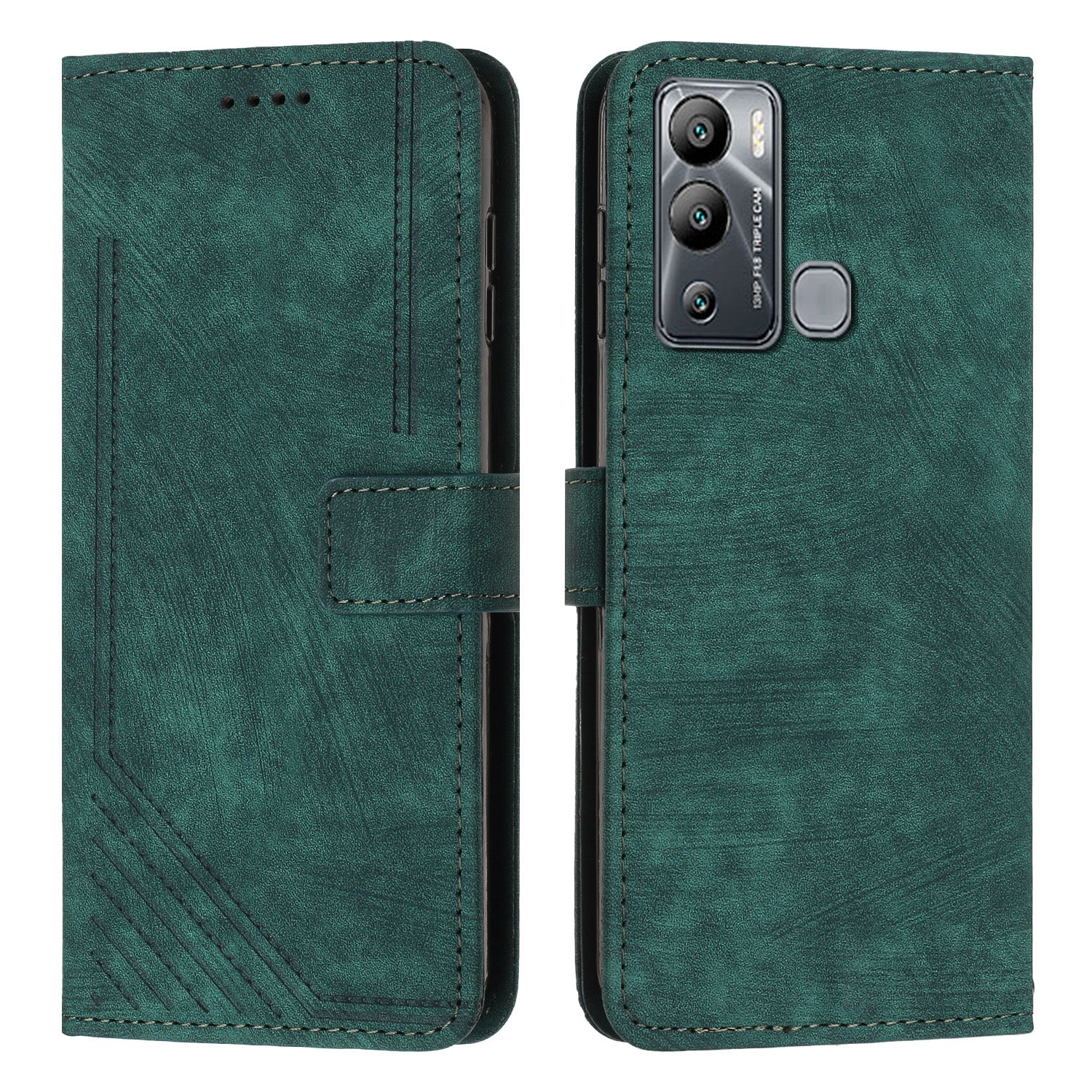 For Infinix Hot 12i 4G Slim-Fit Wallet Phone Stand Case PU Leather Lines Imprinted Skin-Touch Cover with Straps