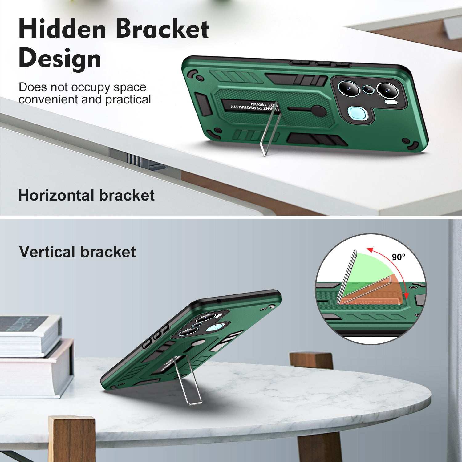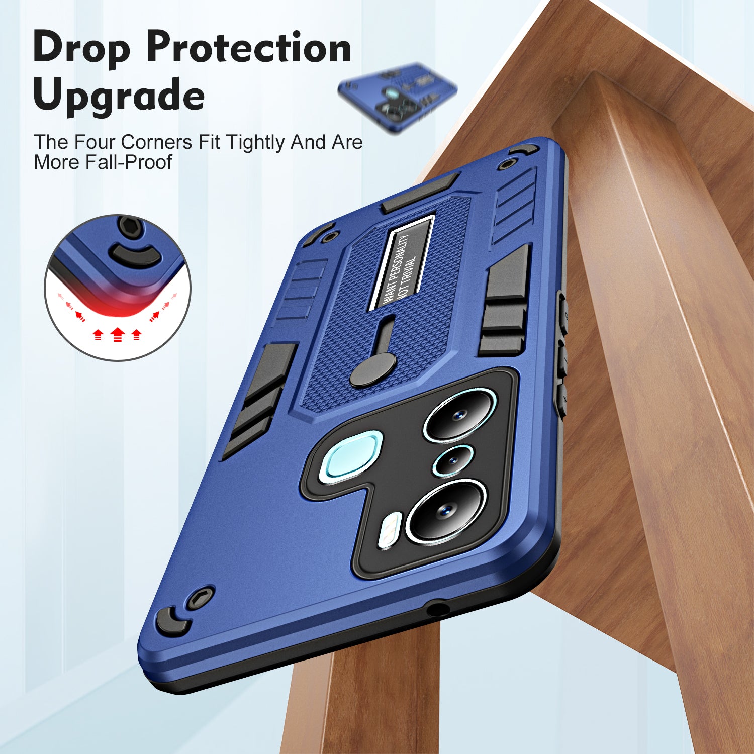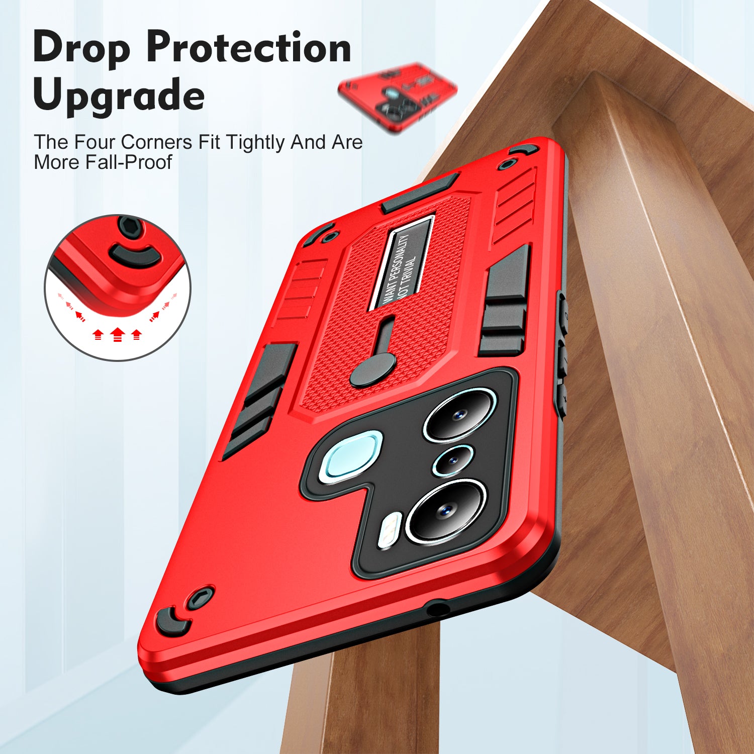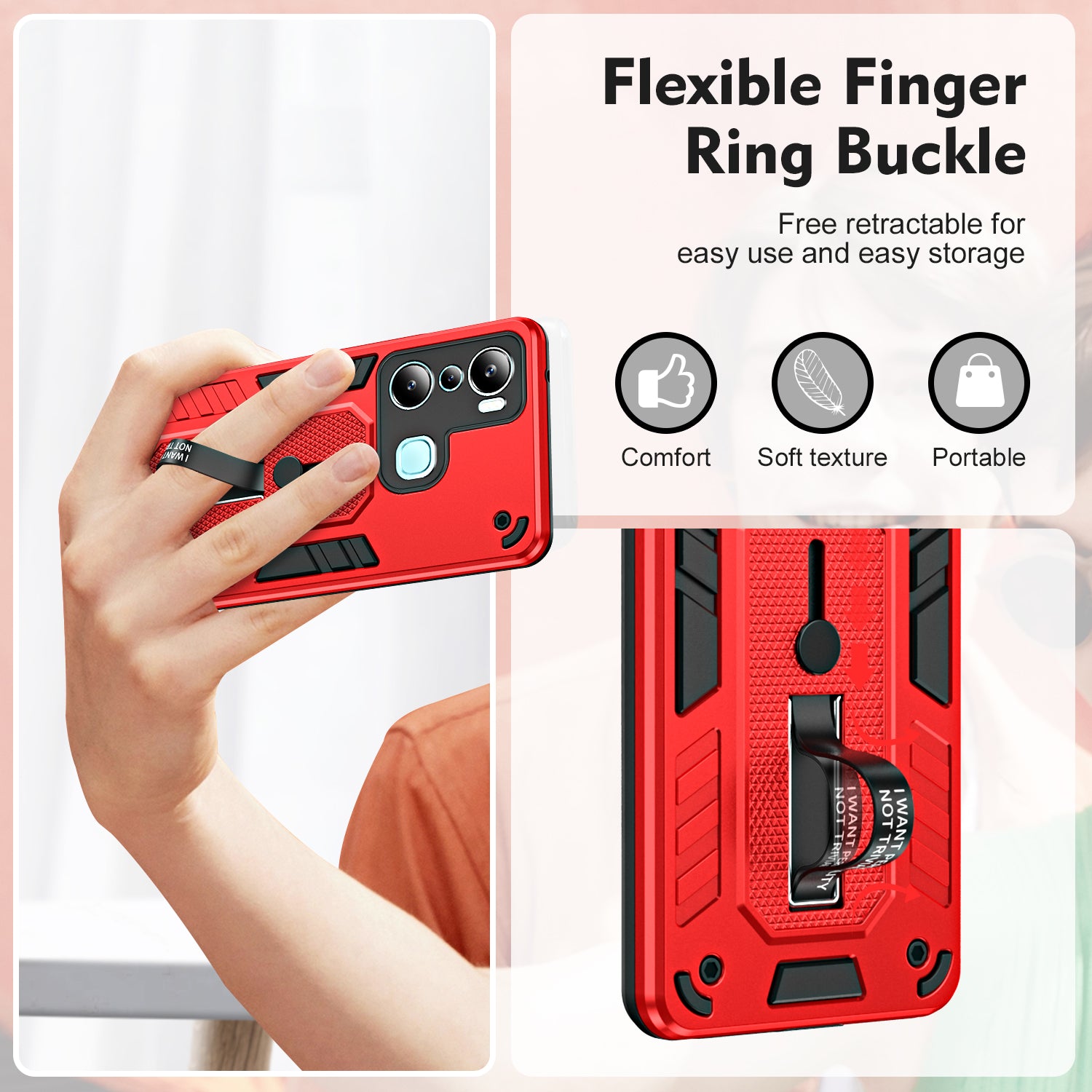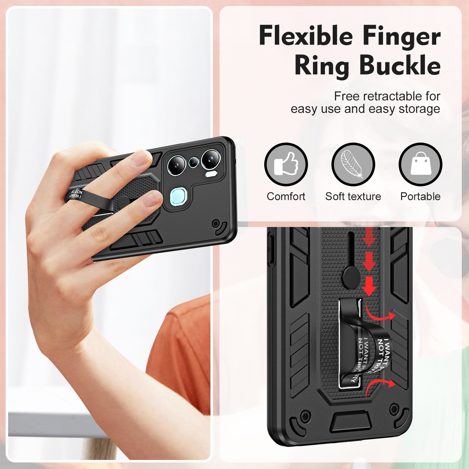 For Infinix Hot 20i 4G Kickstand Phone Case TPU+PC Protective Cover with Secure Silicone Ring Strap