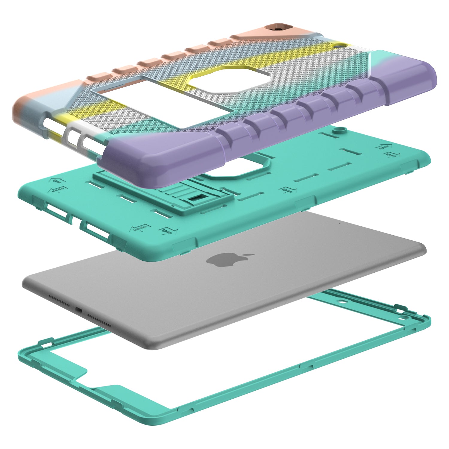 For iPad 10.2 (2021)/(2020)/(2019) Rainbow Design Tablet Cover Anti-fall Protection PC + Silicone Hybrid Case with Kickstand