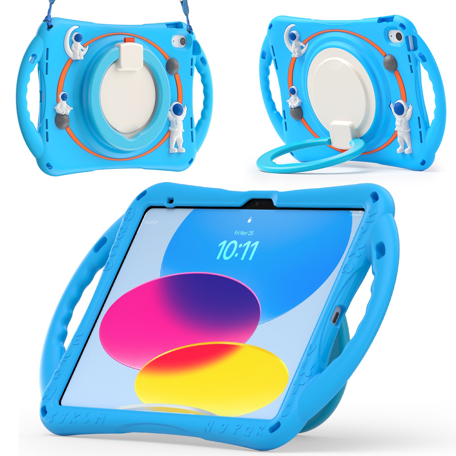 For iPad 10.9 (2022) Astronaut Tablet Case Rotating Kickstand Handle PC+Silicone Protective Cover with Pencil Holder