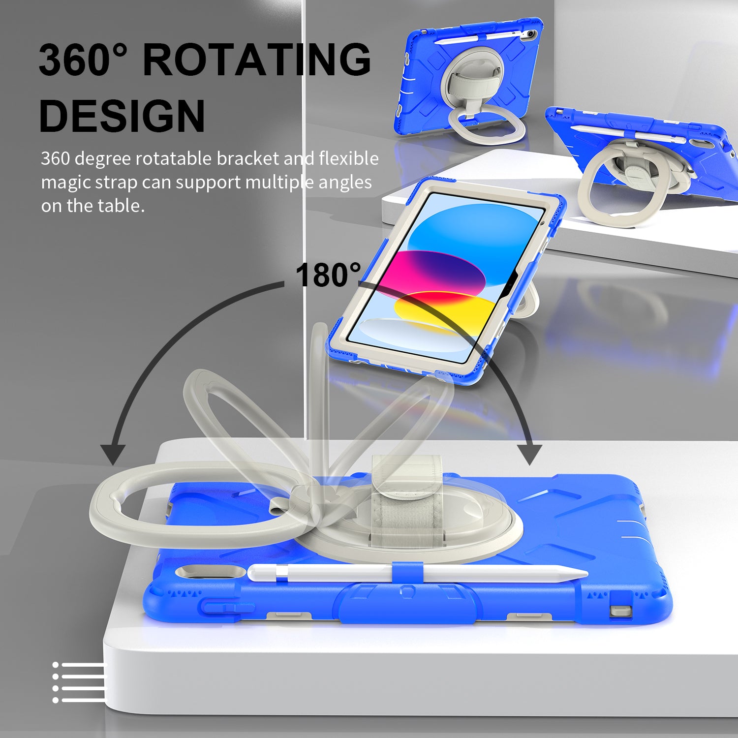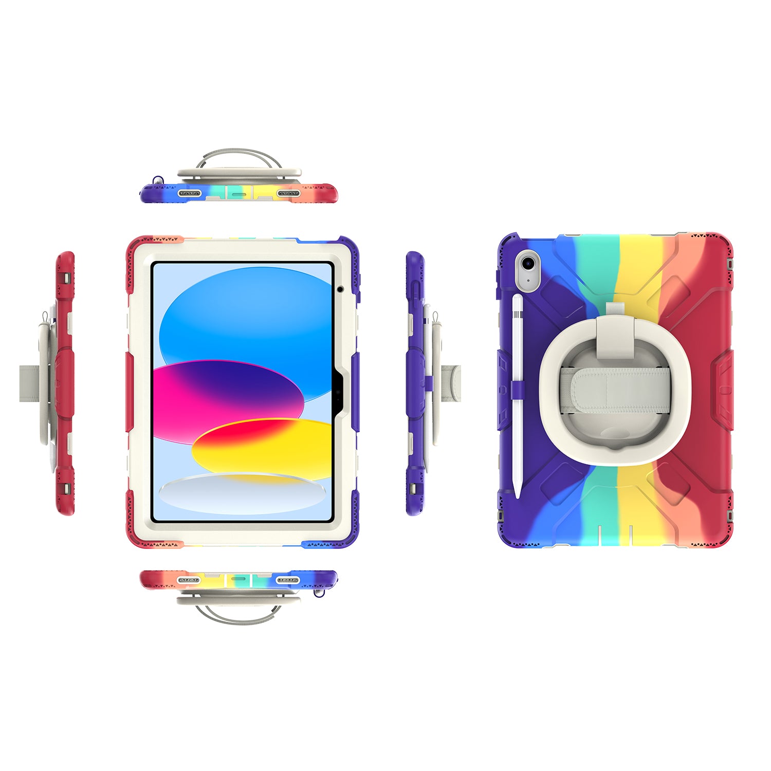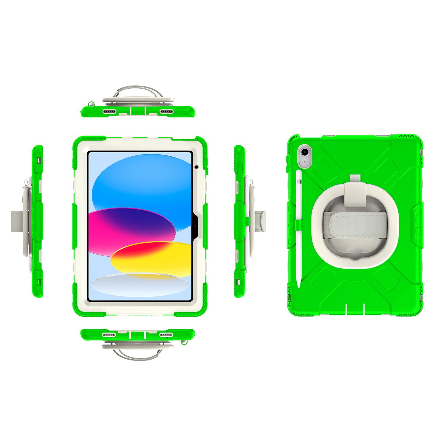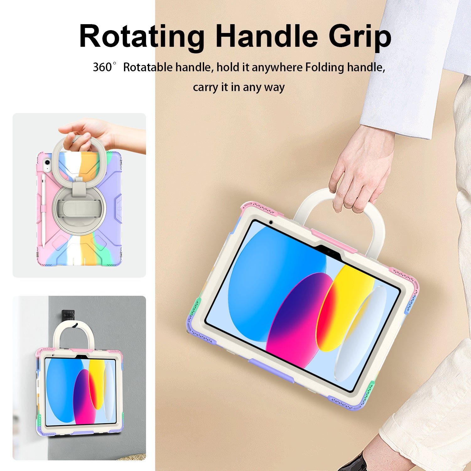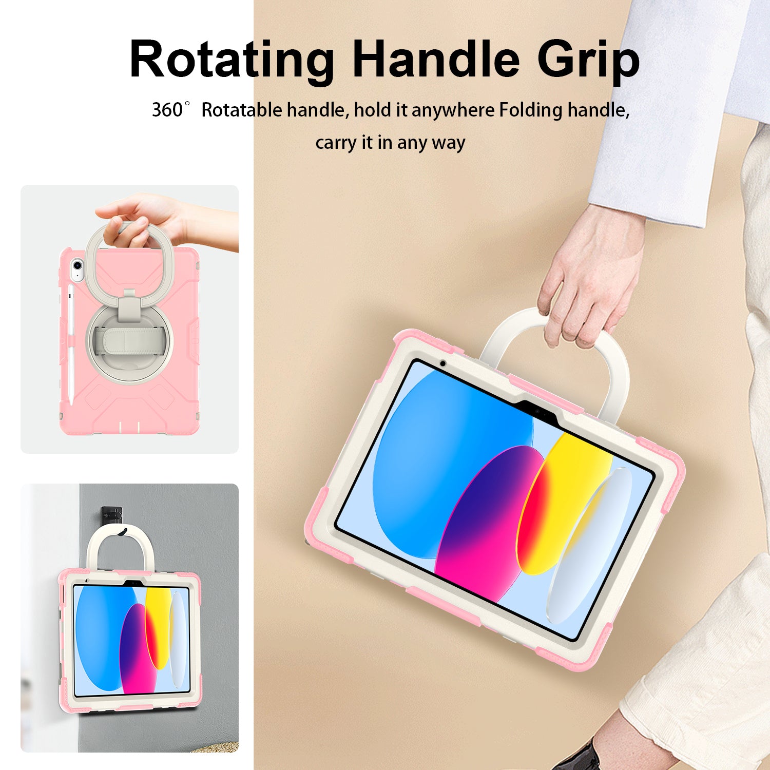 For iPad 10.9 (2022) Hand Strap Kickstand Tablet Case PC+Silicone Dual Layer Protective Cover with Shoulder Strap