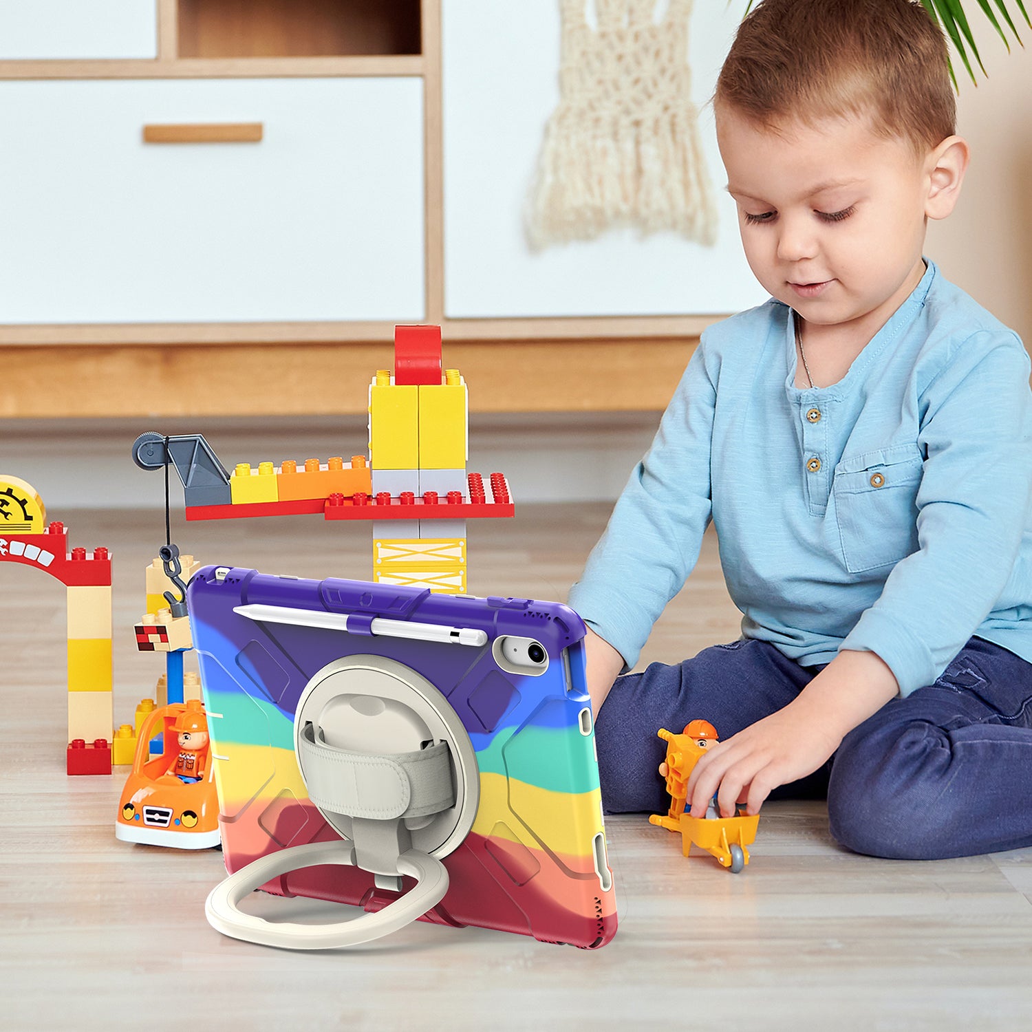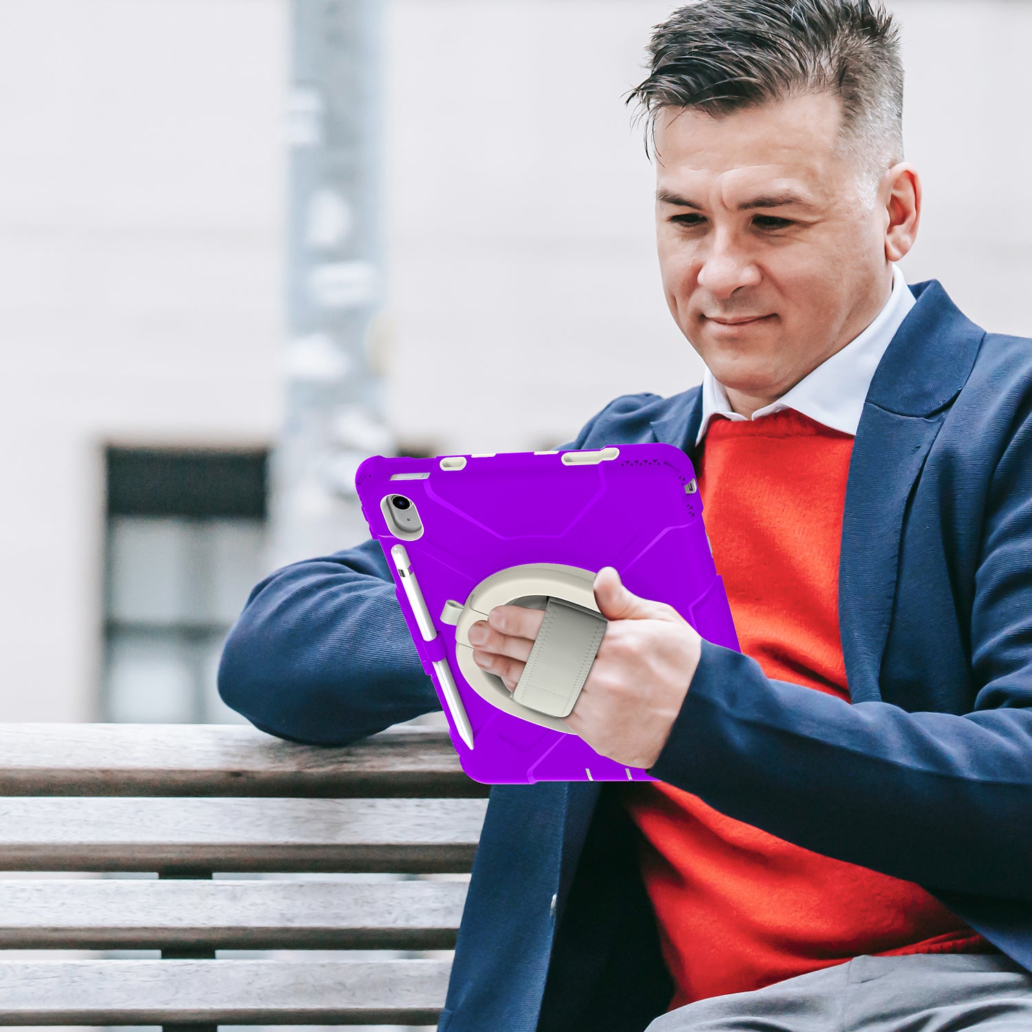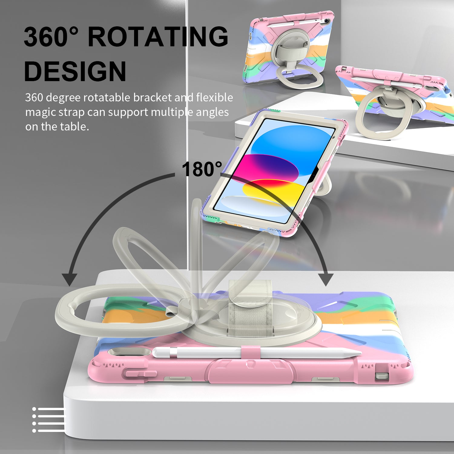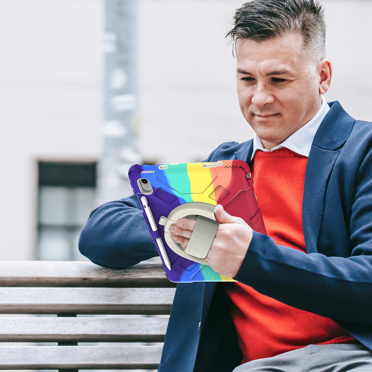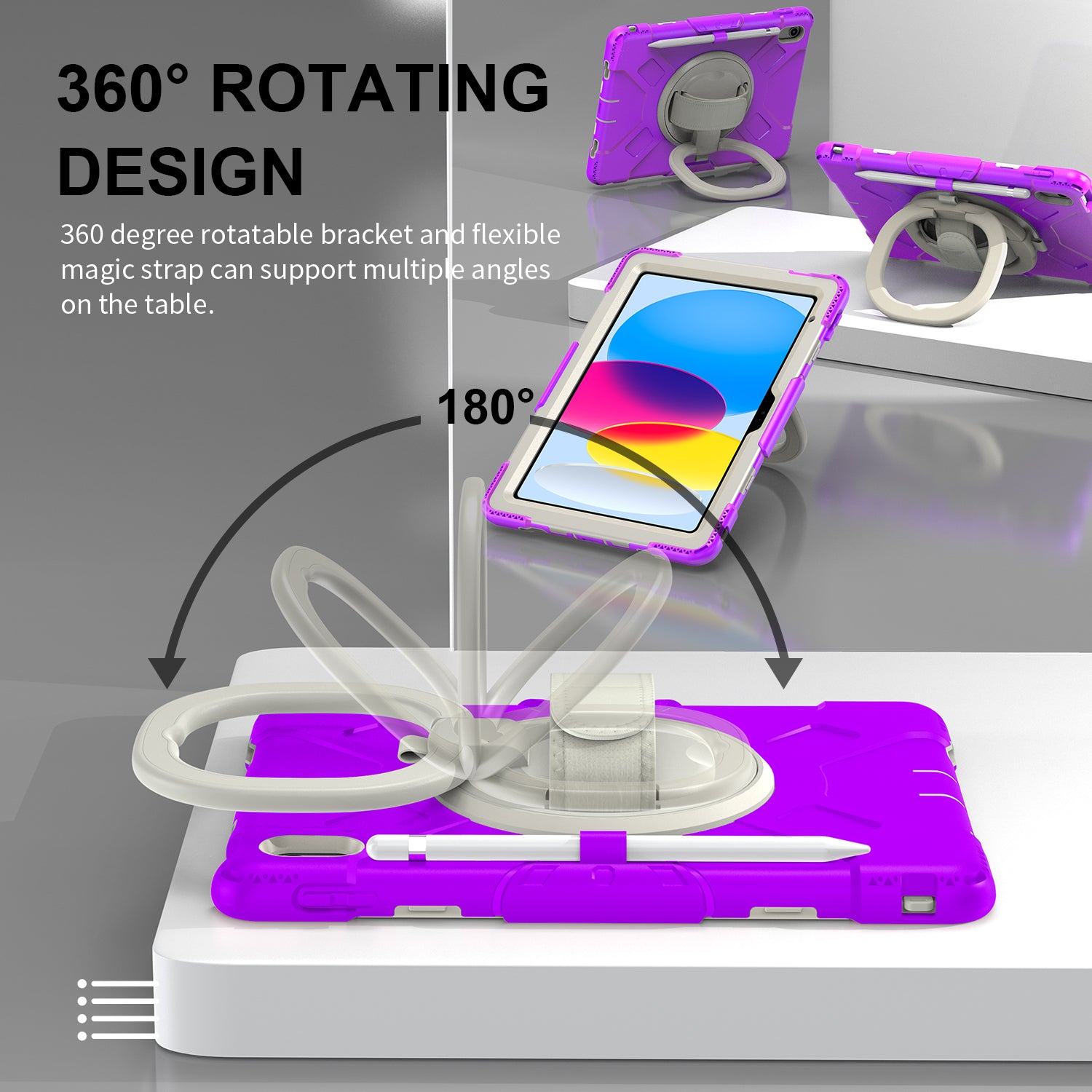 For iPad 10.9 (2022) Hand Strap Kickstand Tablet Case PC+Silicone Dual Layer Protective Cover with Shoulder Strap