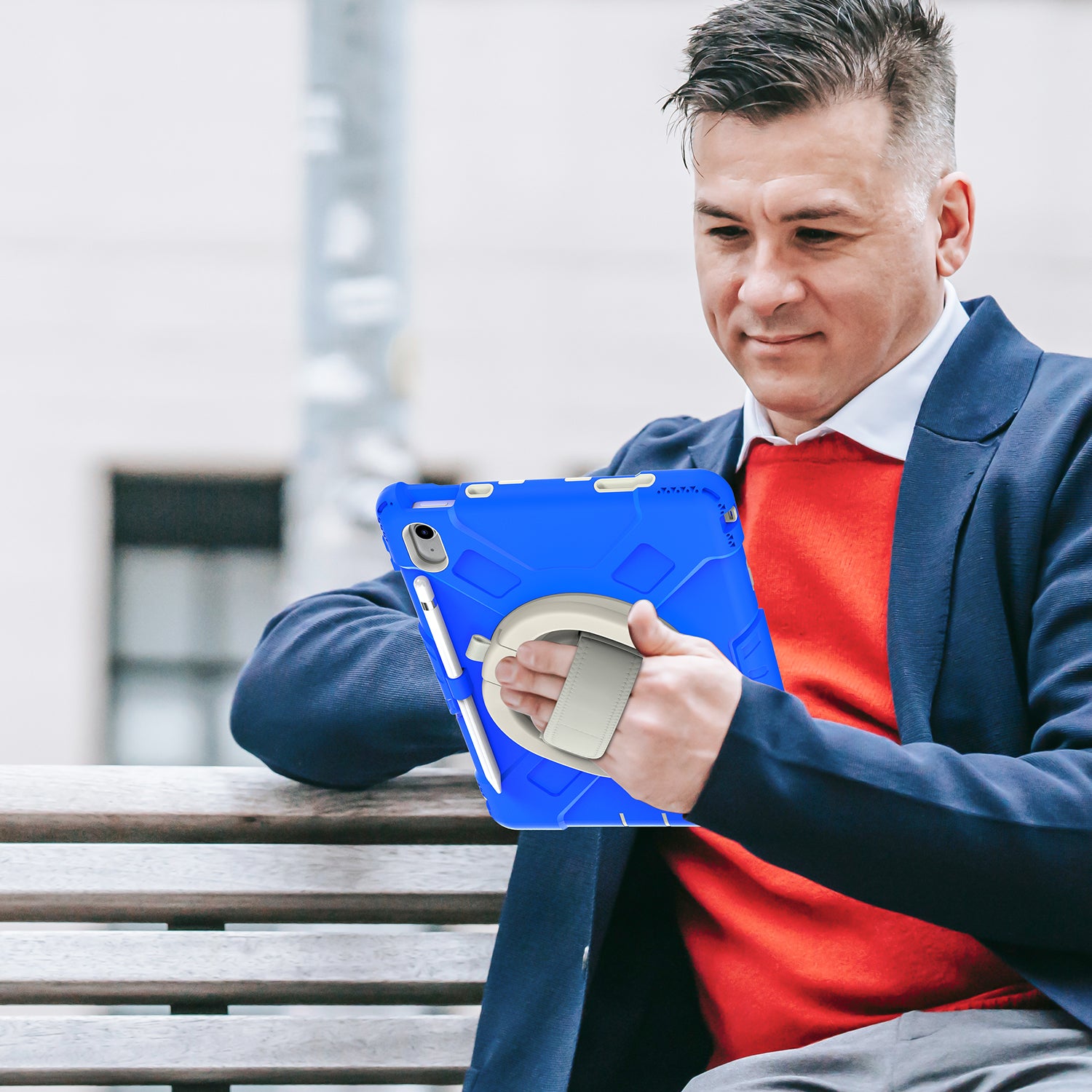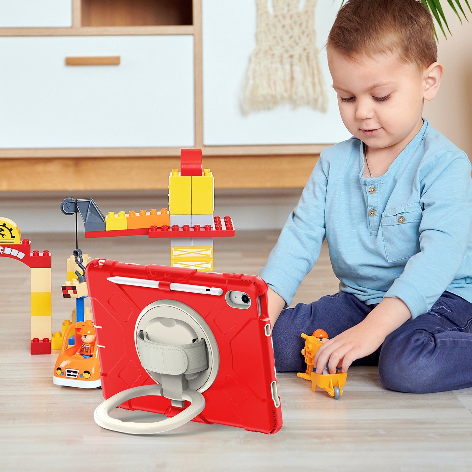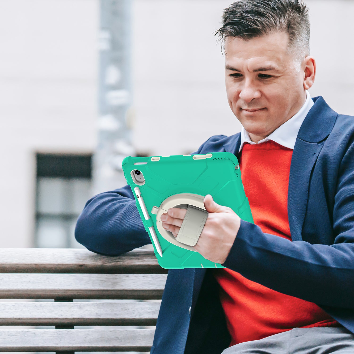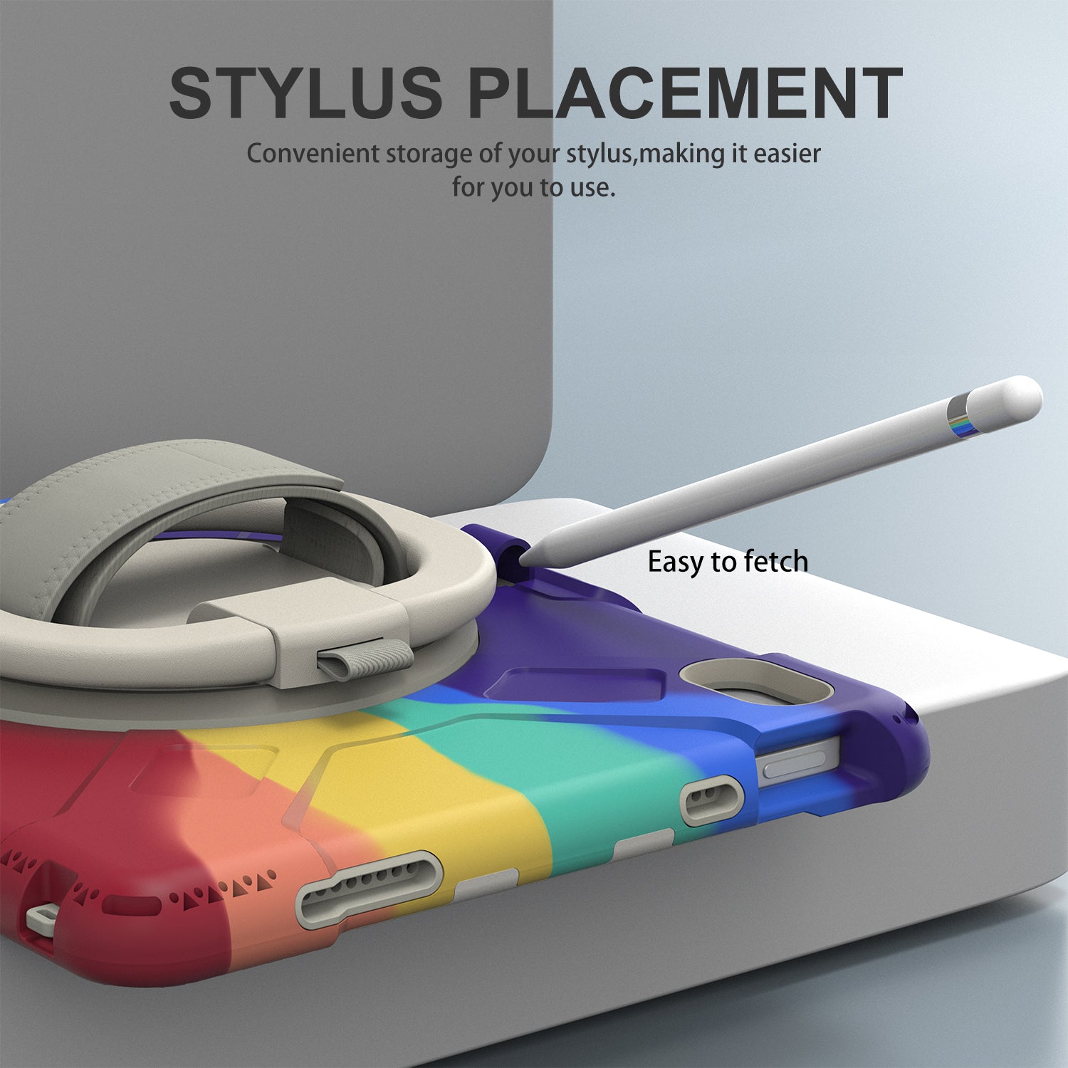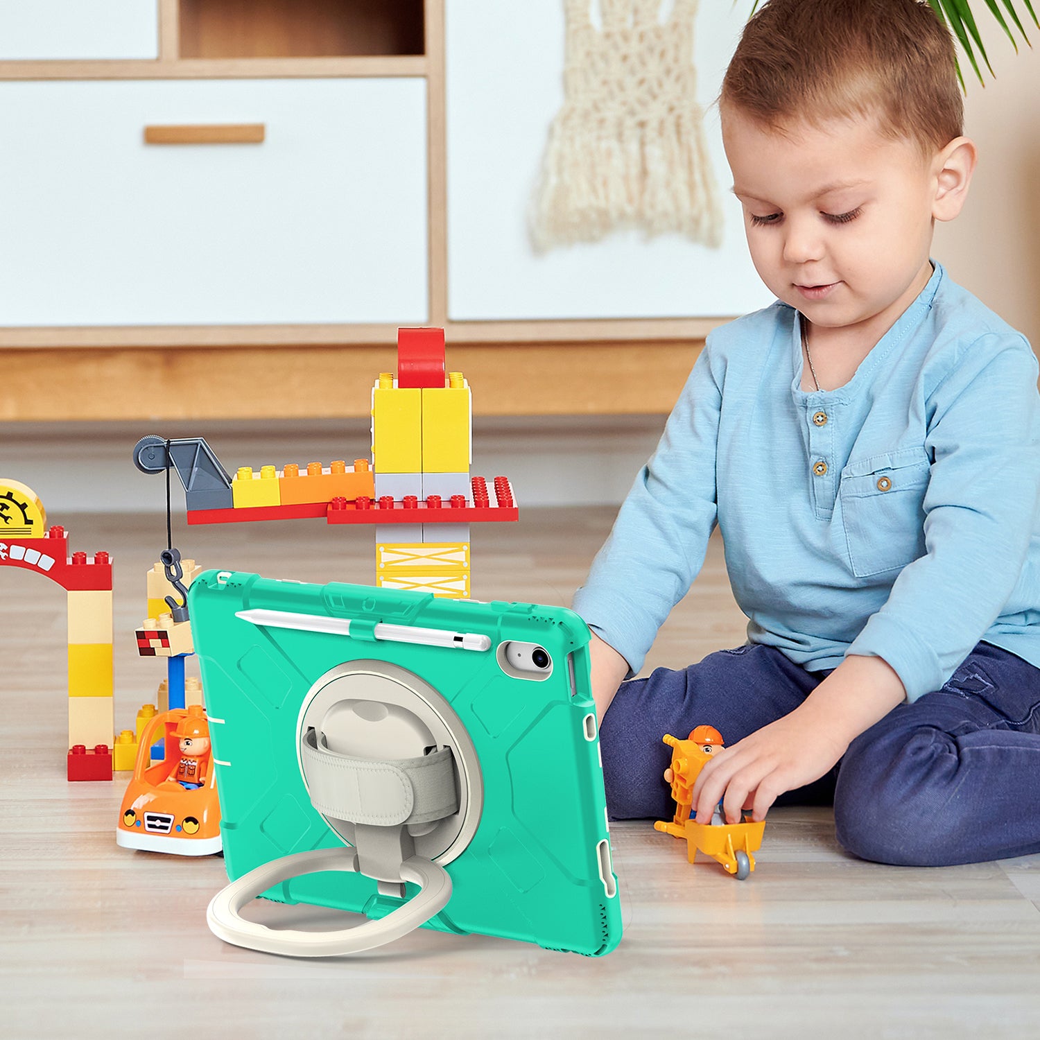 For iPad 10.9 (2022) Hand Strap Kickstand Tablet Case PC+Silicone Dual Layer Protective Cover with Shoulder Strap