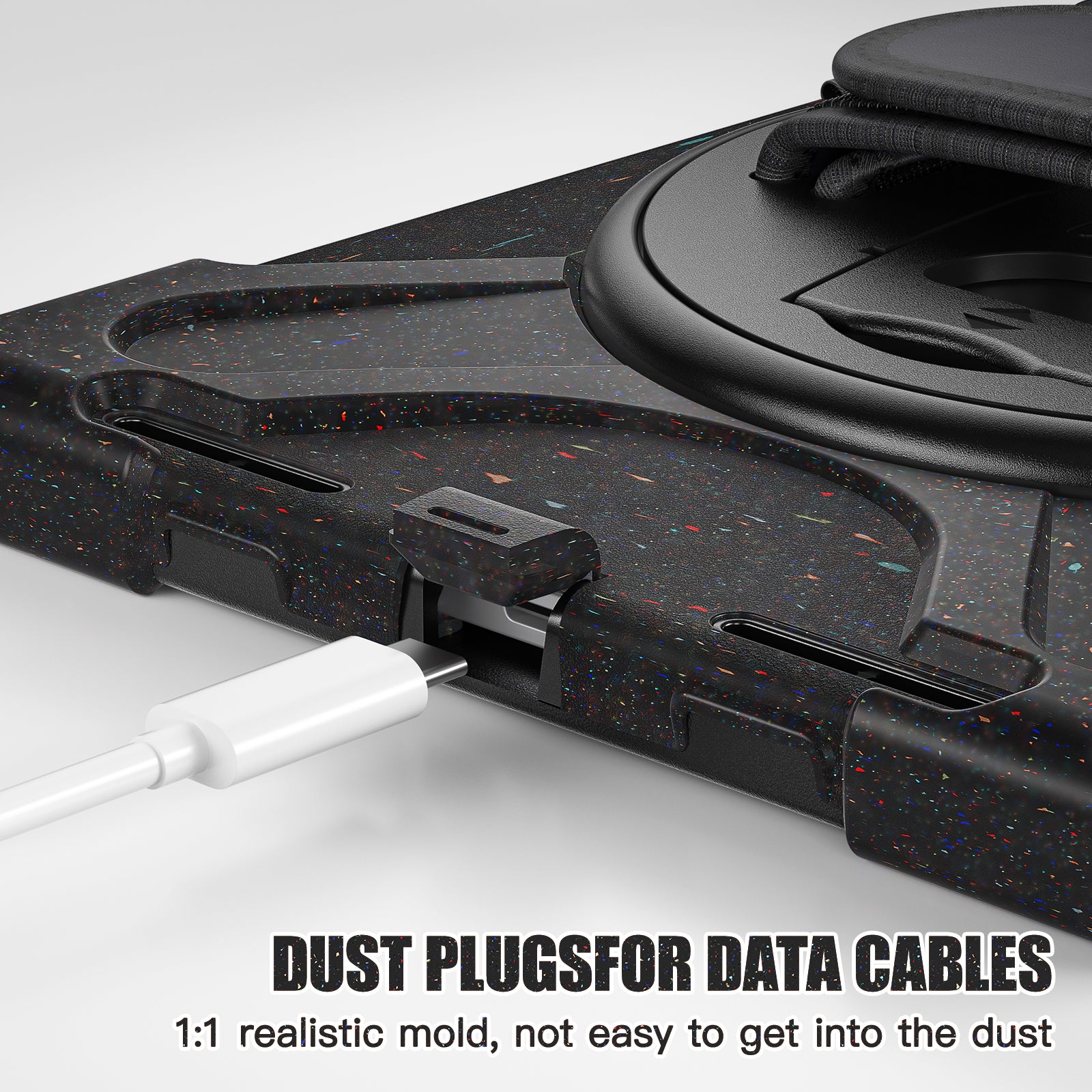 - Integrated 360-degree rotary kickstand with a magic tape hand band frees your hands for landscape or portrait viewing