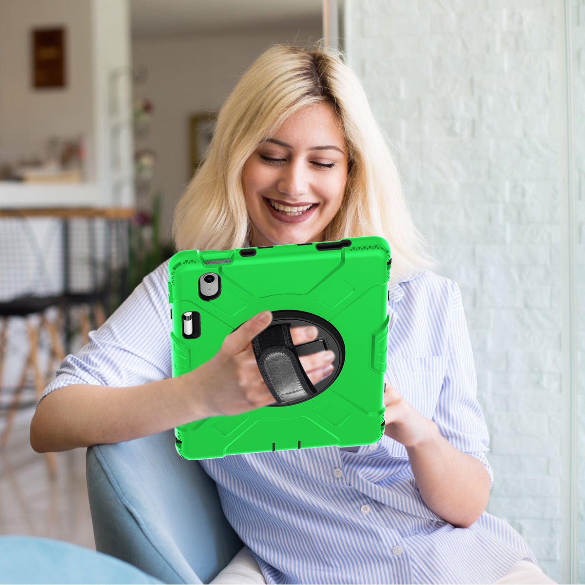- There is a hand band strap on the back of the tablet case, which allows you to hold your device safely with one hand