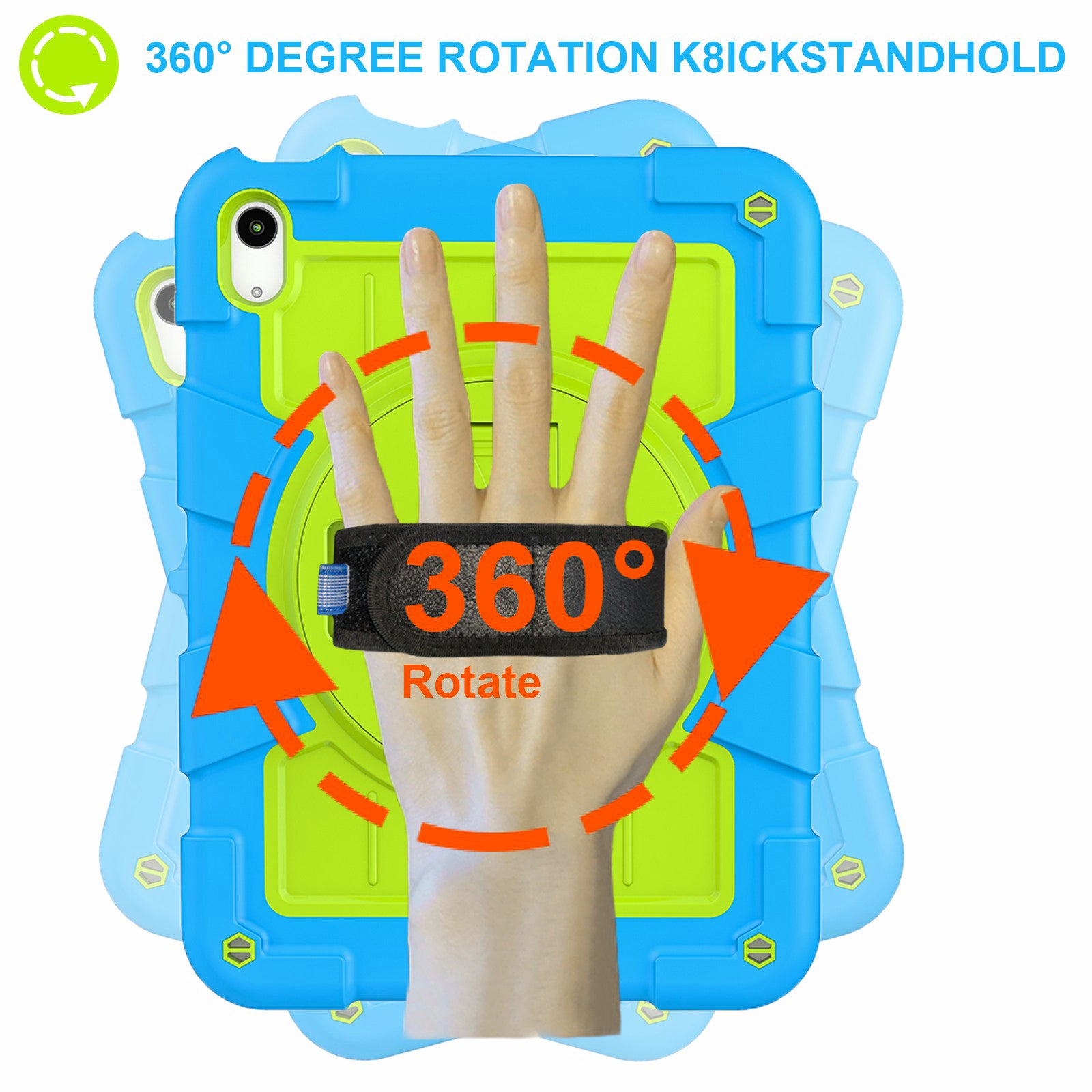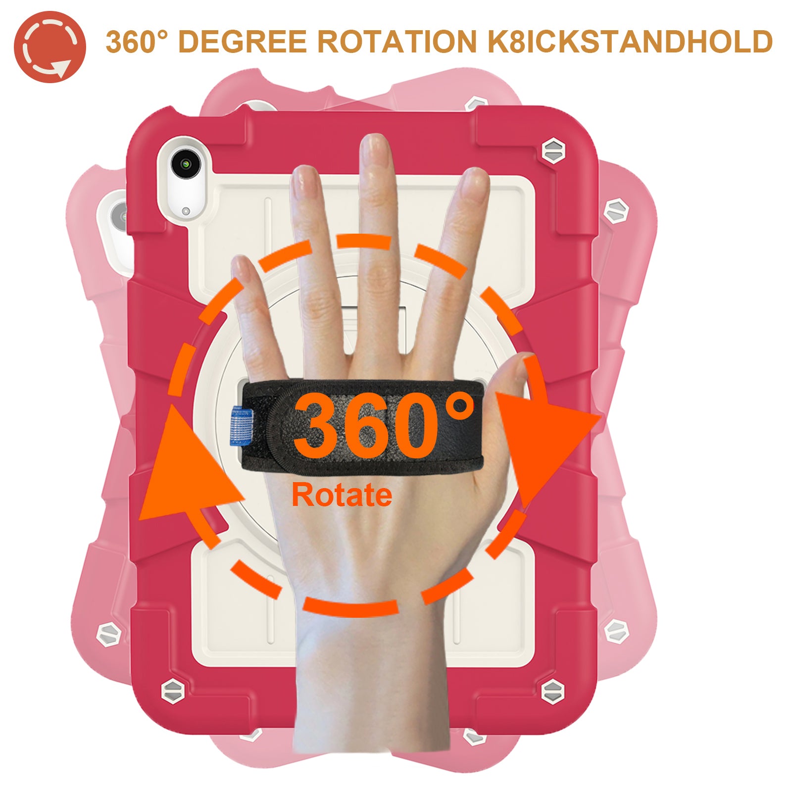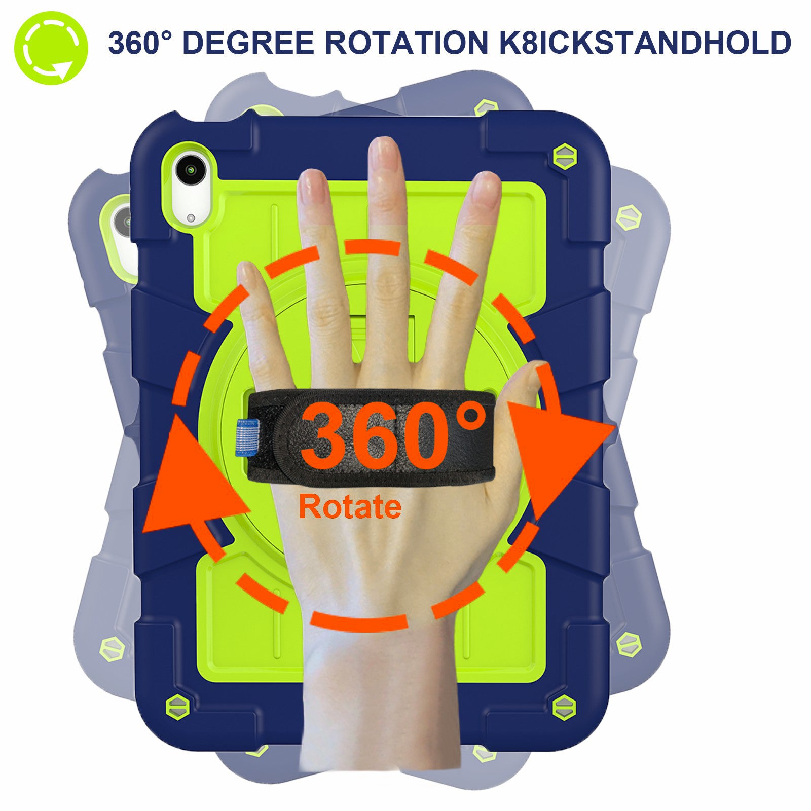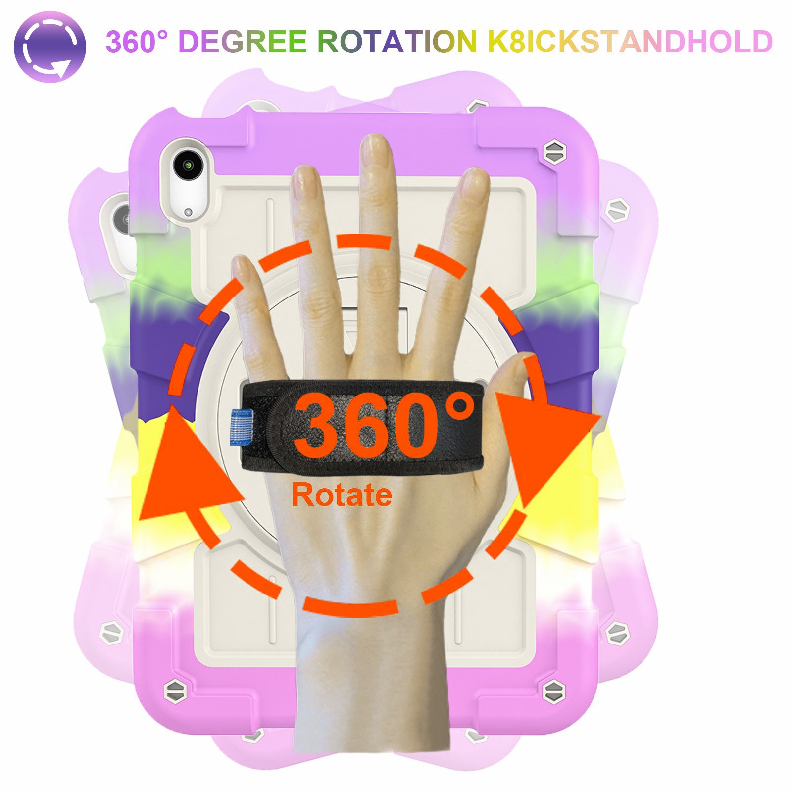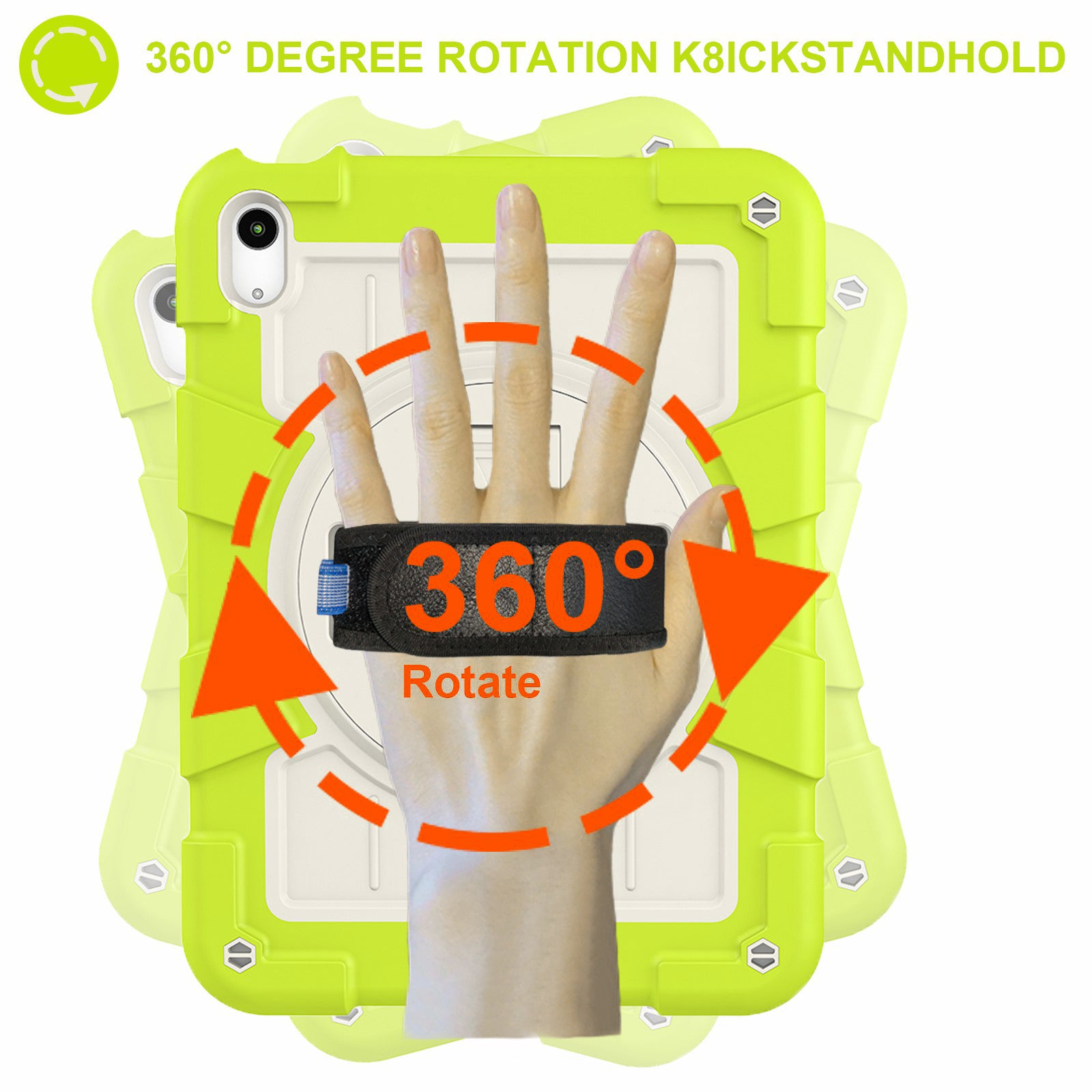 For iPad 10.9 (2022) TPU+PC Tablet Case Rotating Hand Strap Kickstand Cover with Shoulder Strap
