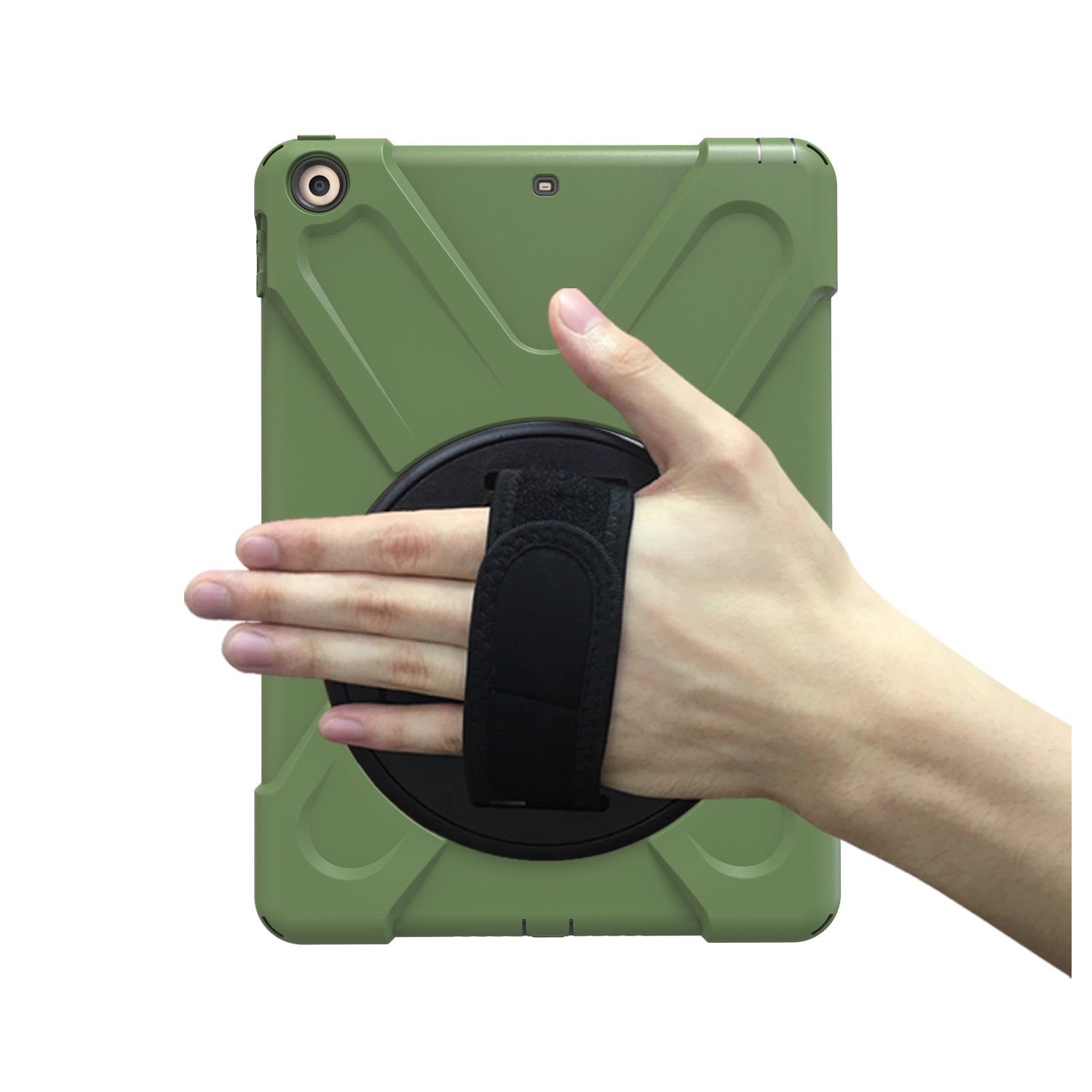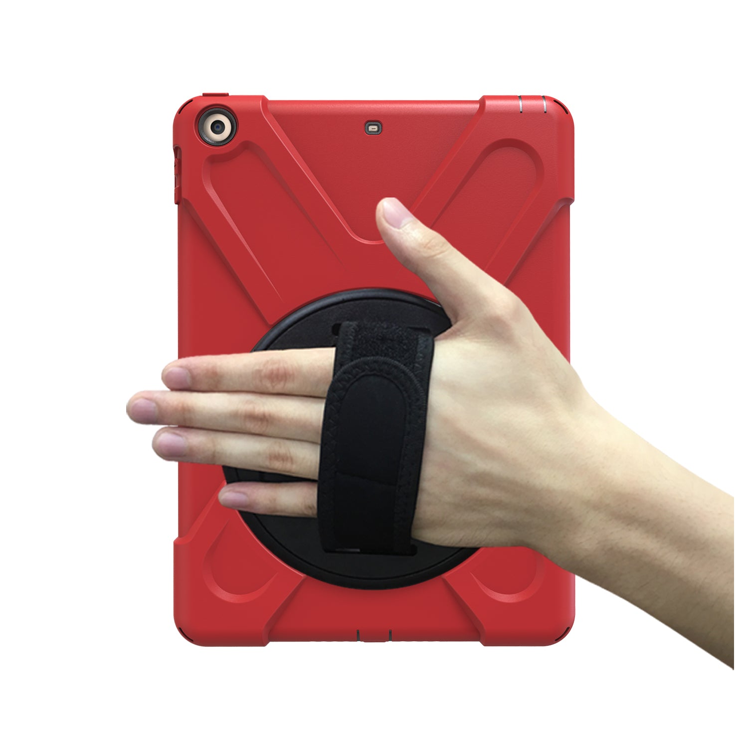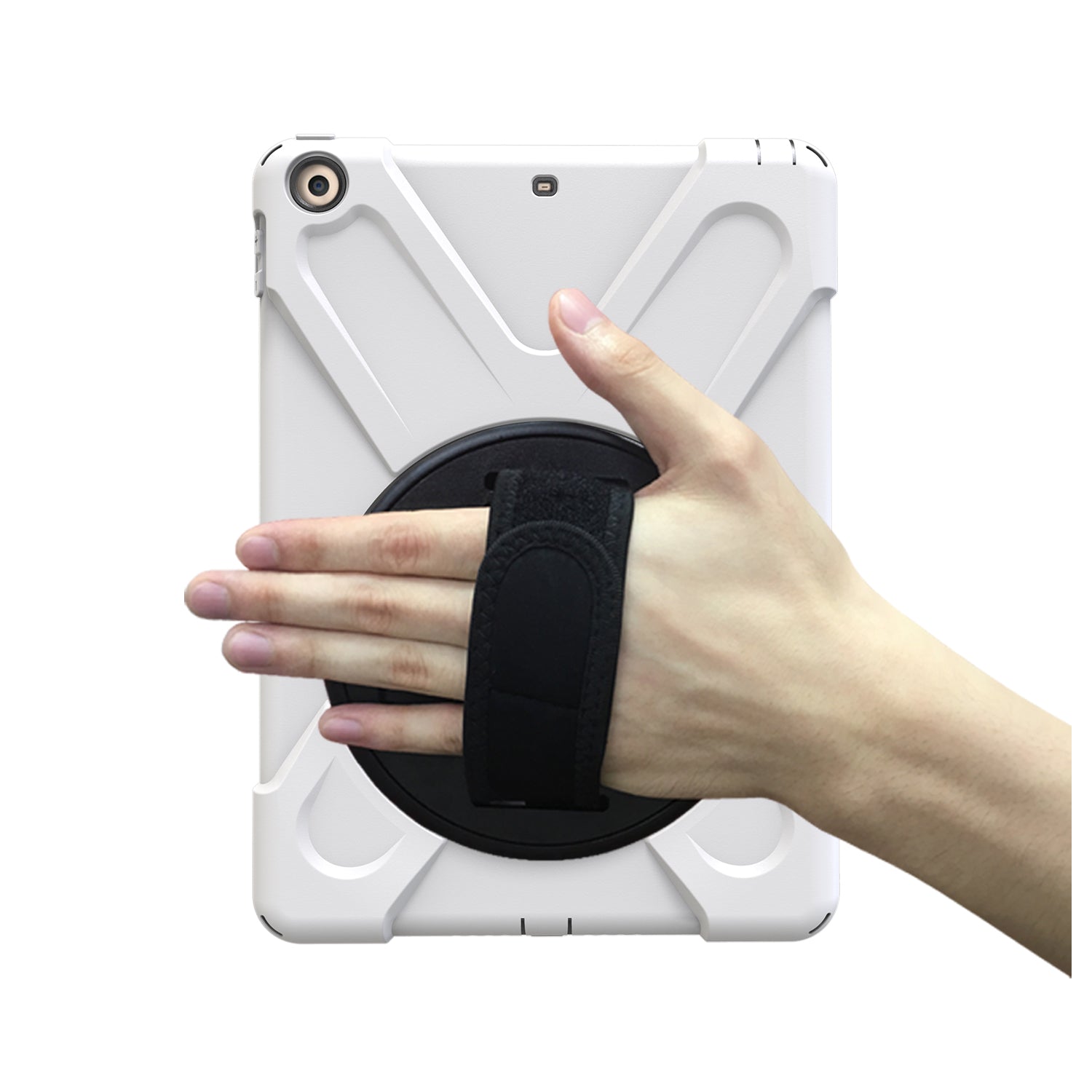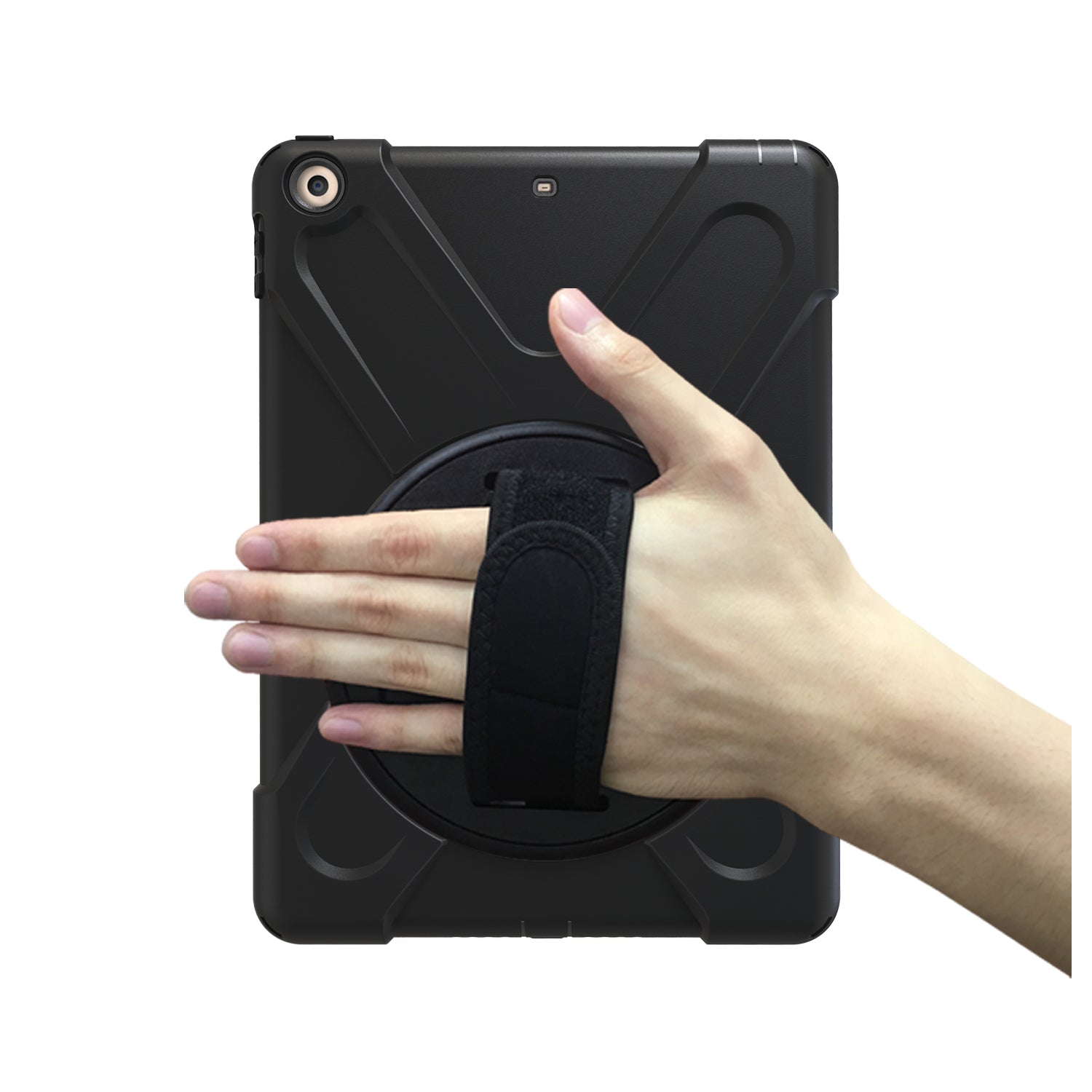 For iPad 9.7 (2018)/9.7 (2017) X-Shape 360 Degree Swivel PC + TPU Combo Kickstand Case with Hand Holder Strap