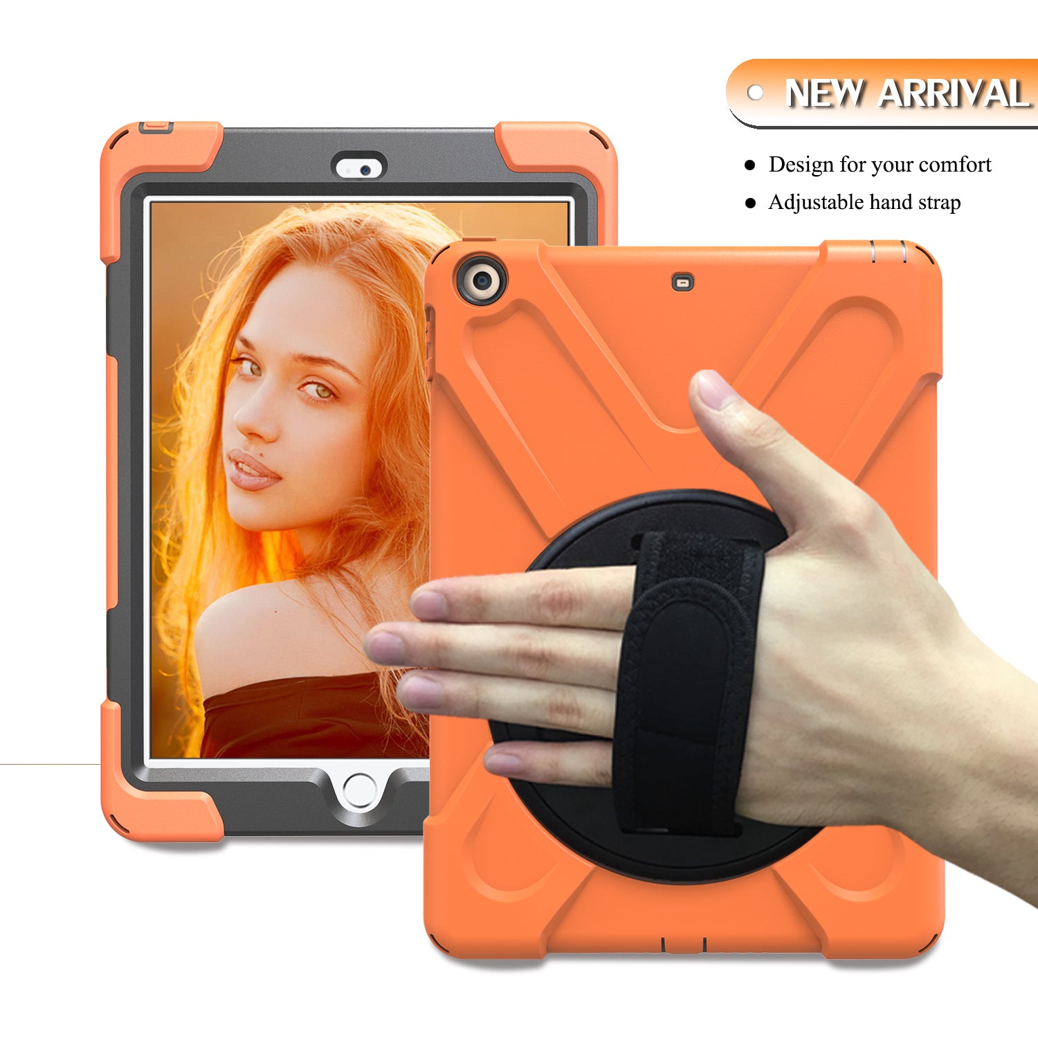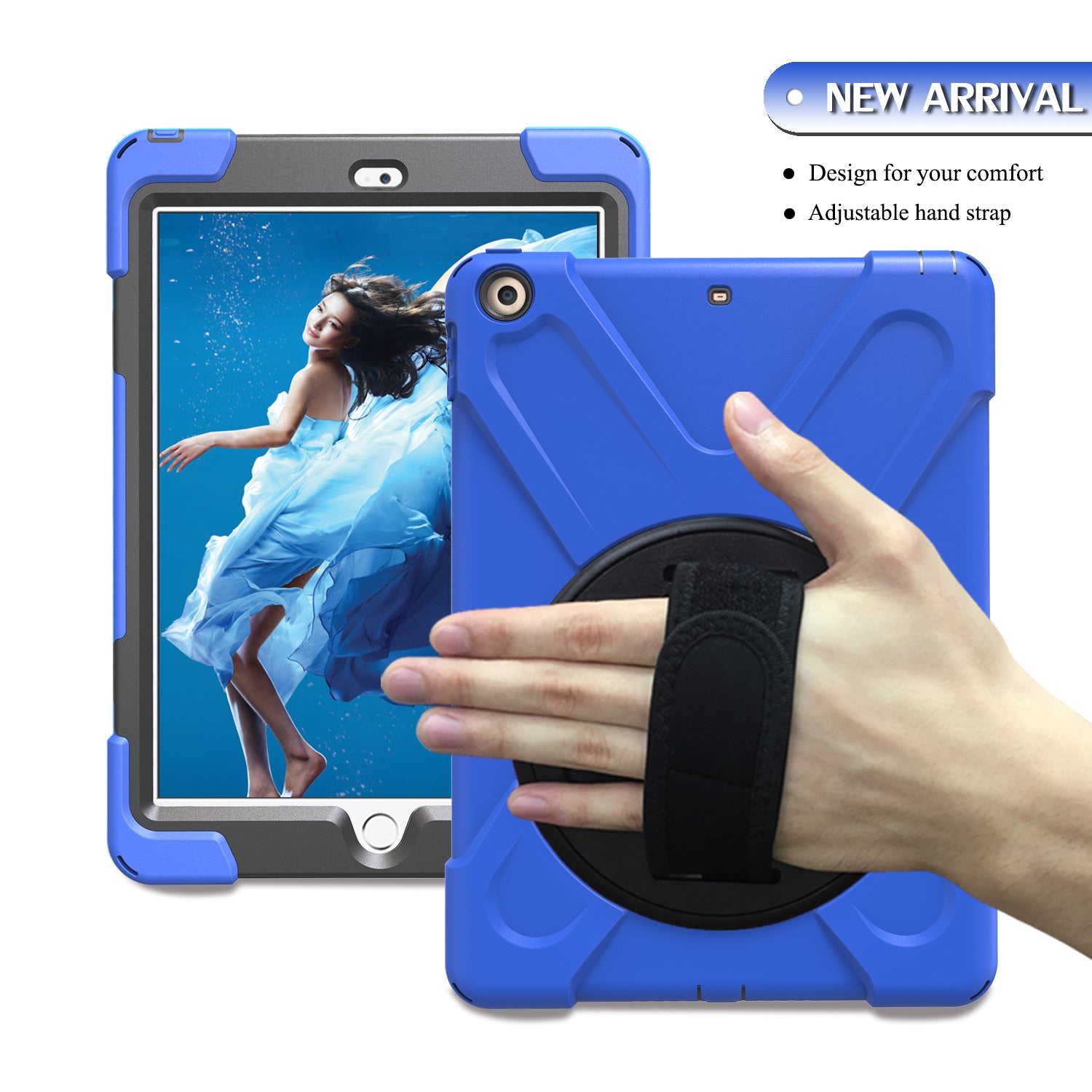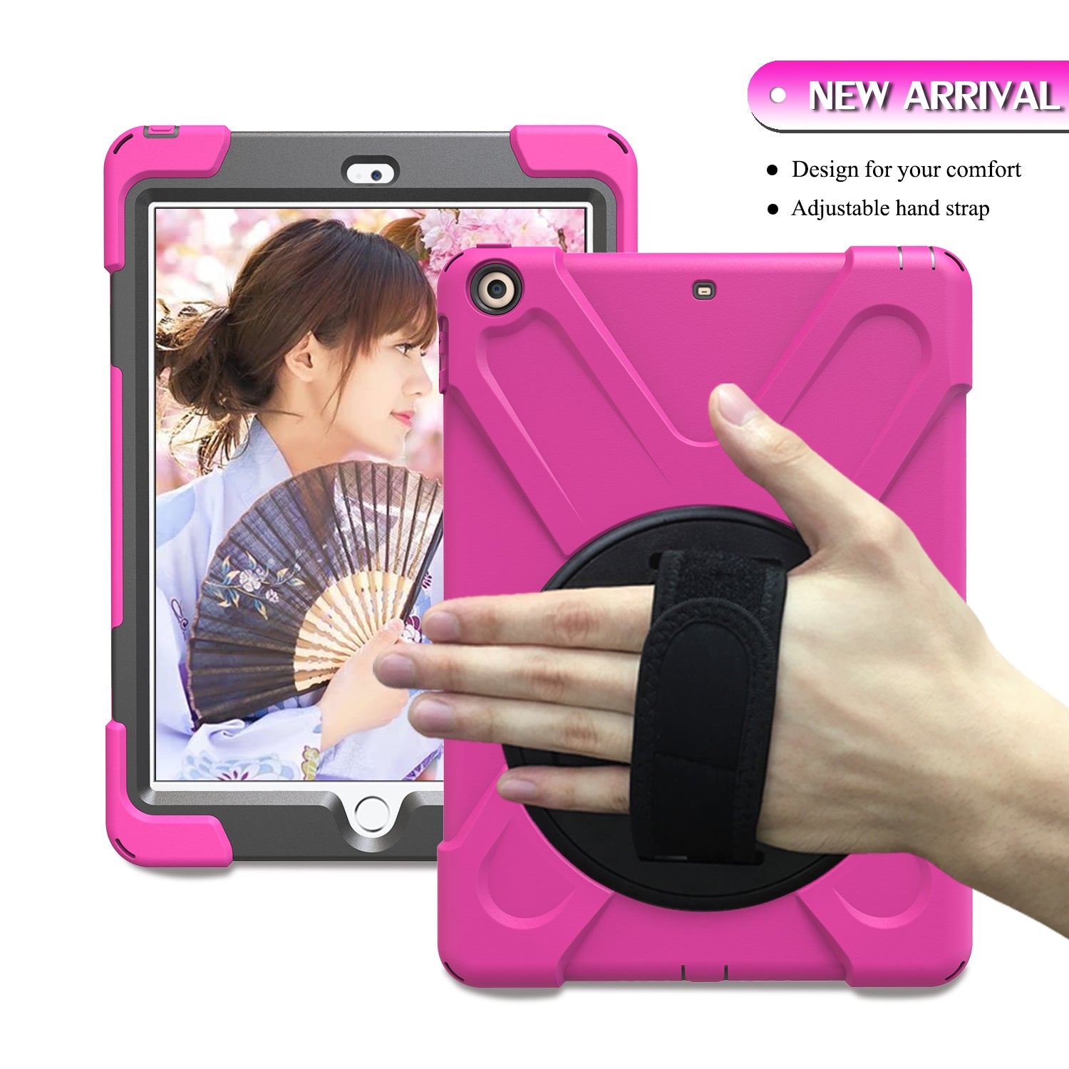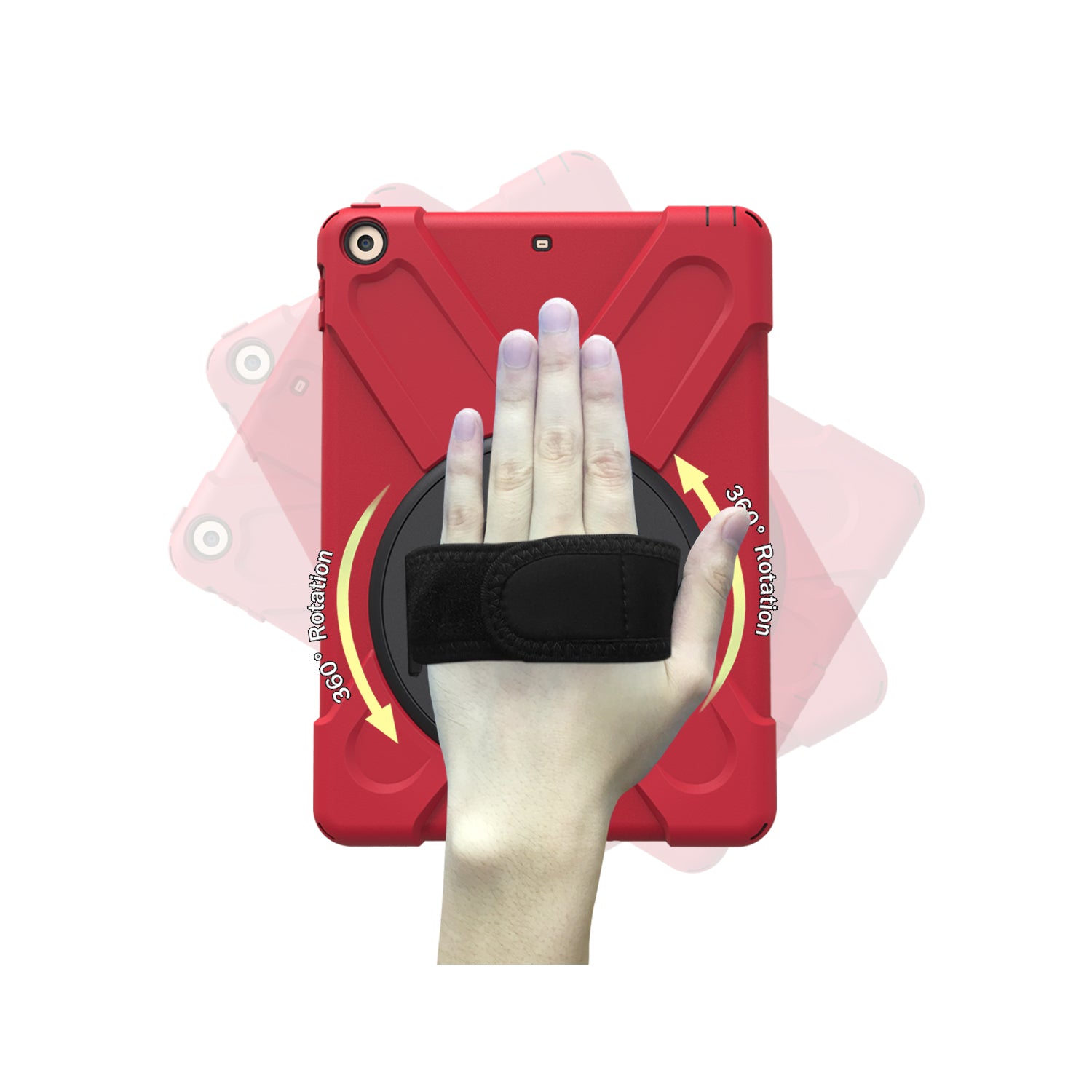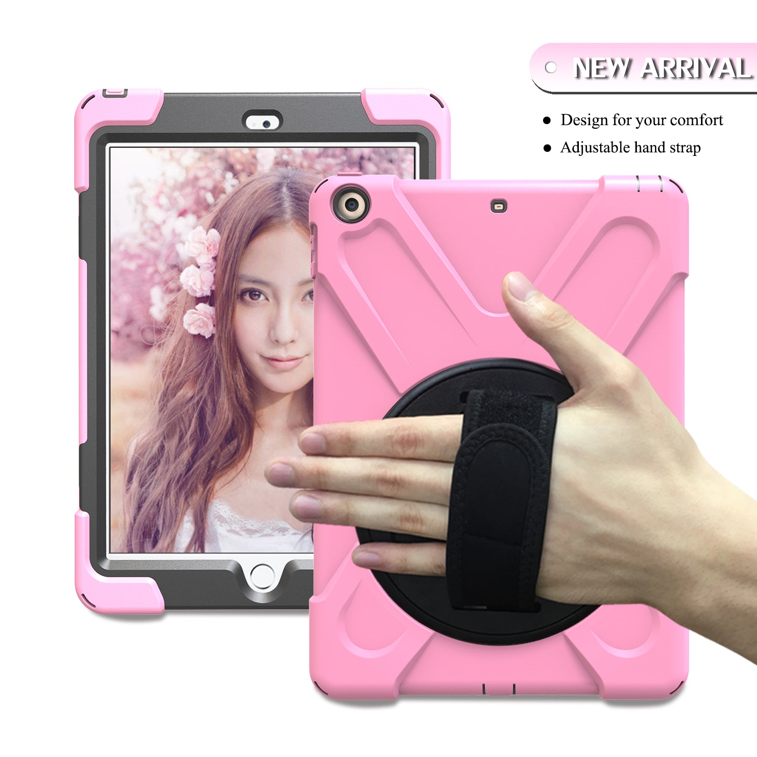For iPad 9.7 (2018)/9.7 (2017) X-Shape 360 Degree Swivel PC + TPU Combo Kickstand Case with Hand Holder Strap