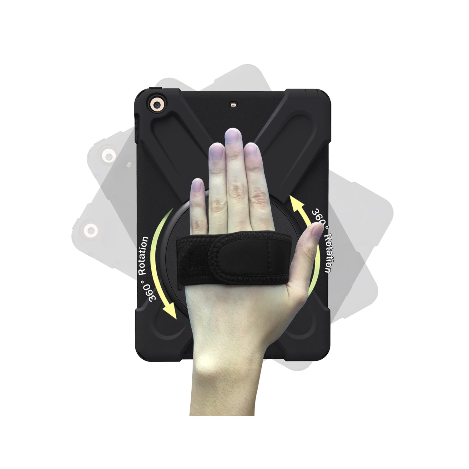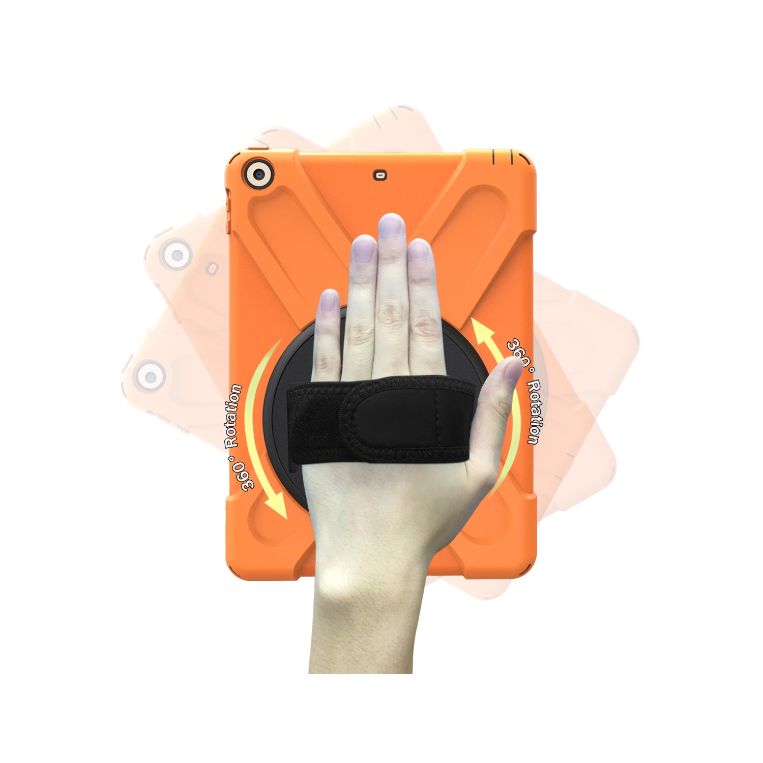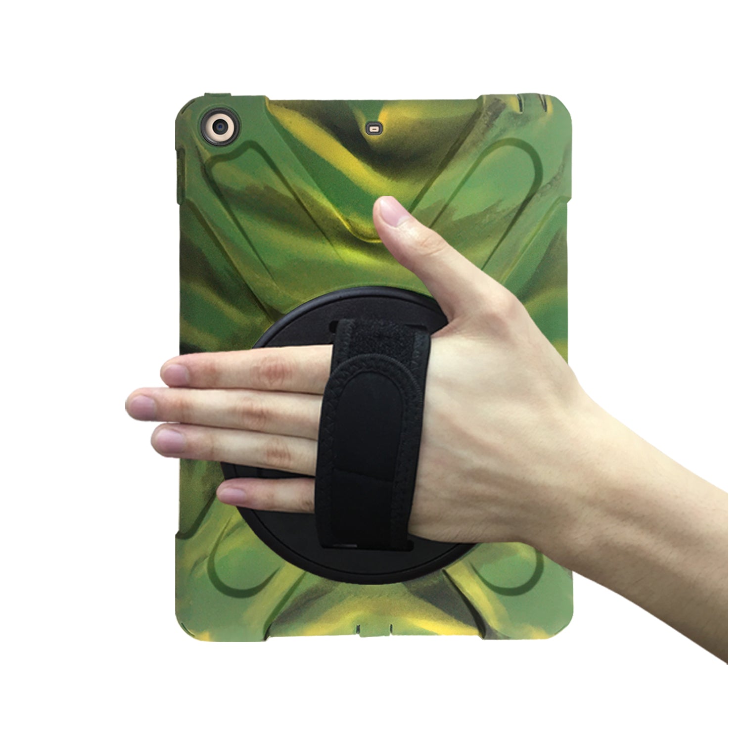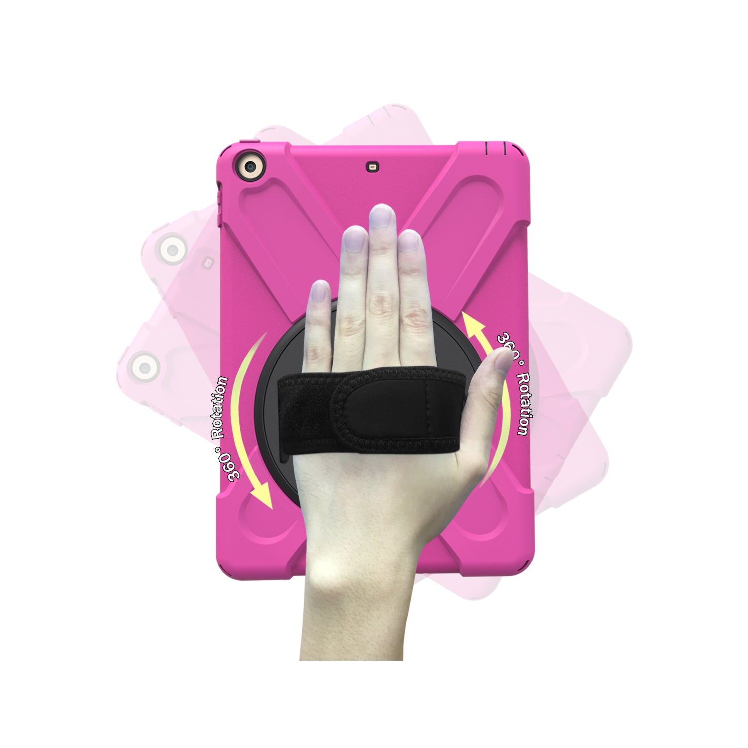 For iPad 9.7 (2018)/9.7 (2017) X-Shape 360 Degree Swivel PC + TPU Combo Kickstand Case with Hand Holder Strap