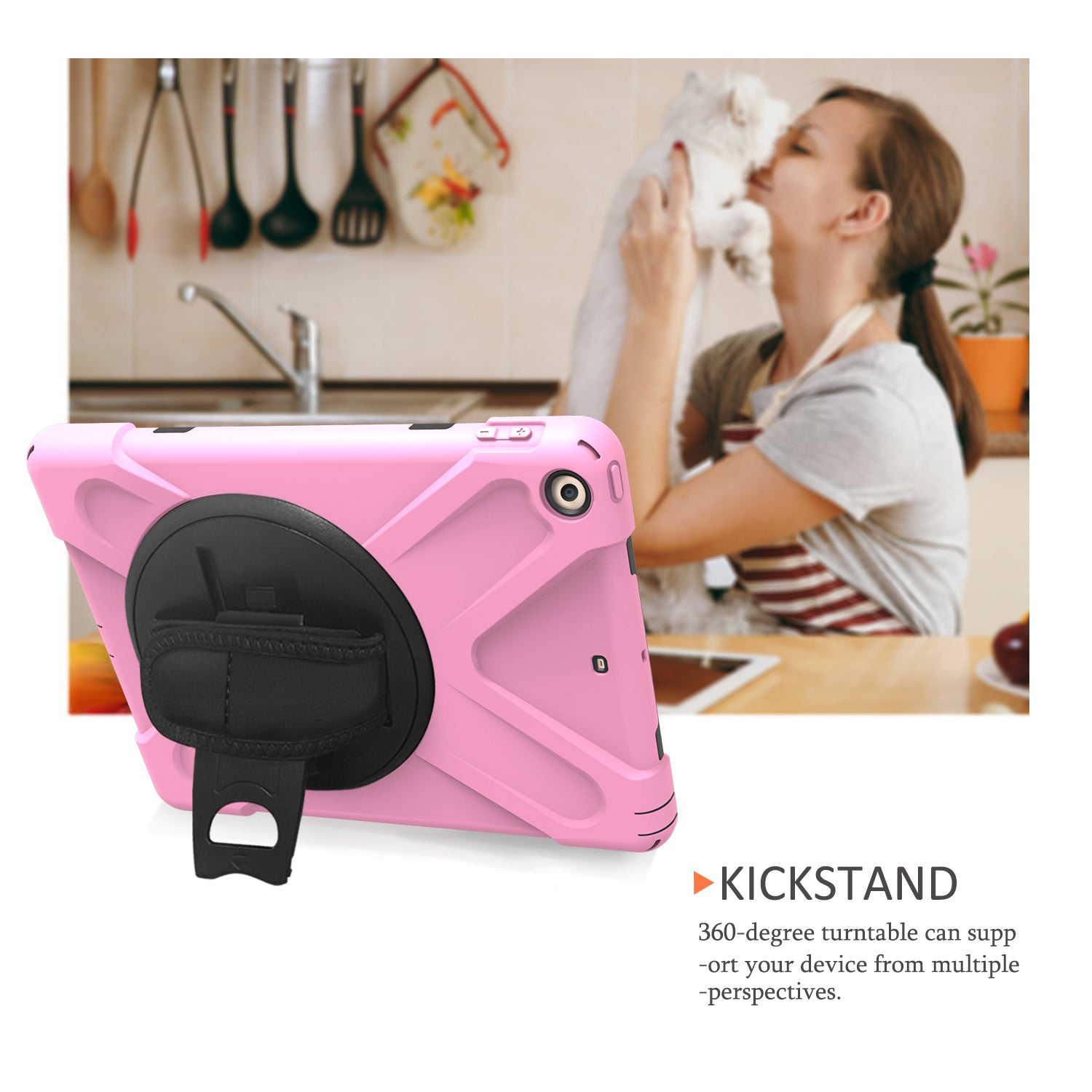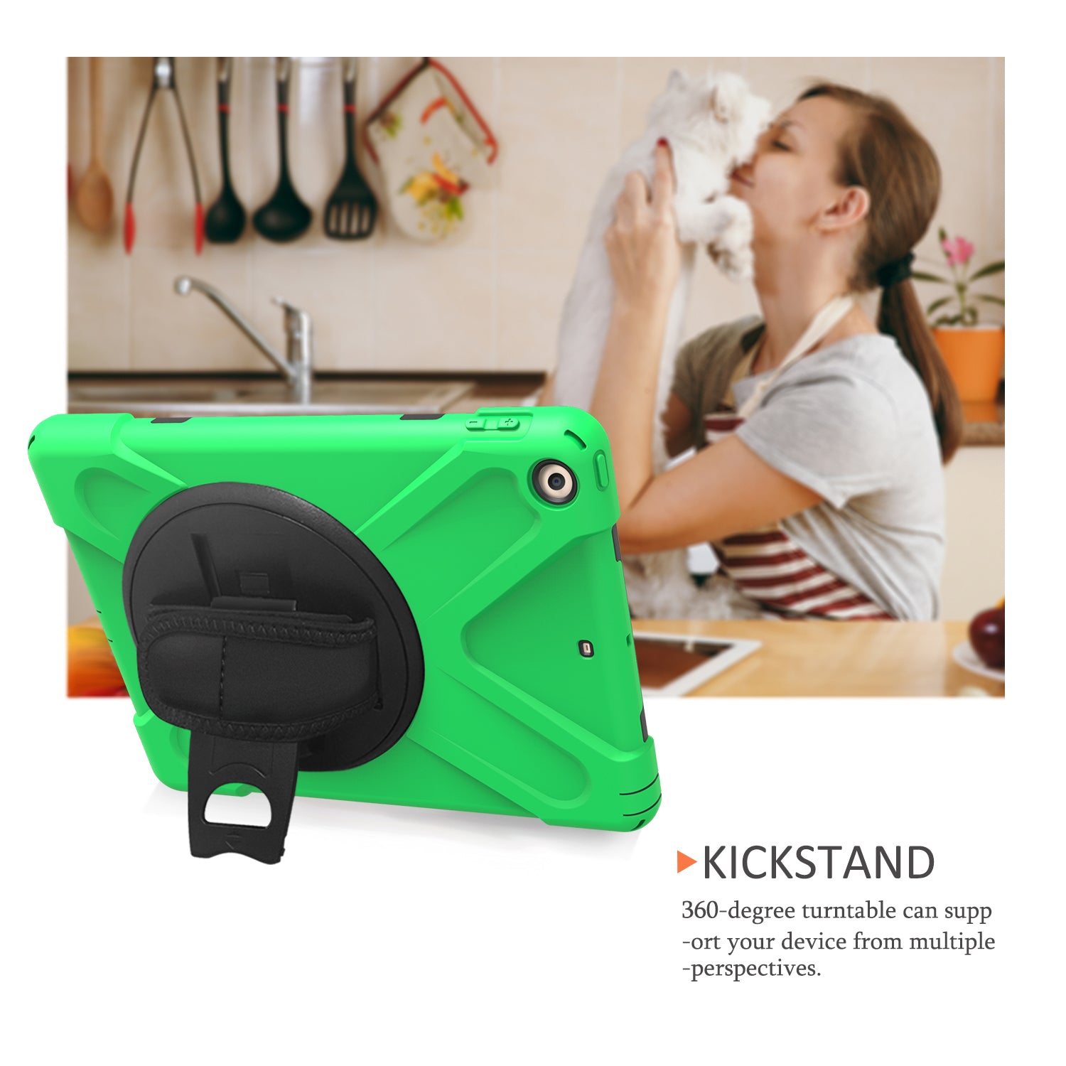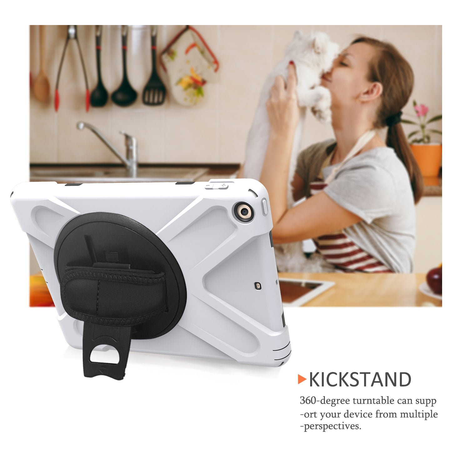 - Integrated 360 degree rotary kickstand frees your hands for landscape or portrait viewing