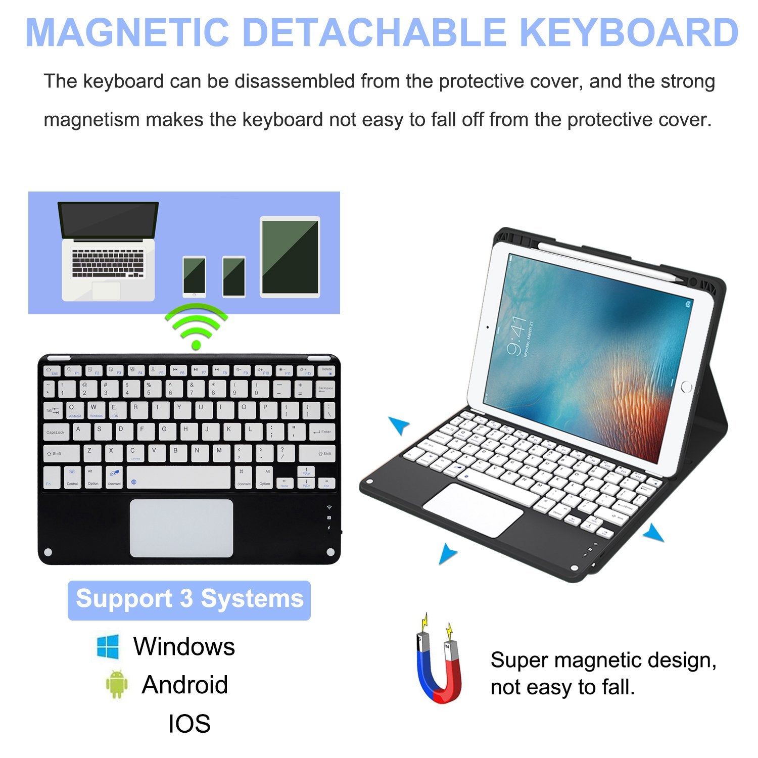 For iPad 9.7-inch (2017)/(2018)/Pro 9.7 inch (2016)/Air 2 Detachable X7 Bluetooth Keyboard Case with TouchPad Soft Leather Protective Case