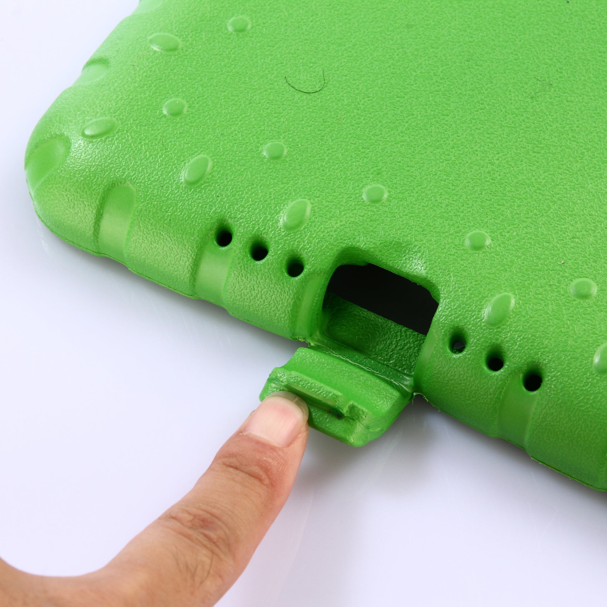 Quality EVA foam is shock-resistant prevents bumps and scratches from damaging the tablet. A foldable kickstand can stand up your ipad on the desk for hands-free horizontal viewing angle or typing position. The non-slip handle grip is designed to be easy for little hands to carry.