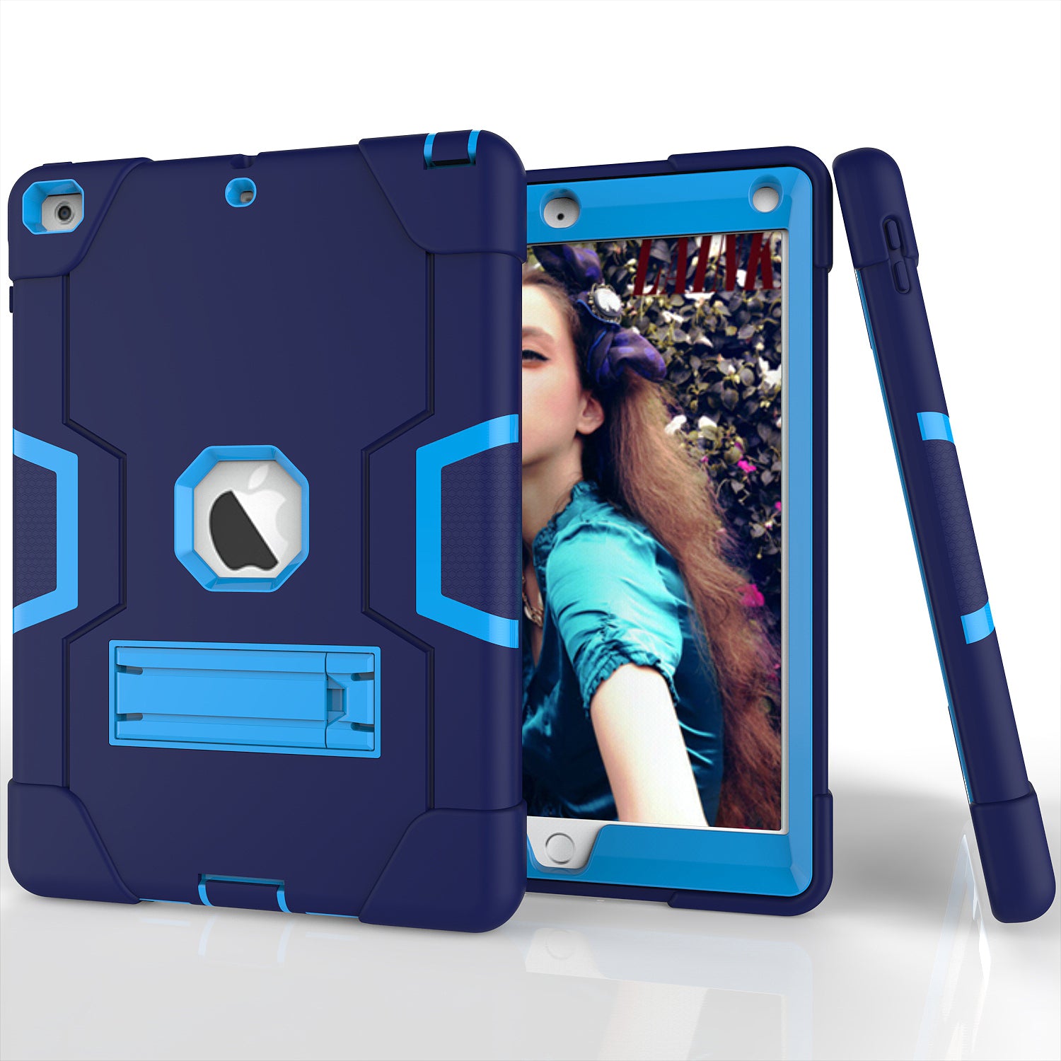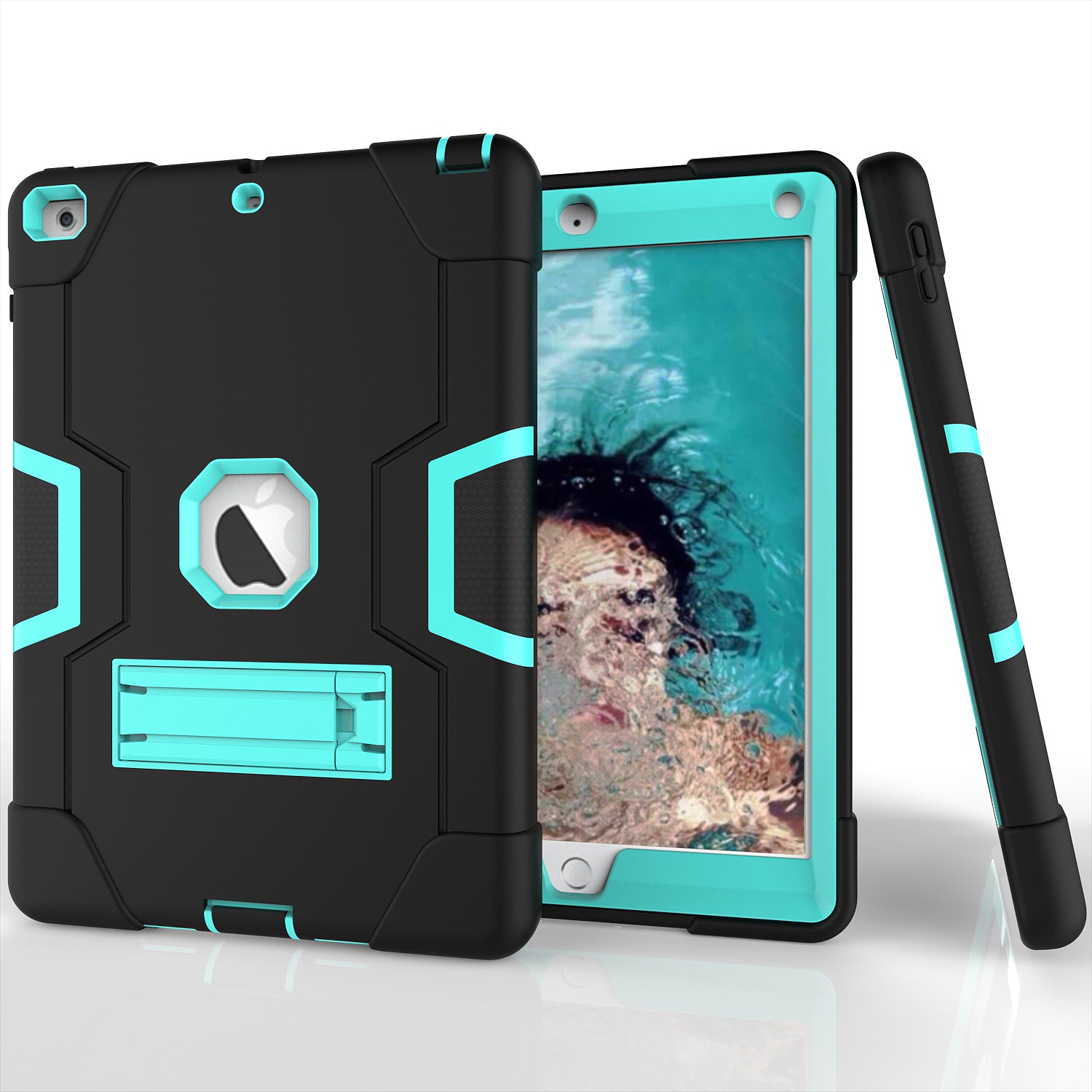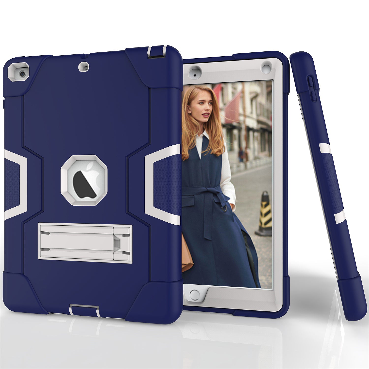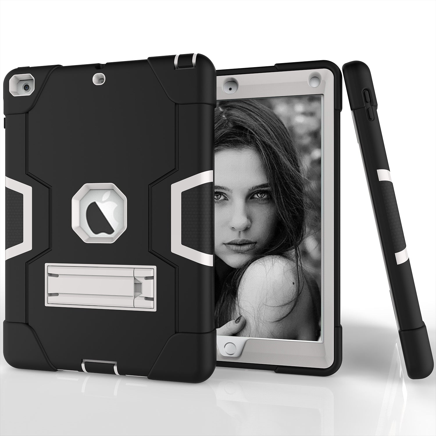 For iPad 9.7-inch (2018)/iPad 9.7-inch (2017) Bi-color PC Silicone Tablet Case Kickstand Anti-drop Hybrid Cover