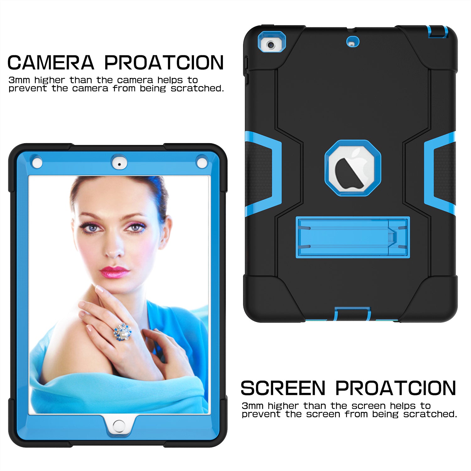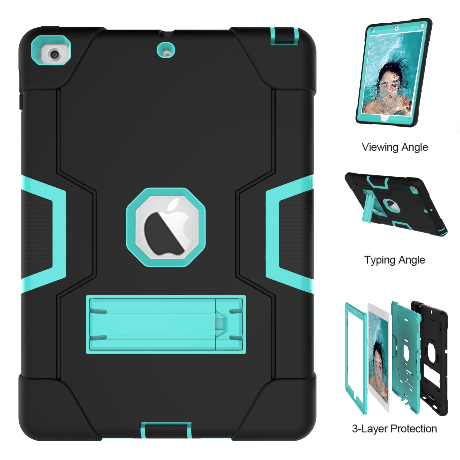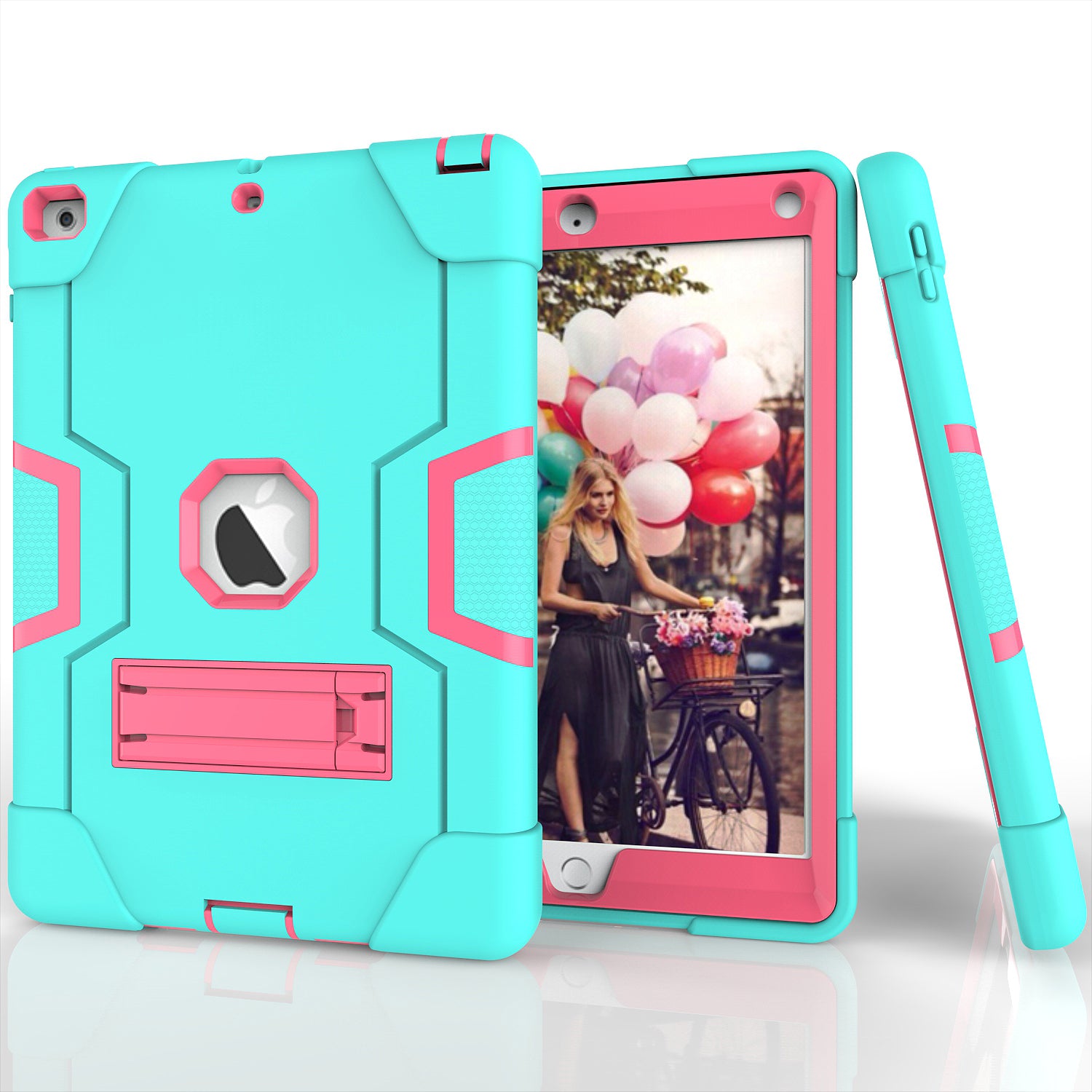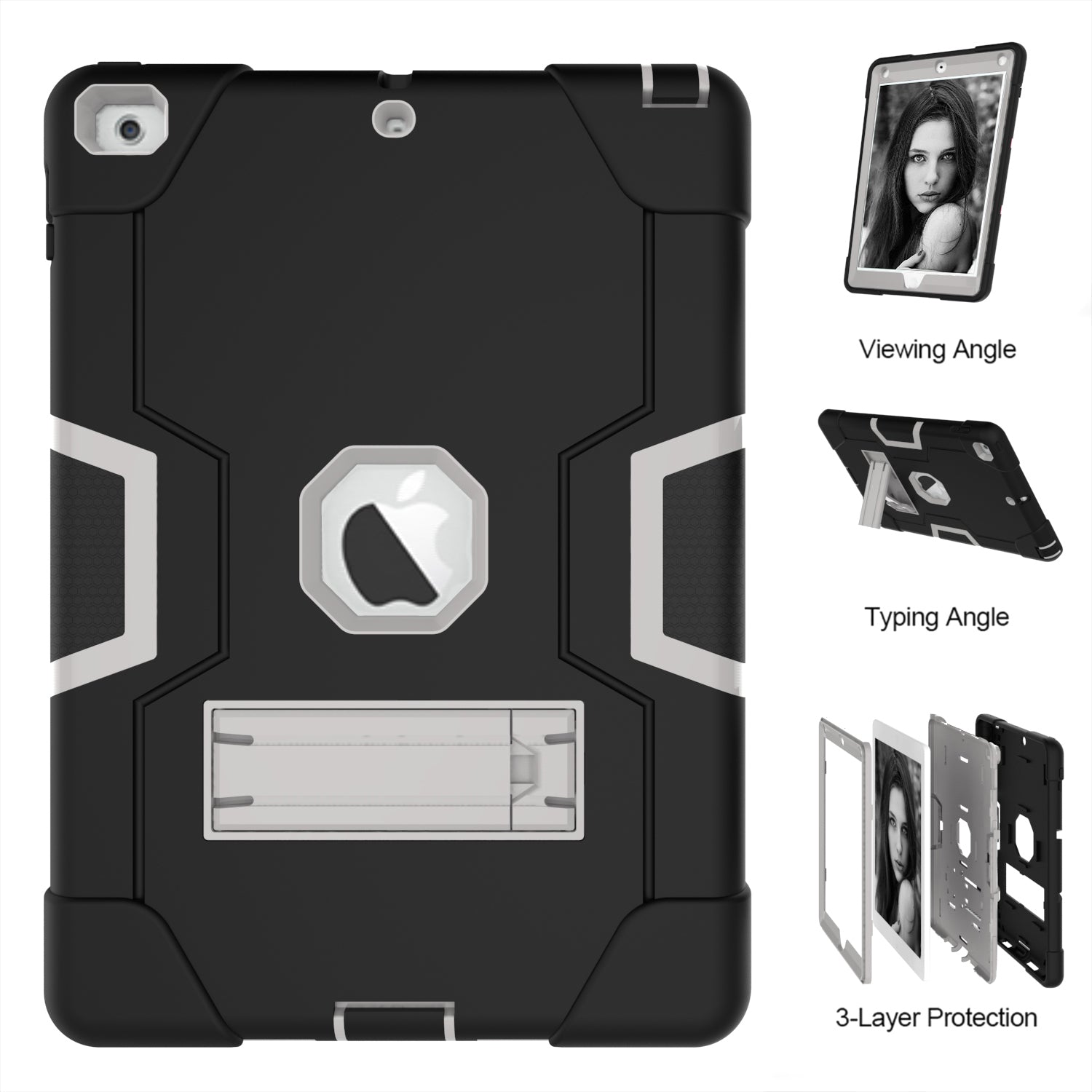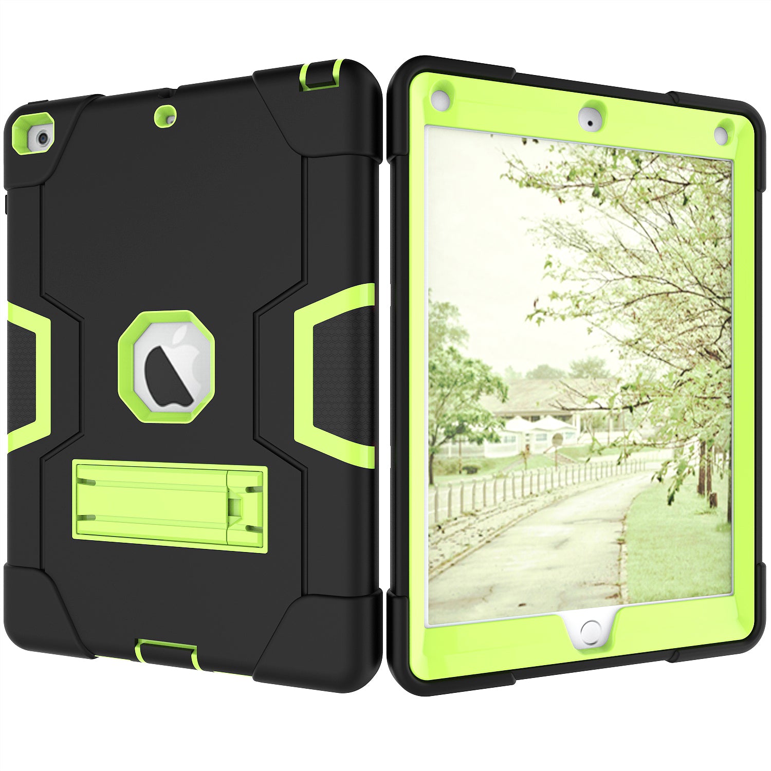For iPad 9.7-inch (2018)/iPad 9.7-inch (2017) Bi-color PC Silicone Tablet Case Kickstand Anti-drop Hybrid Cover