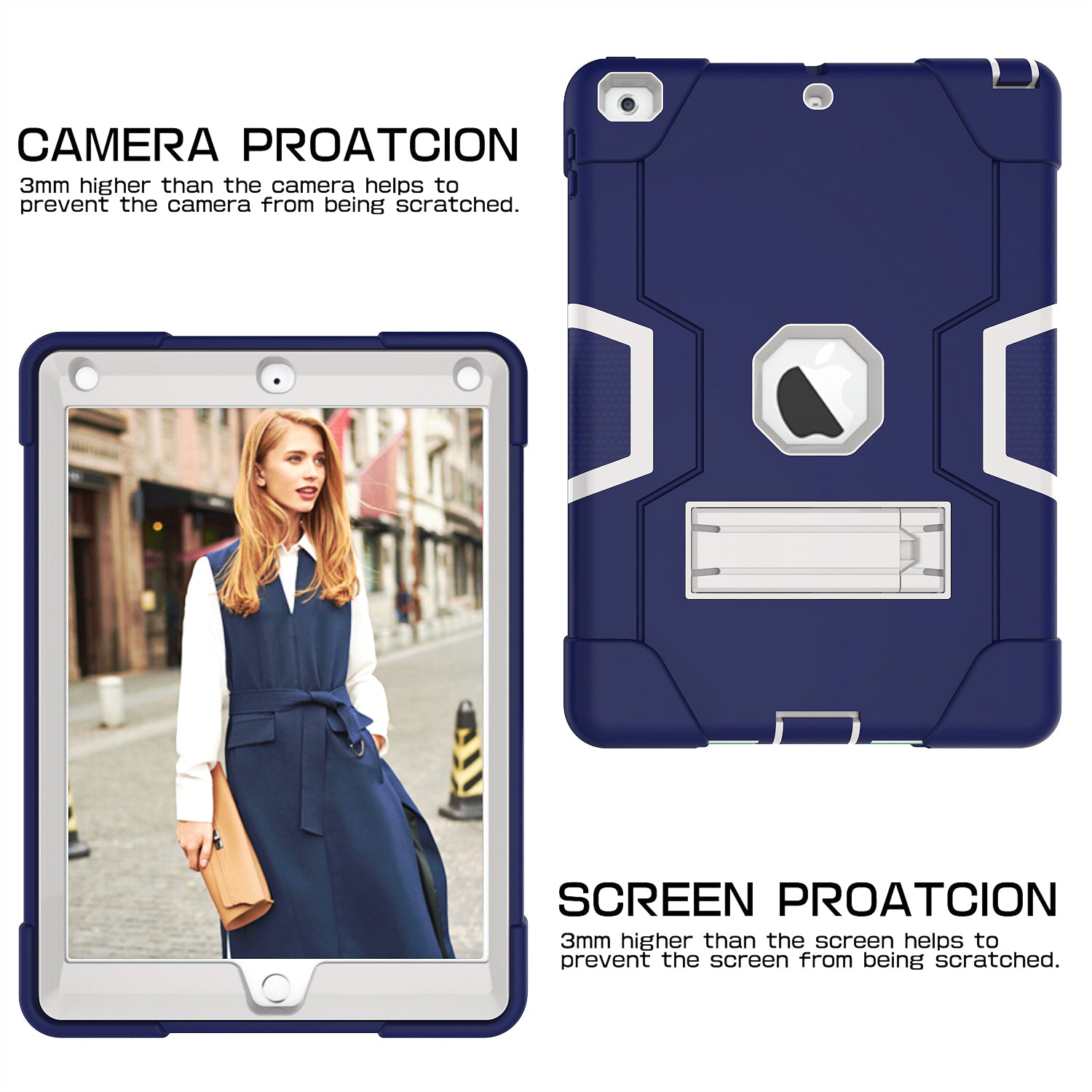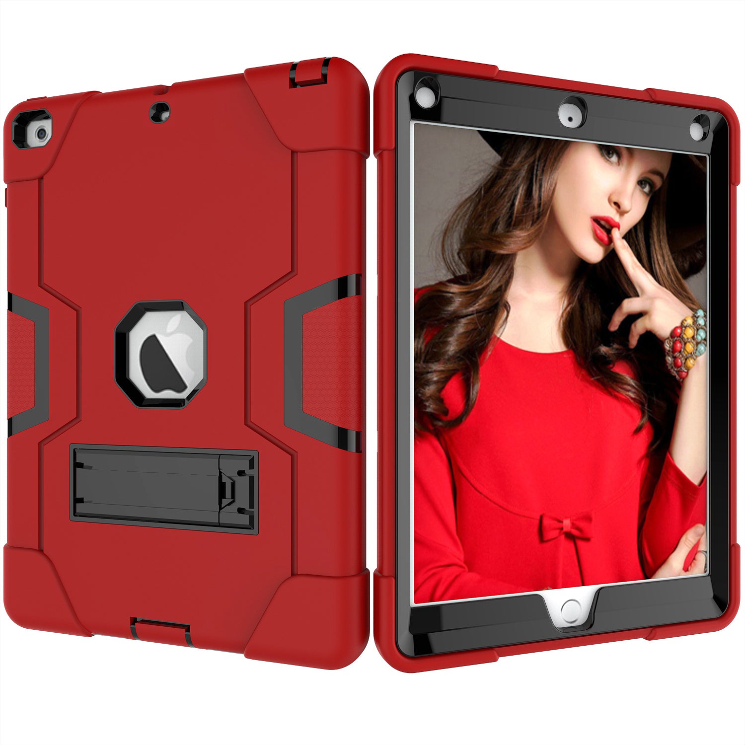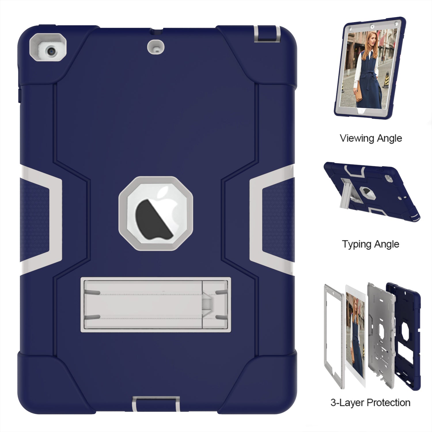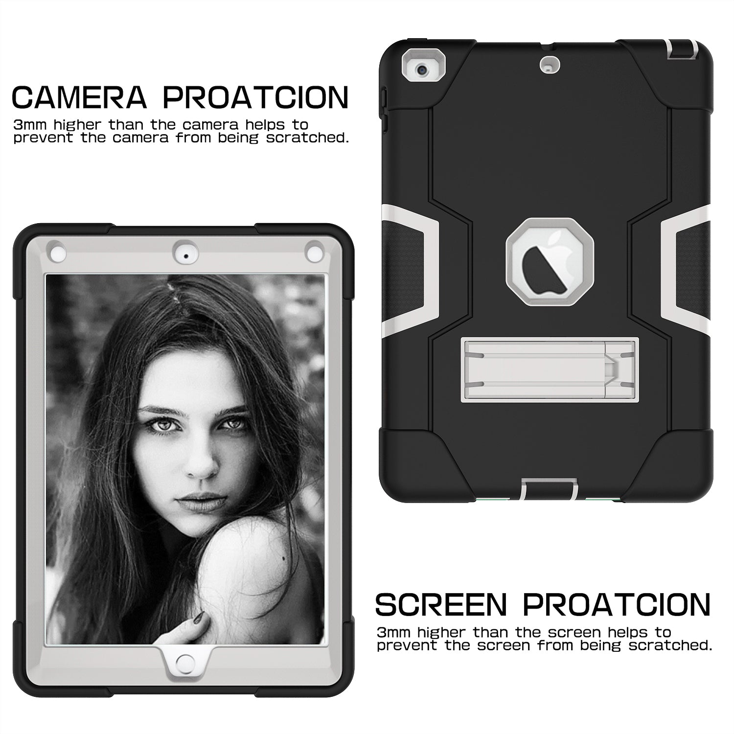 For iPad 9.7-inch (2018)/iPad 9.7-inch (2017) Bi-color PC Silicone Tablet Case Kickstand Anti-drop Hybrid Cover