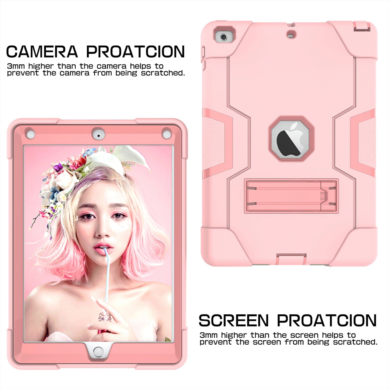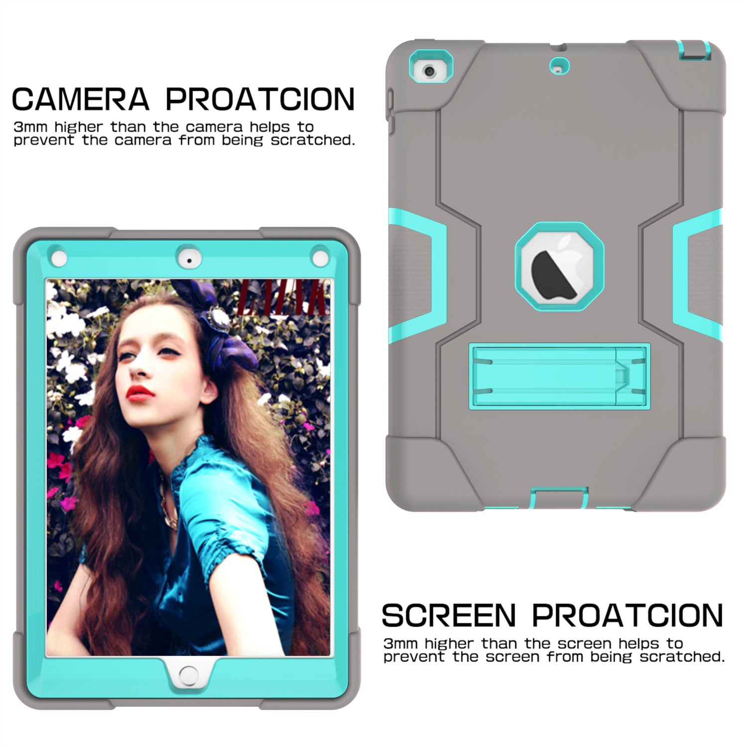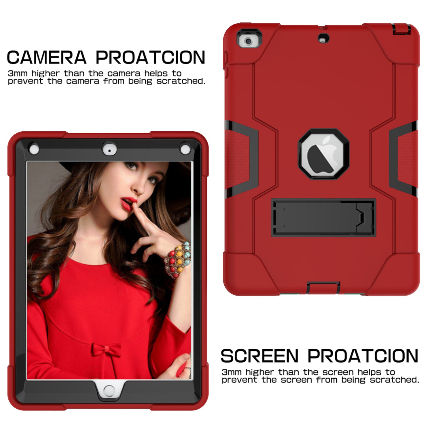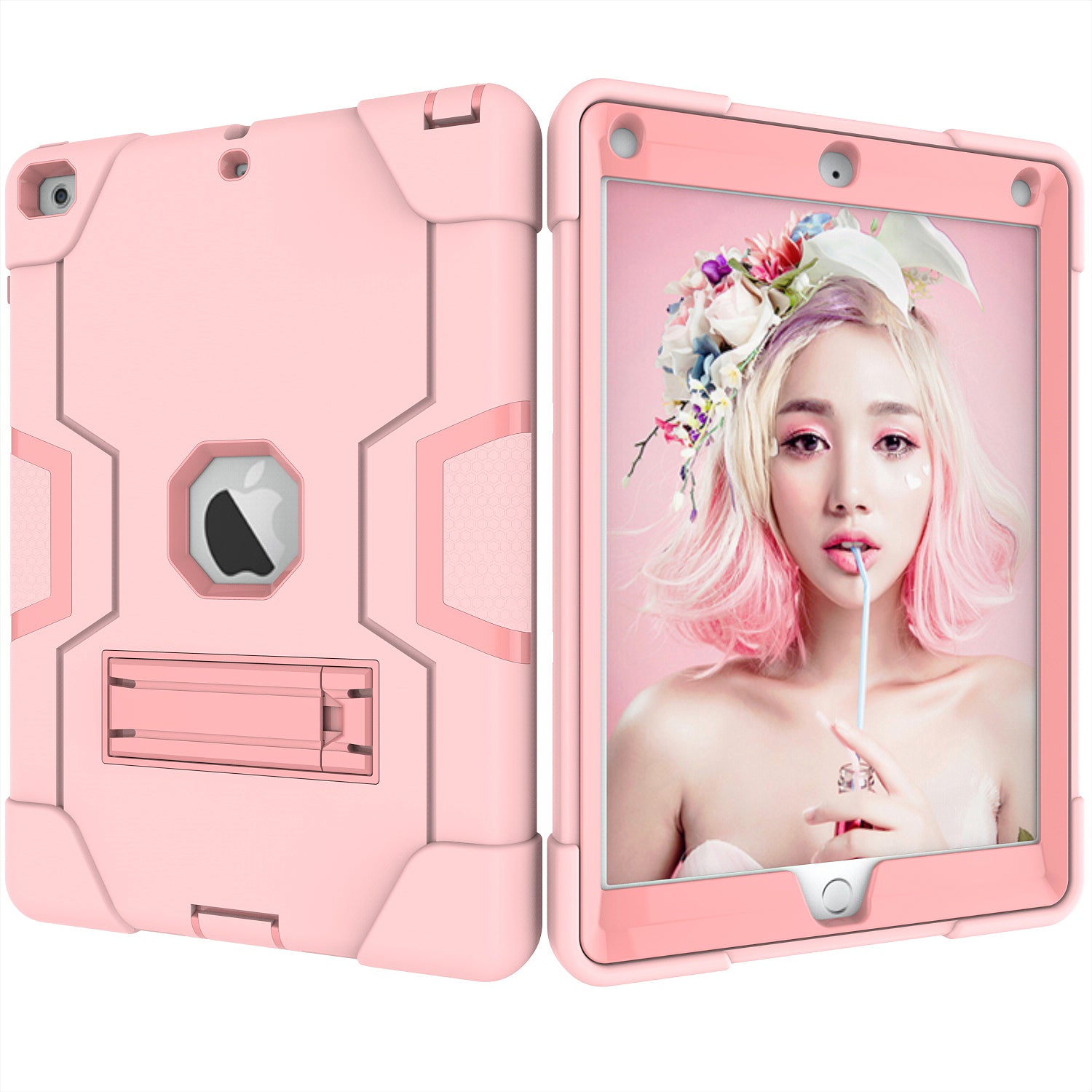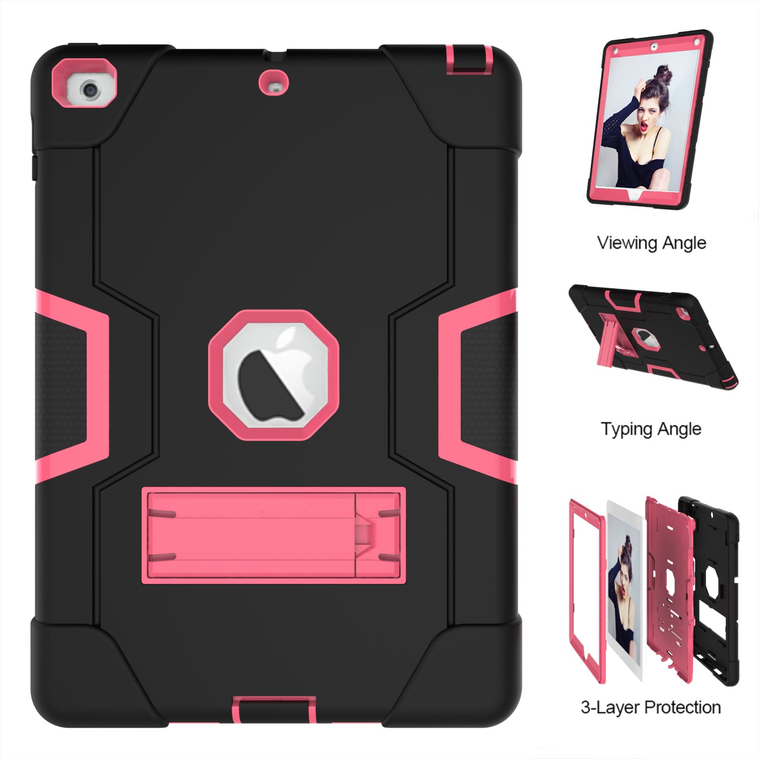 For iPad 9.7-inch (2018)/iPad 9.7-inch (2017) Bi-color PC Silicone Tablet Case Kickstand Anti-drop Hybrid Cover