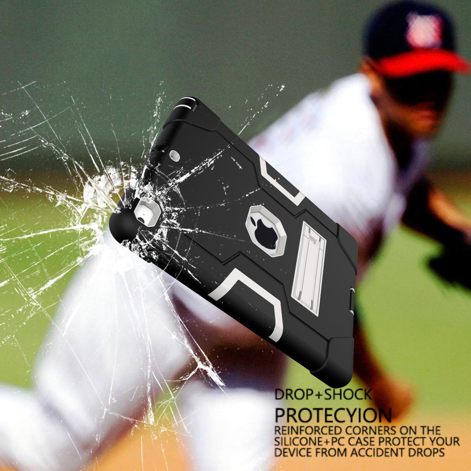 Impact resistant design and shock absorbing silicone + plastic materials fully cover back and edges, protecting against accidental drops and falls. Convenient adjustable but sturdy kickstand fully free your hands when you're reading, watching and surfing the internet in your free time