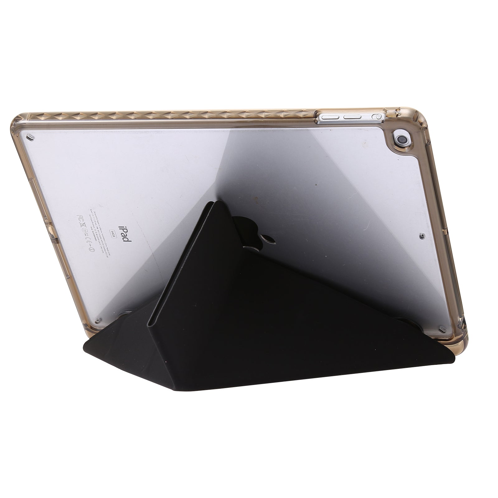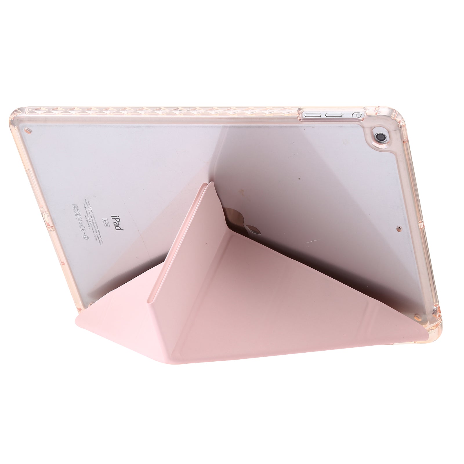 For iPad Air (2013) / Air 2 / iPad 9.7-inch (2017) / (2018) Leather+Clear Acrylic Tablet Case Origami Tri-fold Stand Tablet Cover
