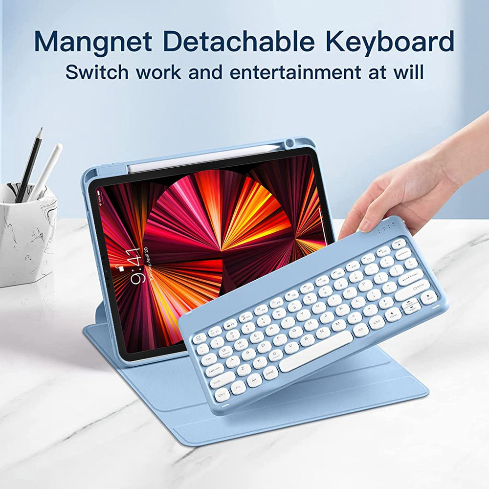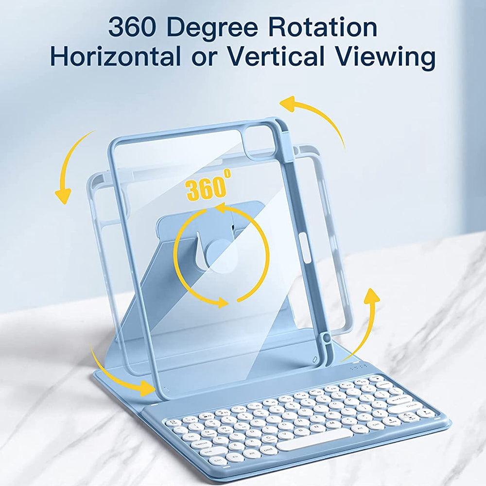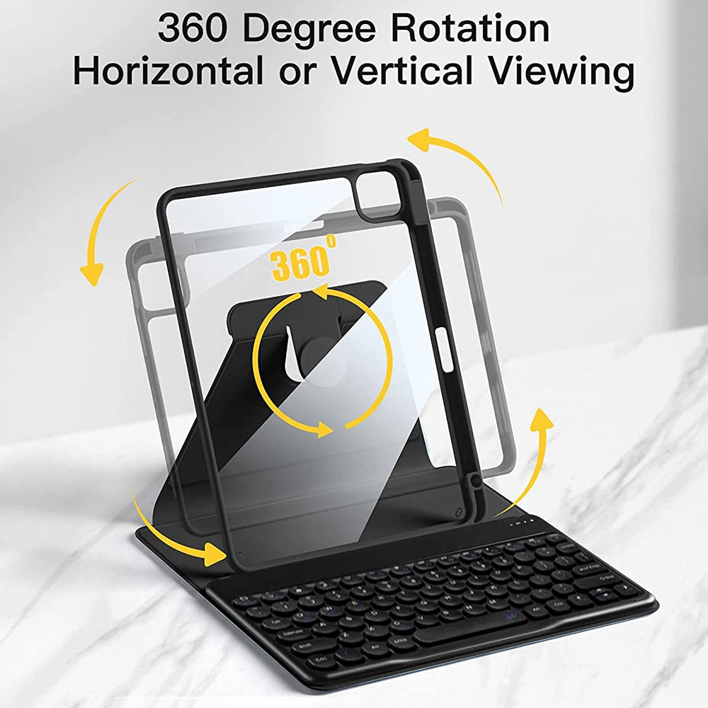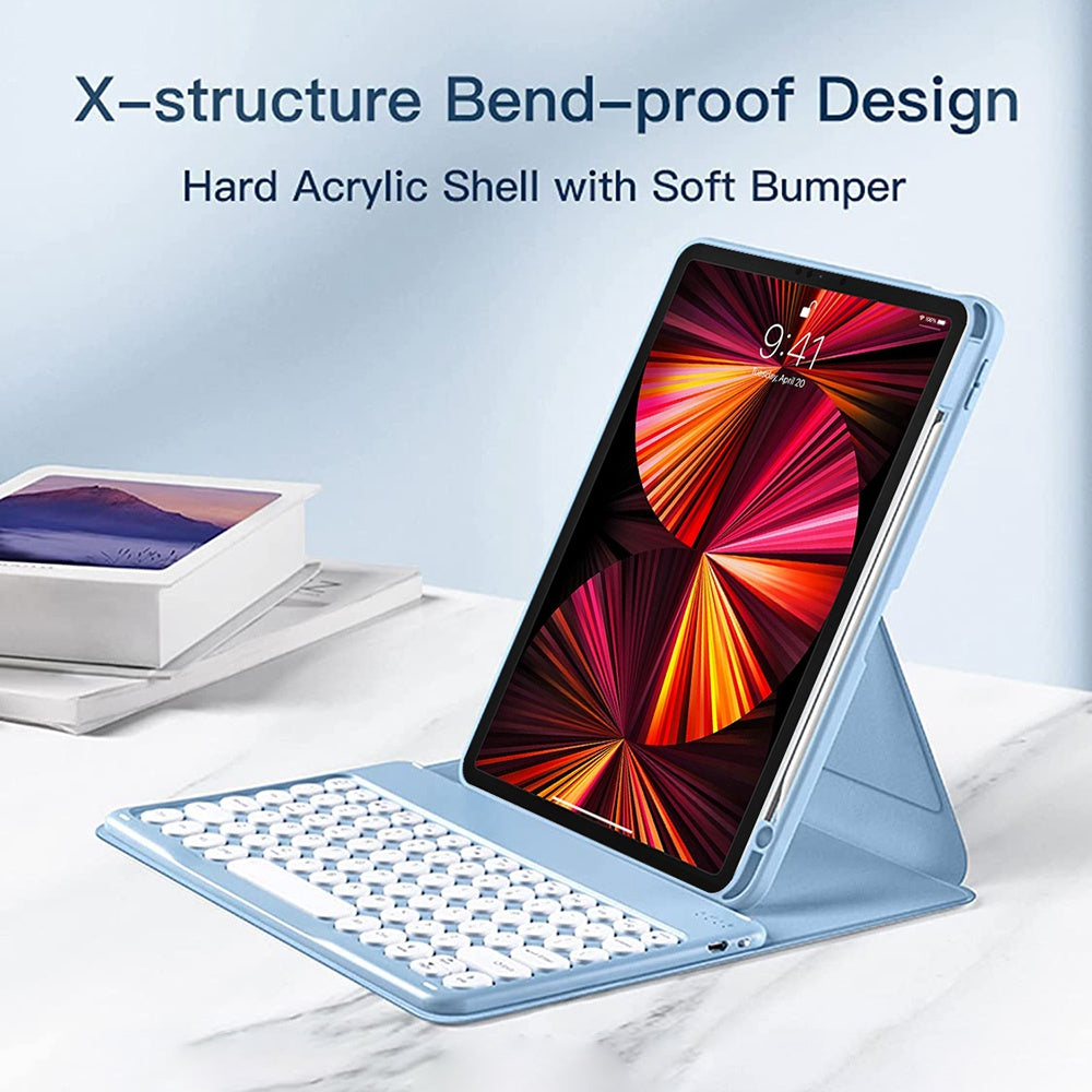 For iPad Air (2020)/(2022)/iPad Pro 11-inch (2018)/(2020)/(2021), X3 Round Keys Bluetooth Keyboard with Dual Mode Mouse + Rotating Stand Protective Case