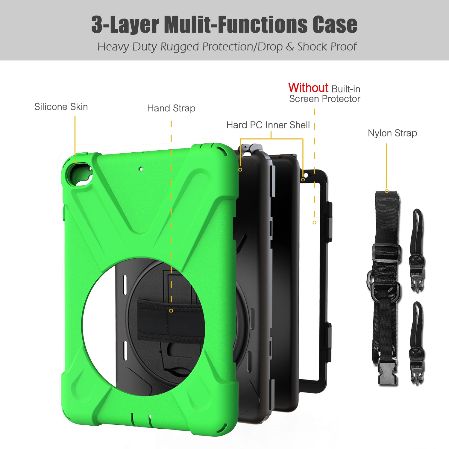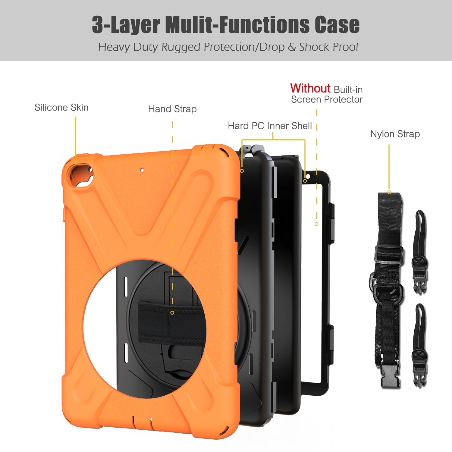 For iPad mini (2019) 7.9 inch / mini 4 X-Shape PC + TPU Rotary Kickstand Cover with Handstrap + Shoulder Strap
