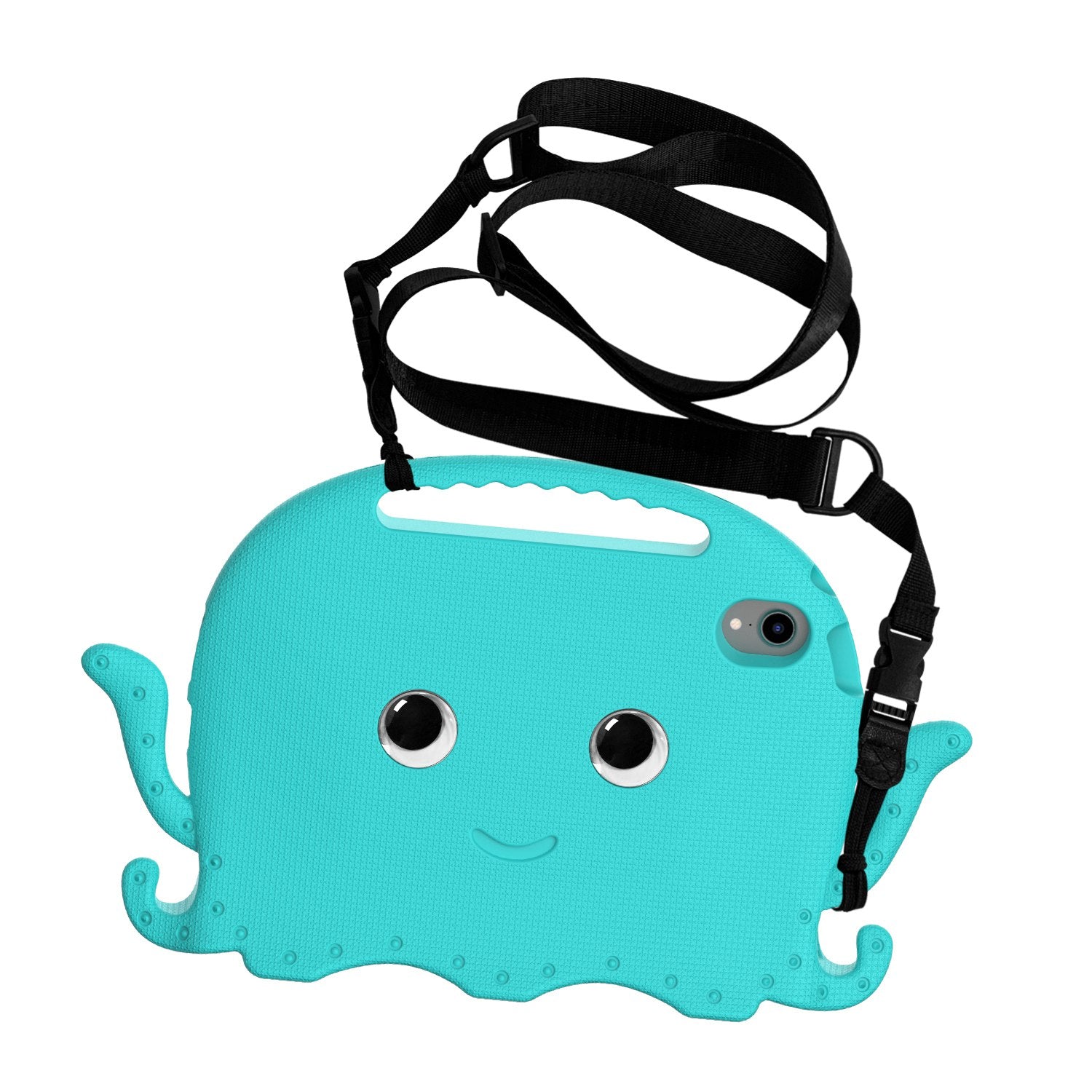 For iPad mini (2021) Cute Octopus Shape EVA Case Pen Slot Design Shockproof Tablet Cover with Handle and Shoulder Strap
