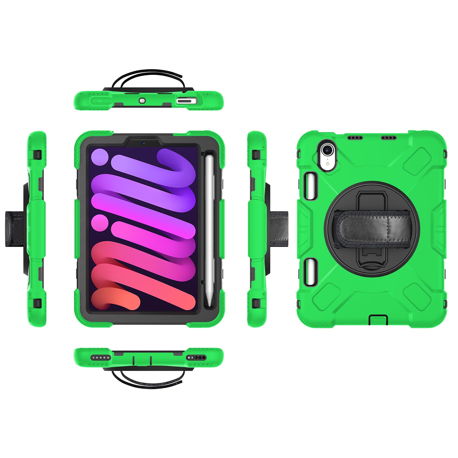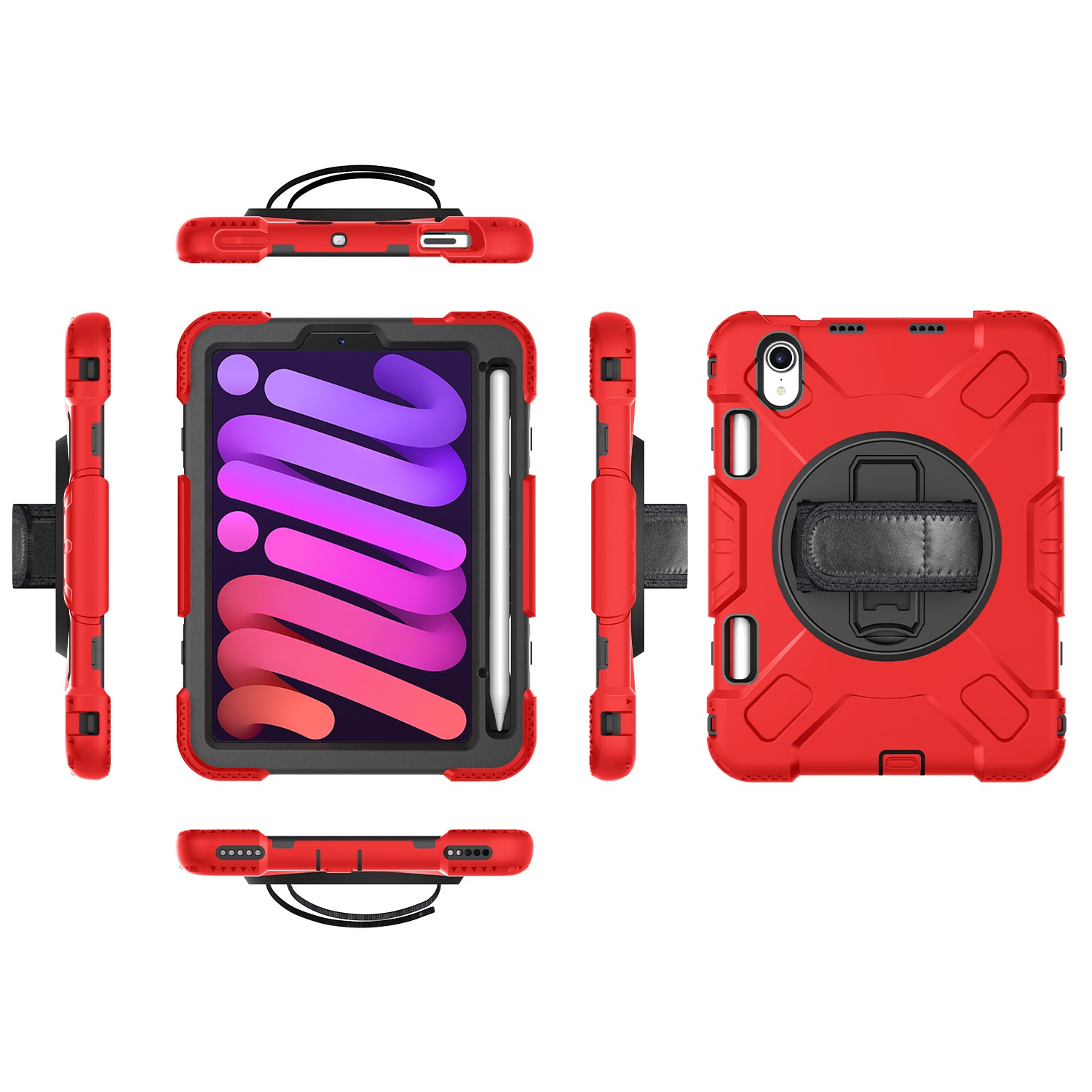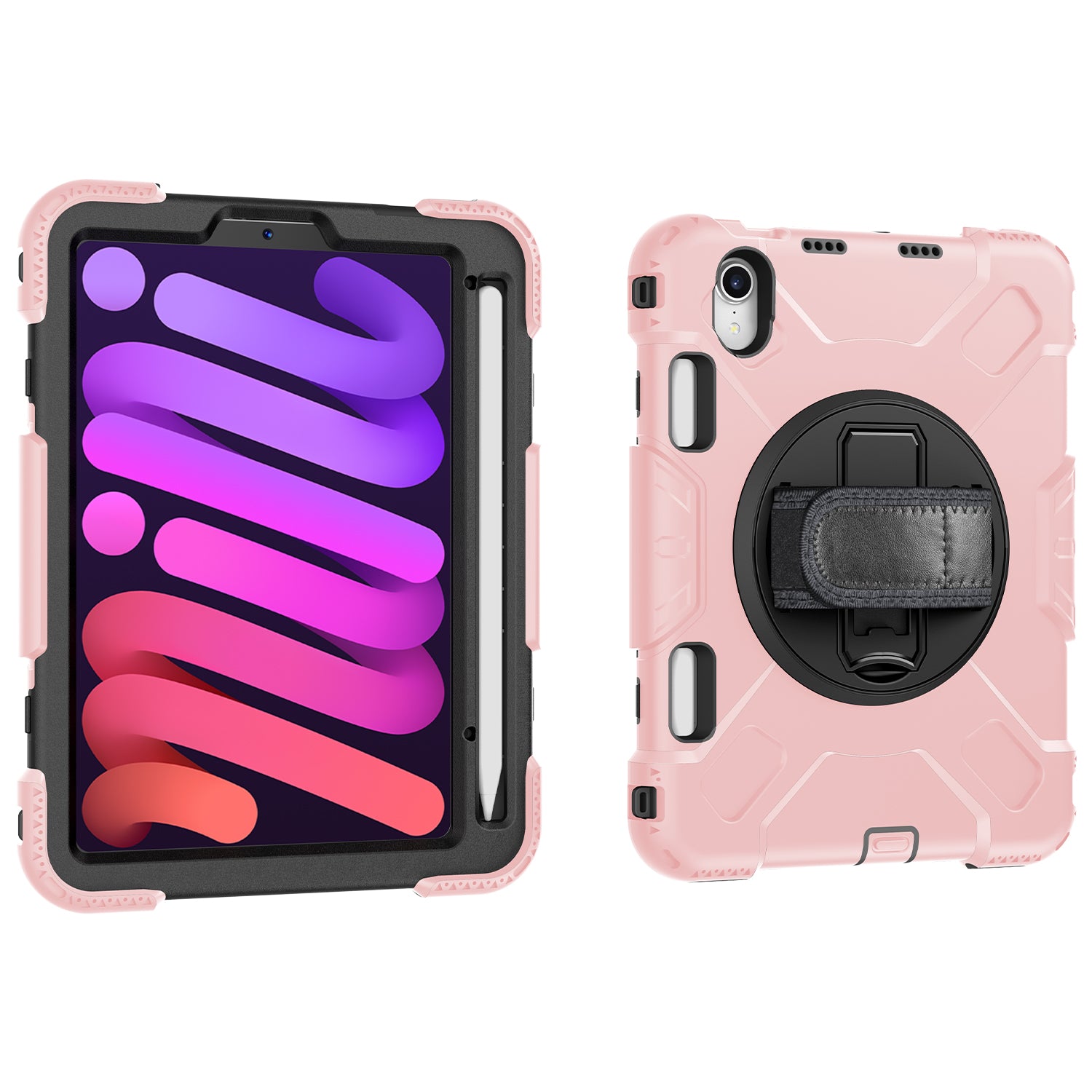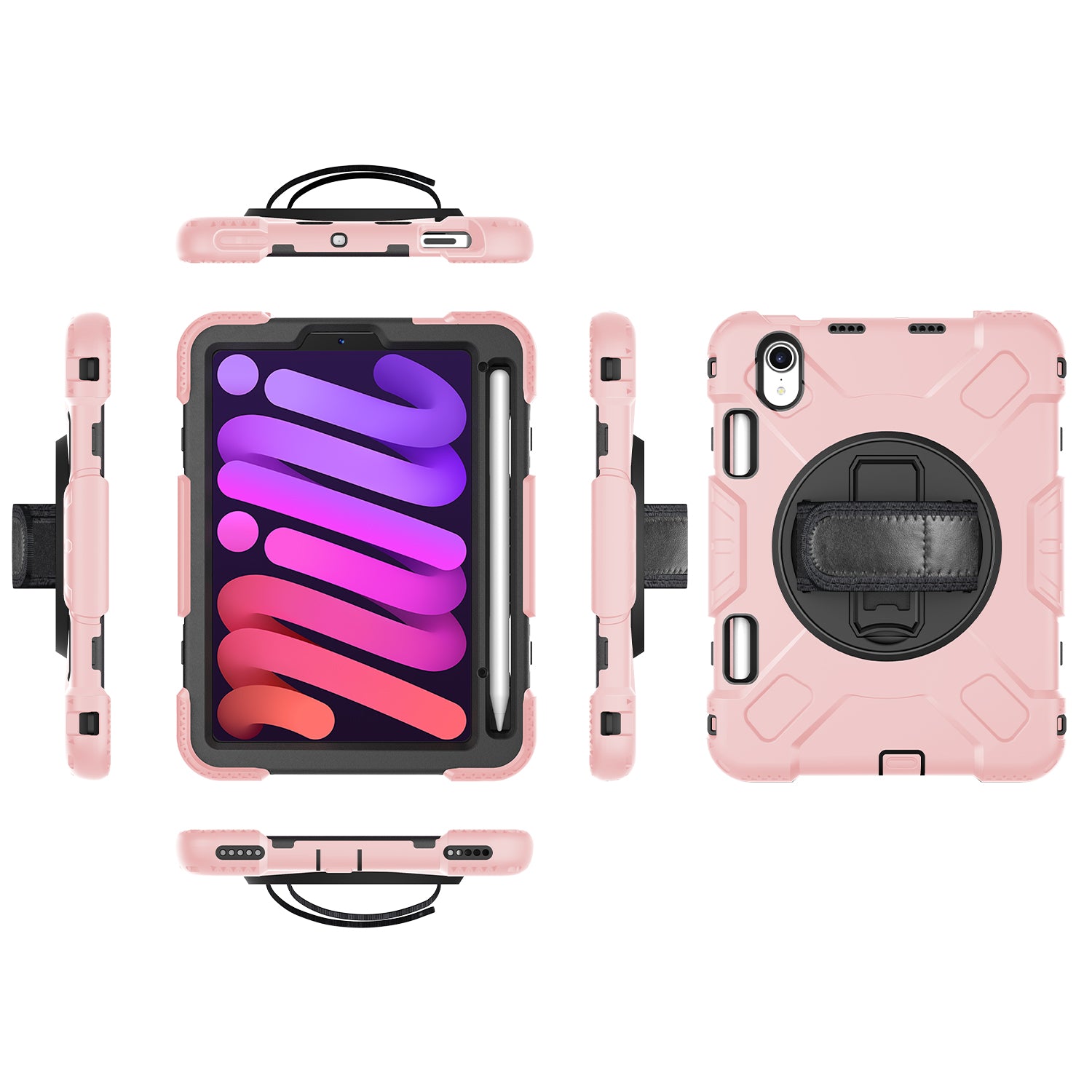 For iPad mini (2021) PC+Silicone Tablet Case Protective Kickstand Cover with Pen Slot / Shoulder Strap