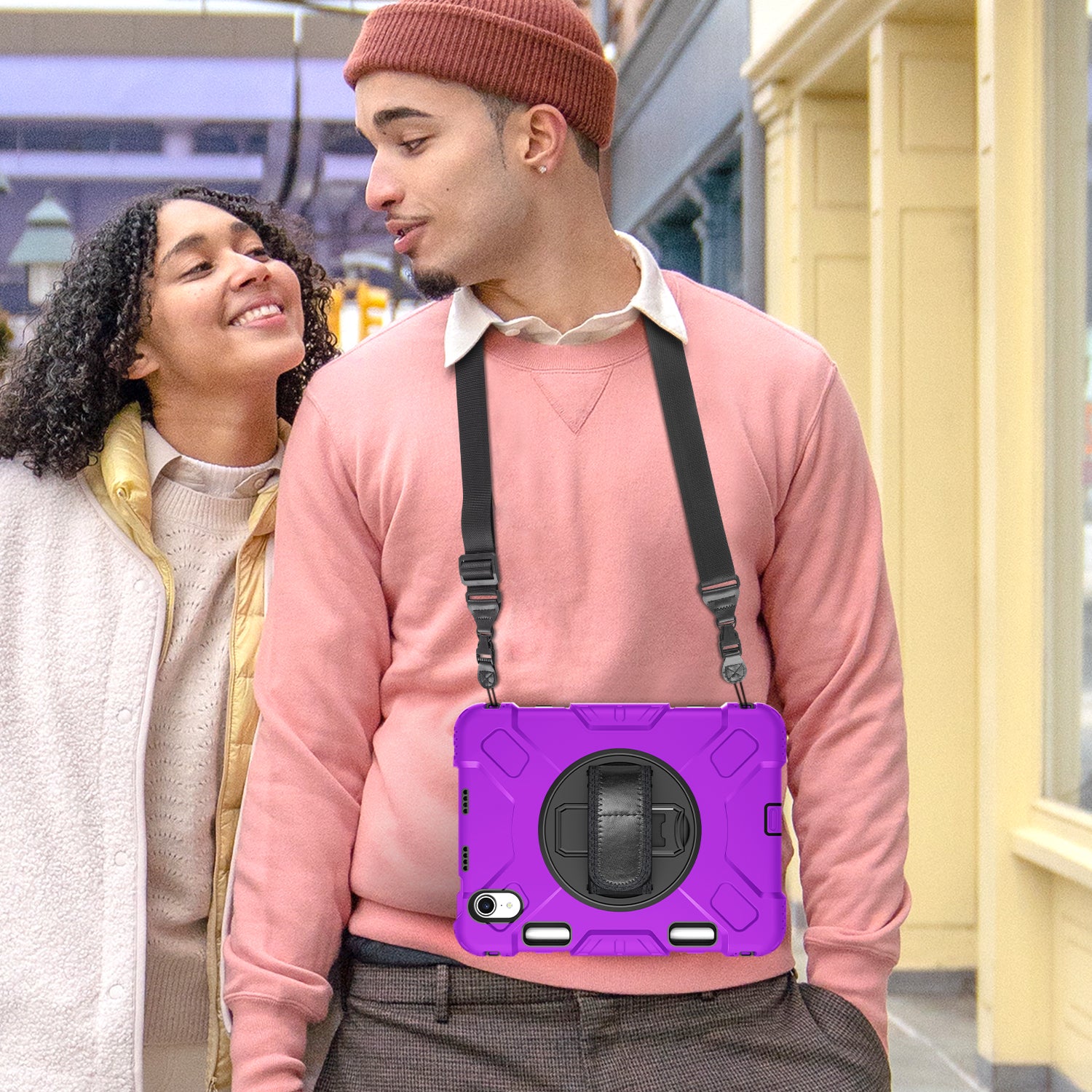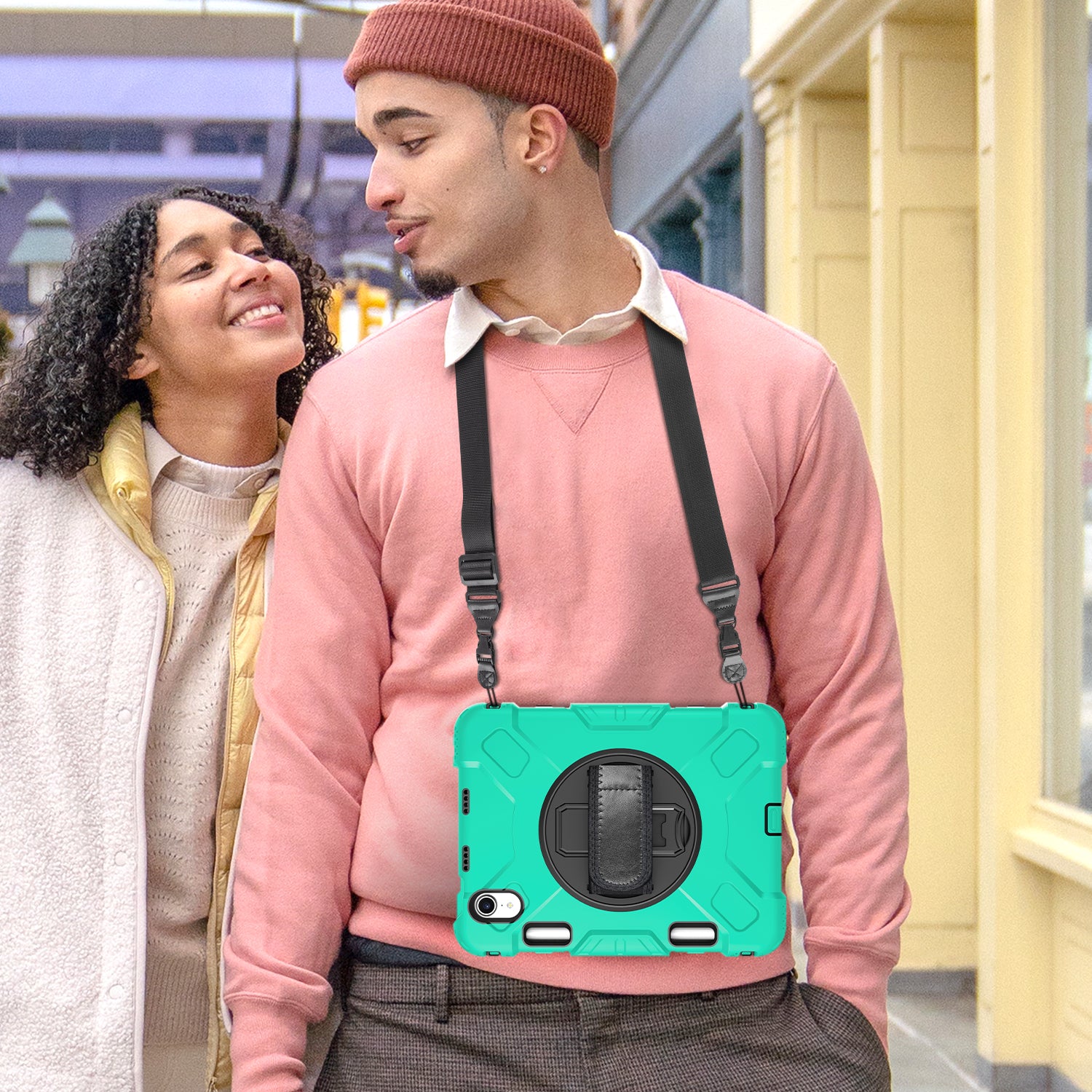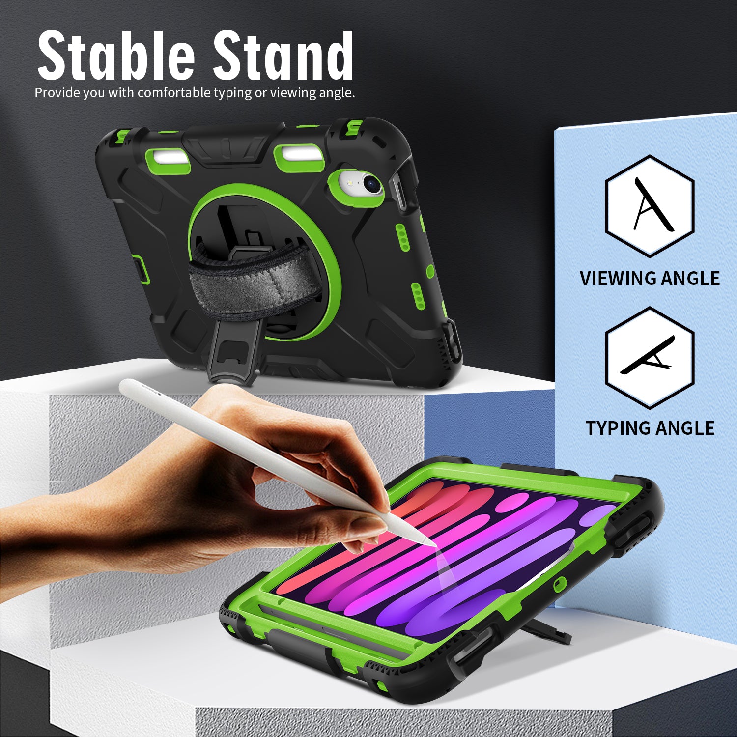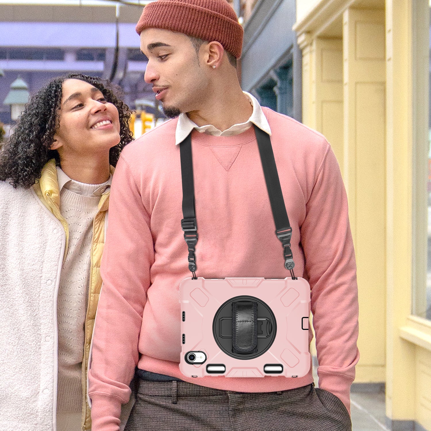 For iPad mini (2021) PC+Silicone Tablet Case Protective Kickstand Cover with Pen Slot / Shoulder Strap