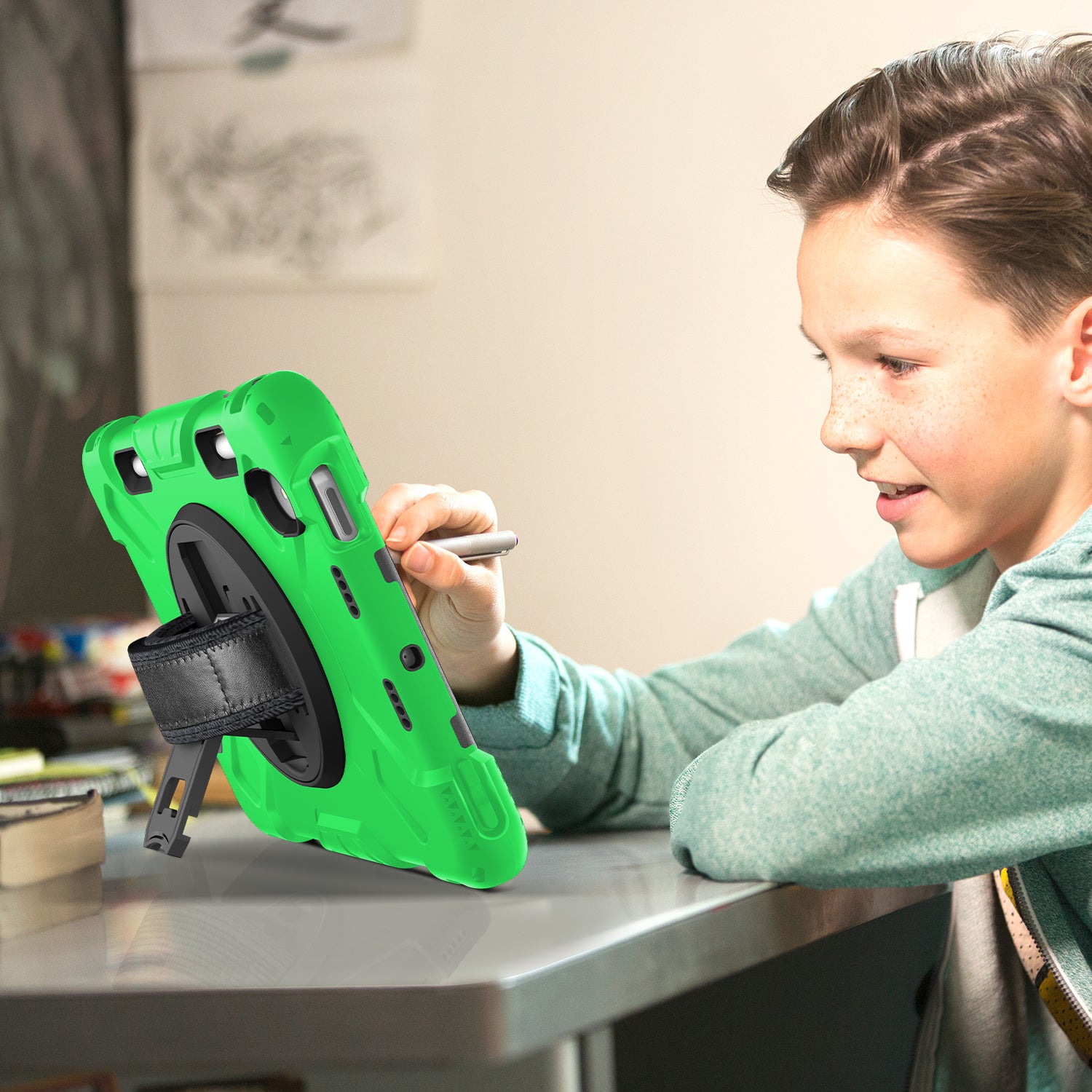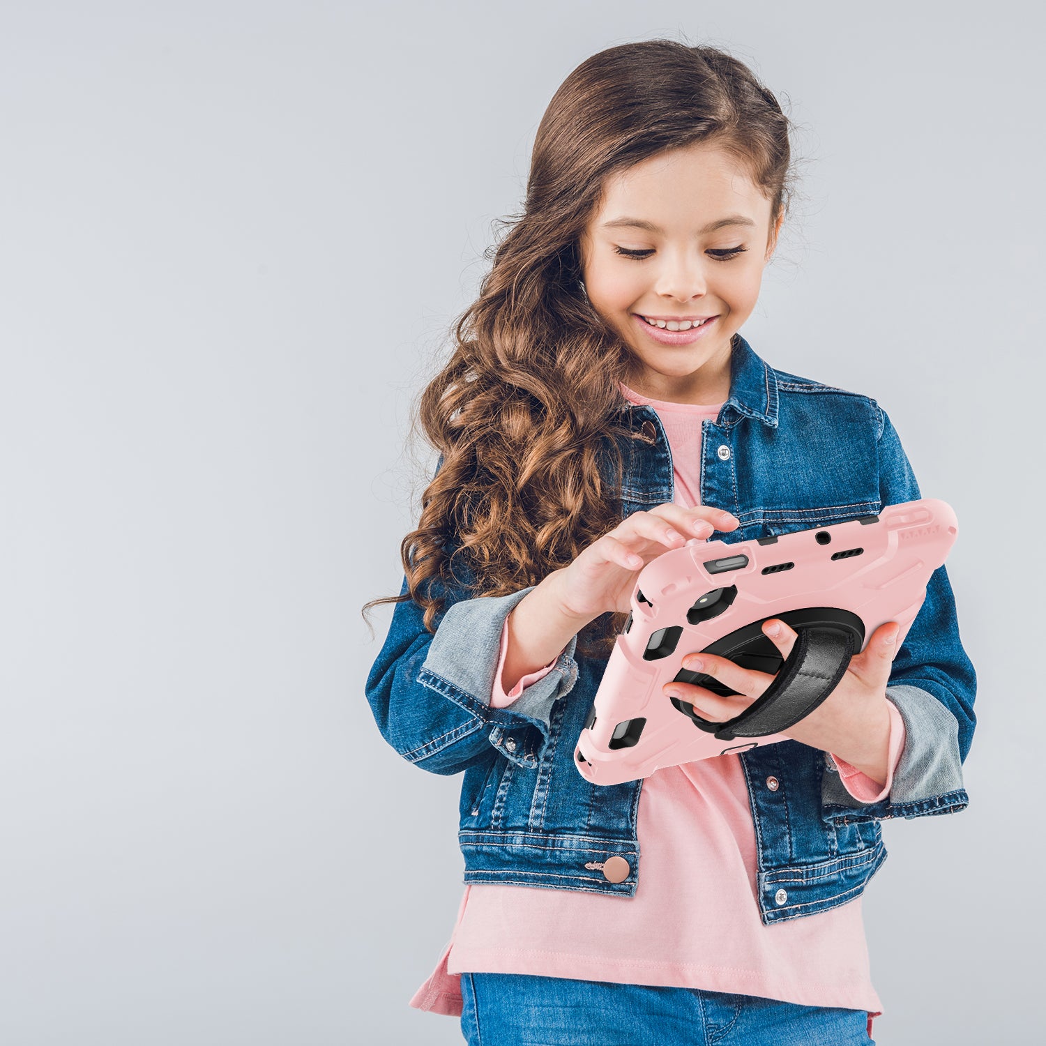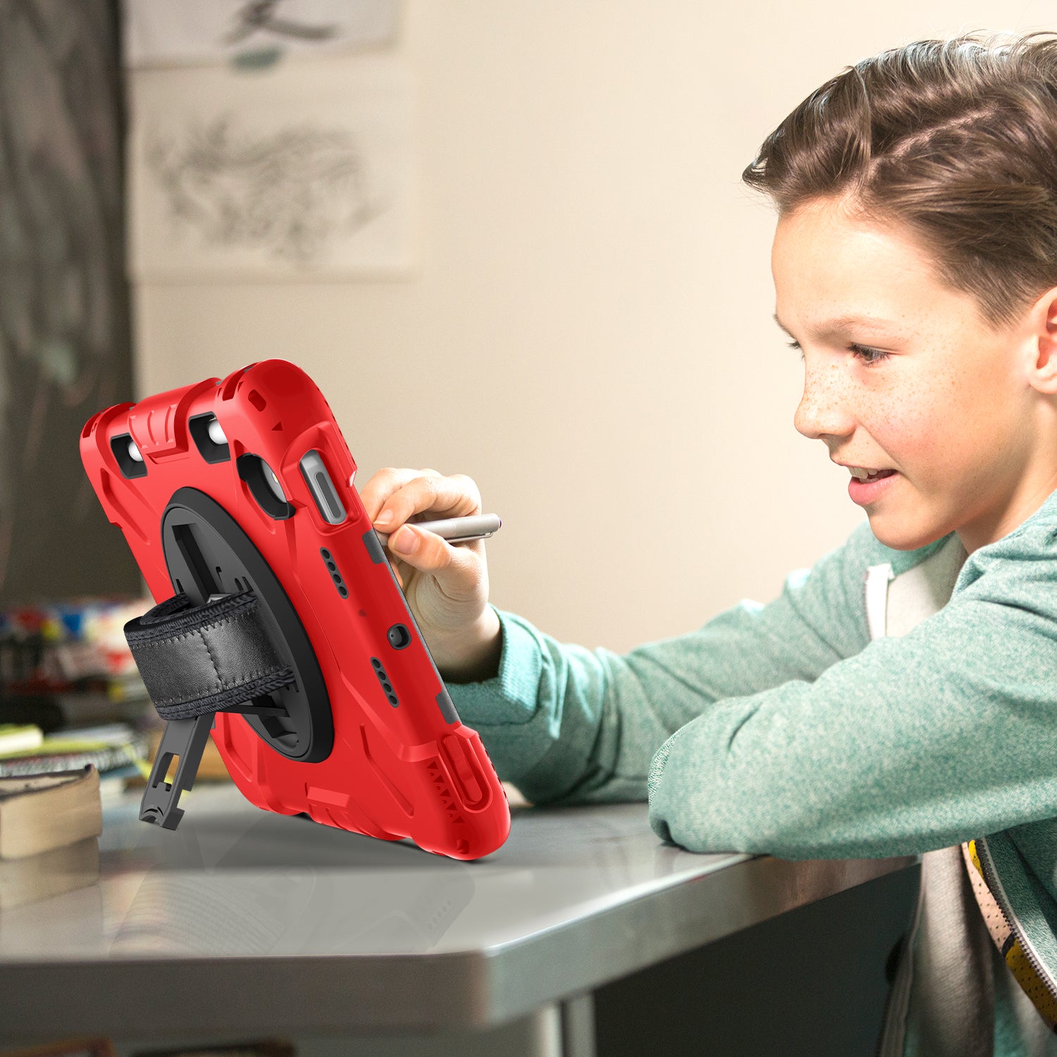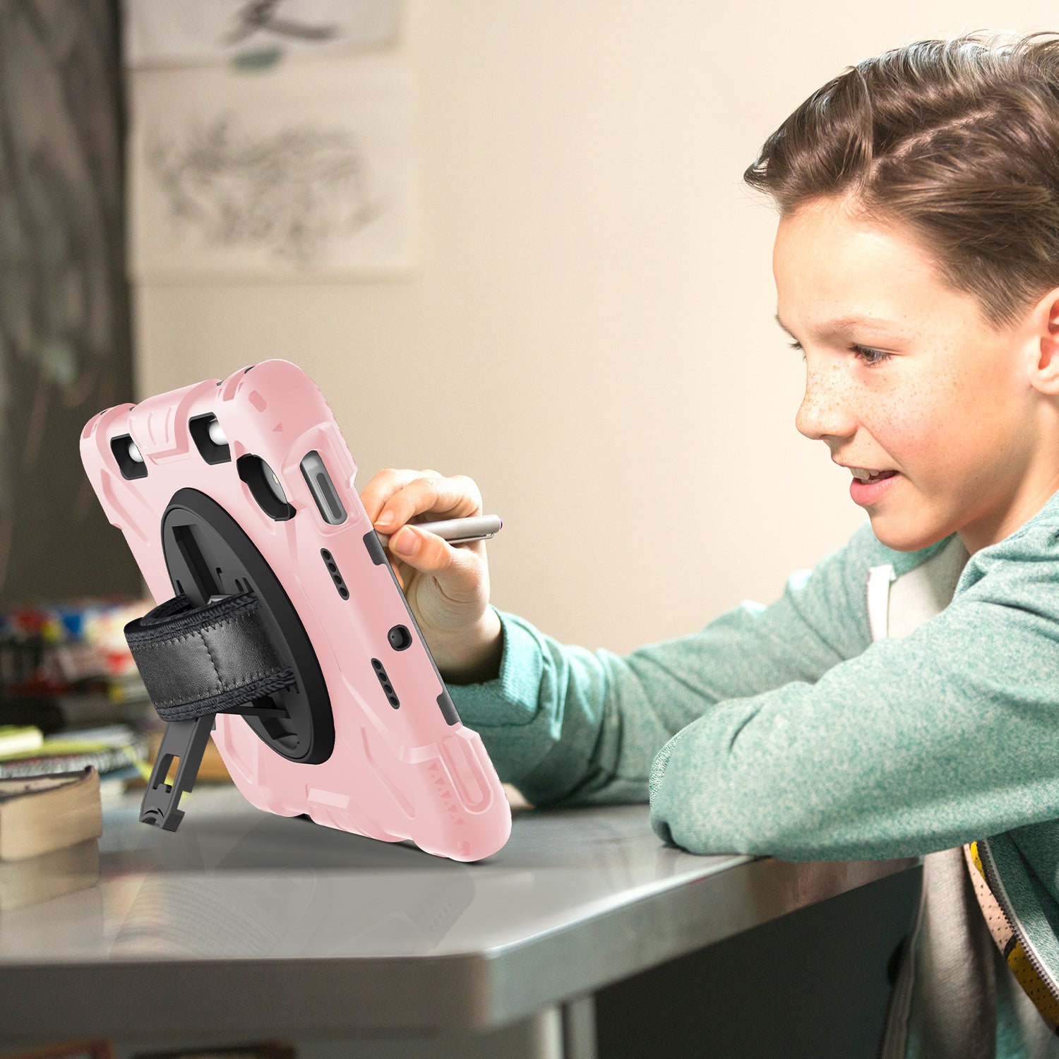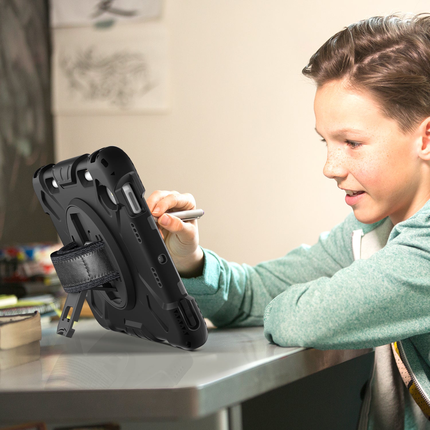 - There is a hand band strap on the back of the tablet case, which allows you to hold your device safely with one hand