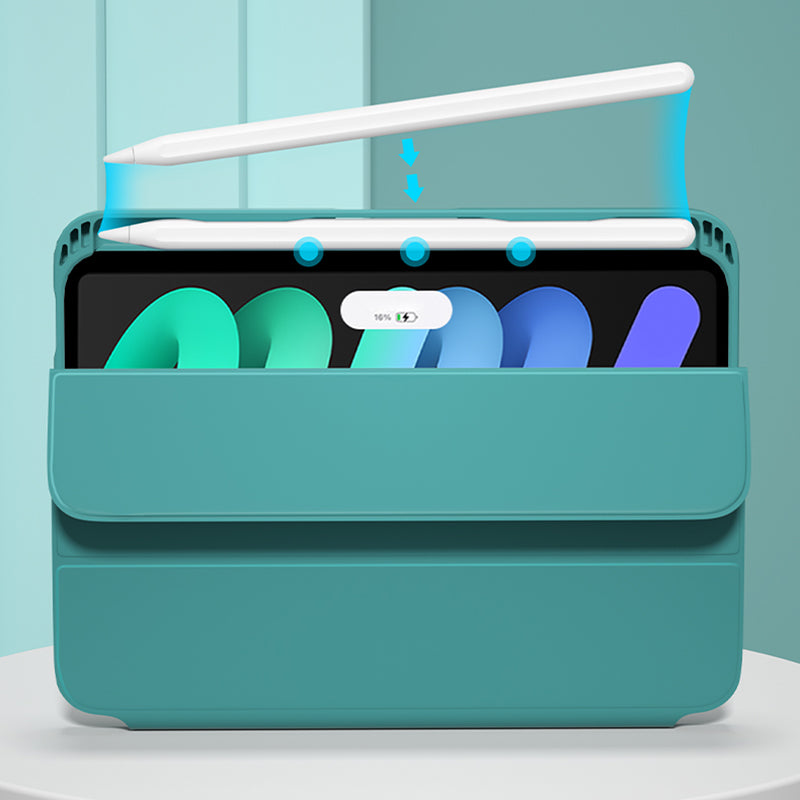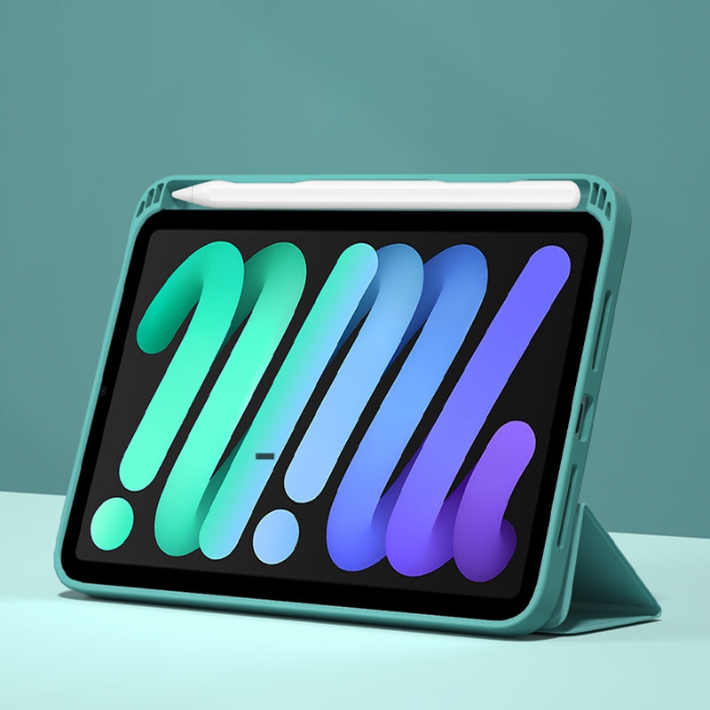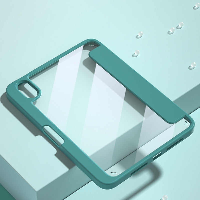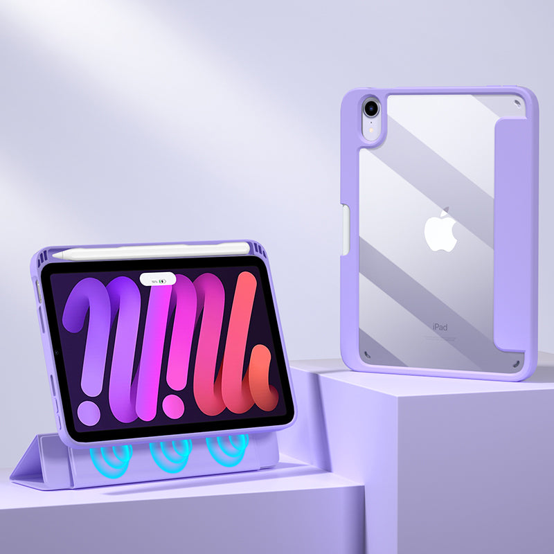 For iPad mini (2021) Shockproof Case PU Leather Magnetic Tablet Cover Transparent Back Tablet Protector with Pencil Holder Support Auto Wake/Sleep