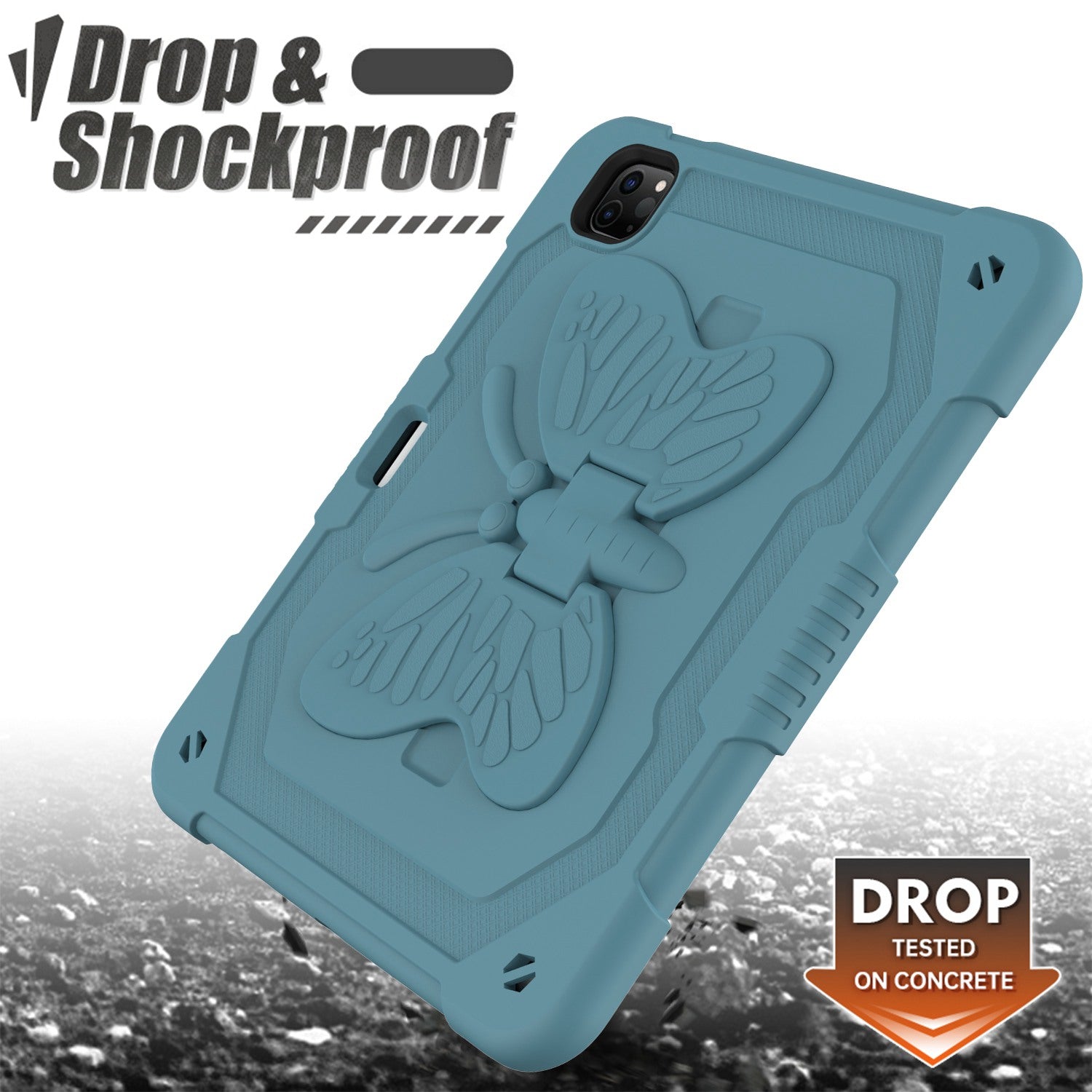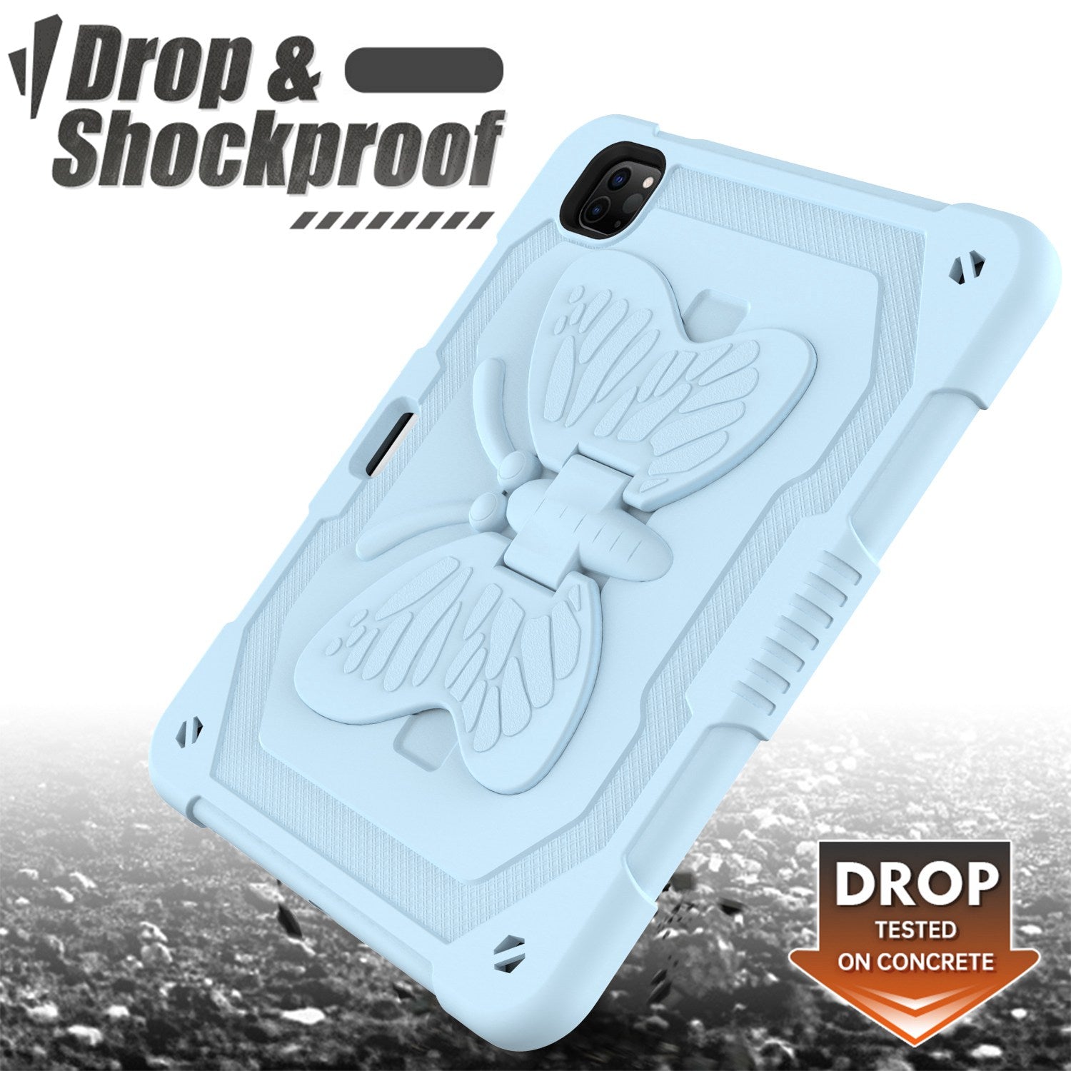 For iPad Pro 11-inch (2021) / (2020) / (2018) / iPad Air (2022) / (2020) Butterfly Shape Kickstand Tablet Case Silicone + PC Shockproof Cover with Shoulder Strap