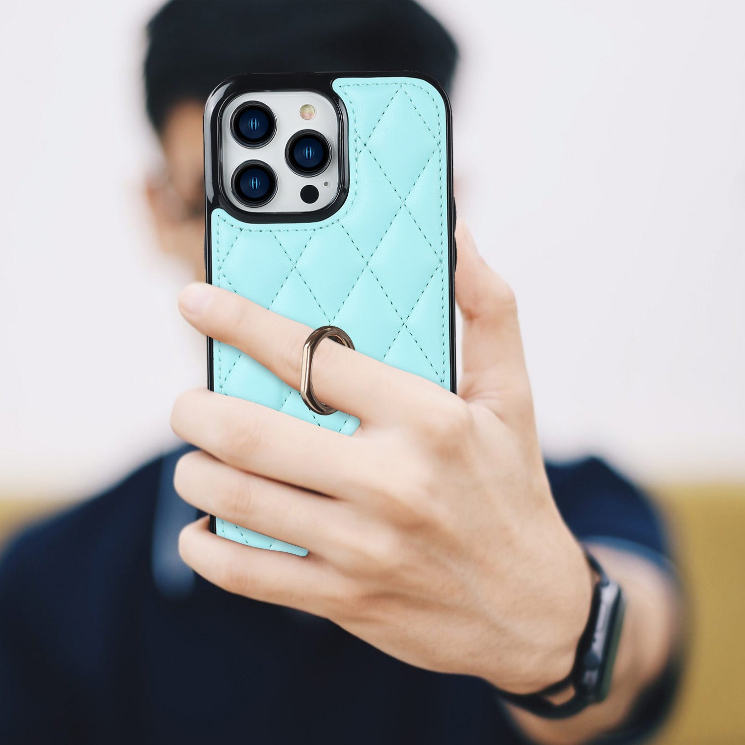 For iPhone 12 Pro Max Anti-Dust PU Leather+TPU Phone Case Stitching Rhombus Ring Holder Kickstand Phone Shell