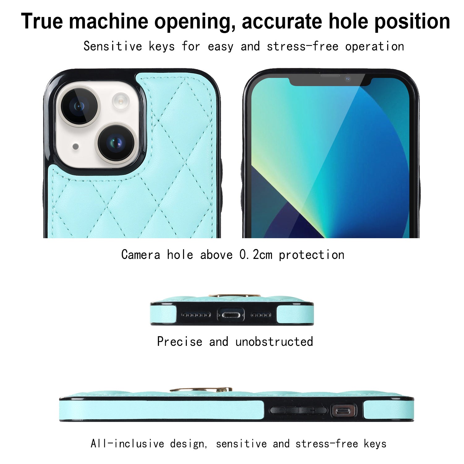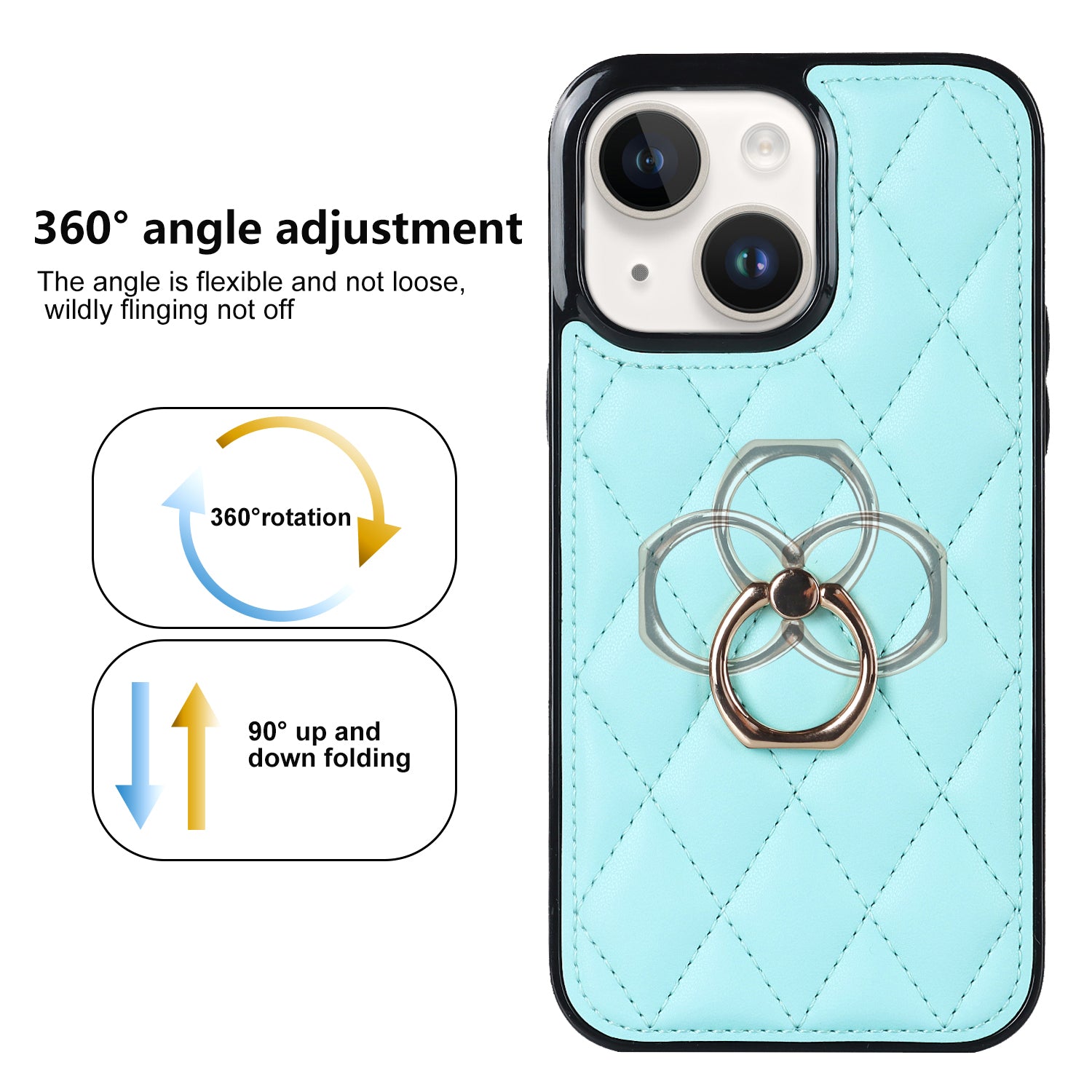 For iPhone 13 6.1 inch PU Leather+TPU Phone Case Stitching Rhombus Ring Holder Kickstand Phone Cover