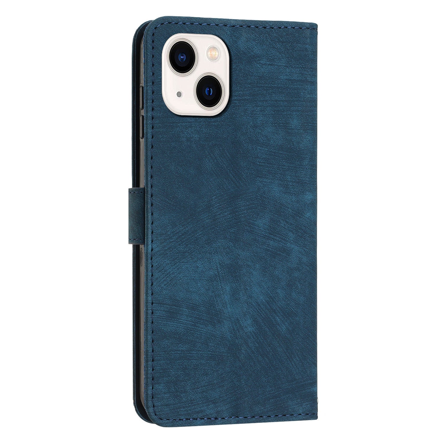For iPhone 13 mini Stand Wallet PU Leather Phone Case Skin-touch Lines Imprinted Cover