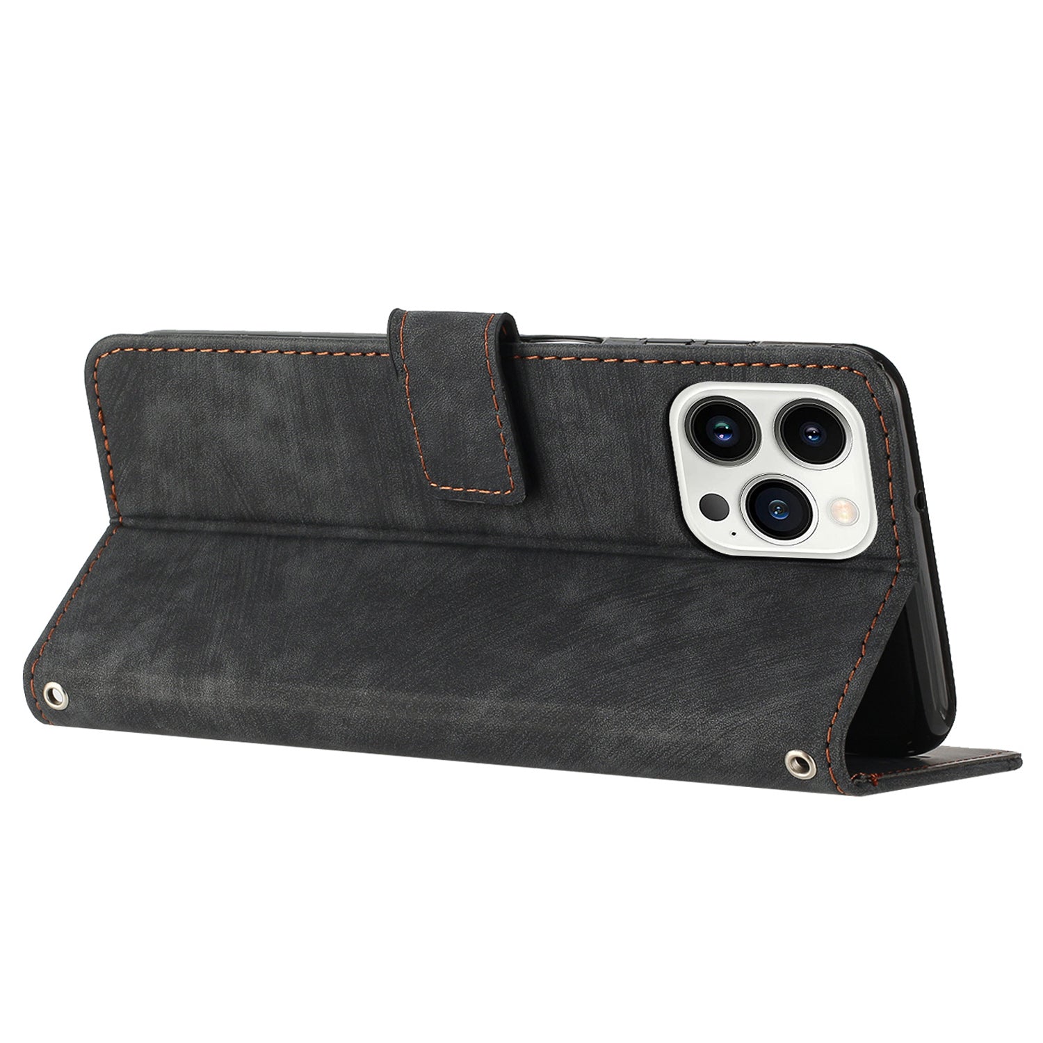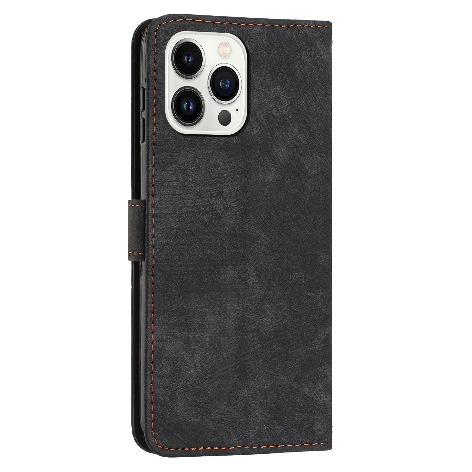 For iPhone 13 Pro 6.1 inch PU Leather Skin-touch Phone Case Lines Imprinted Wallet Stand Flip Cover