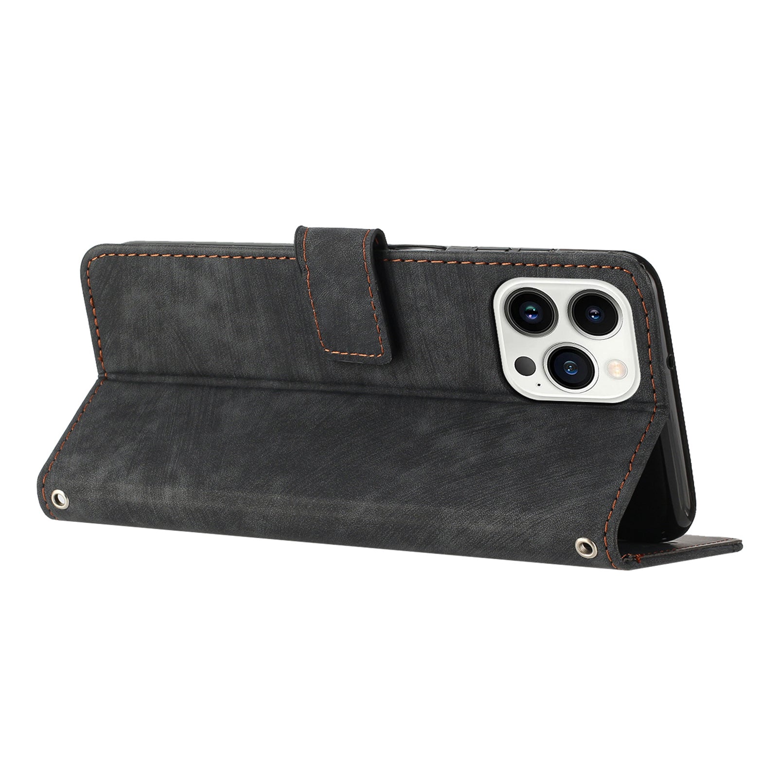 - The magnetic clasp closes easily and firmly to keep the phone, cash and cards in one place neatly and securely