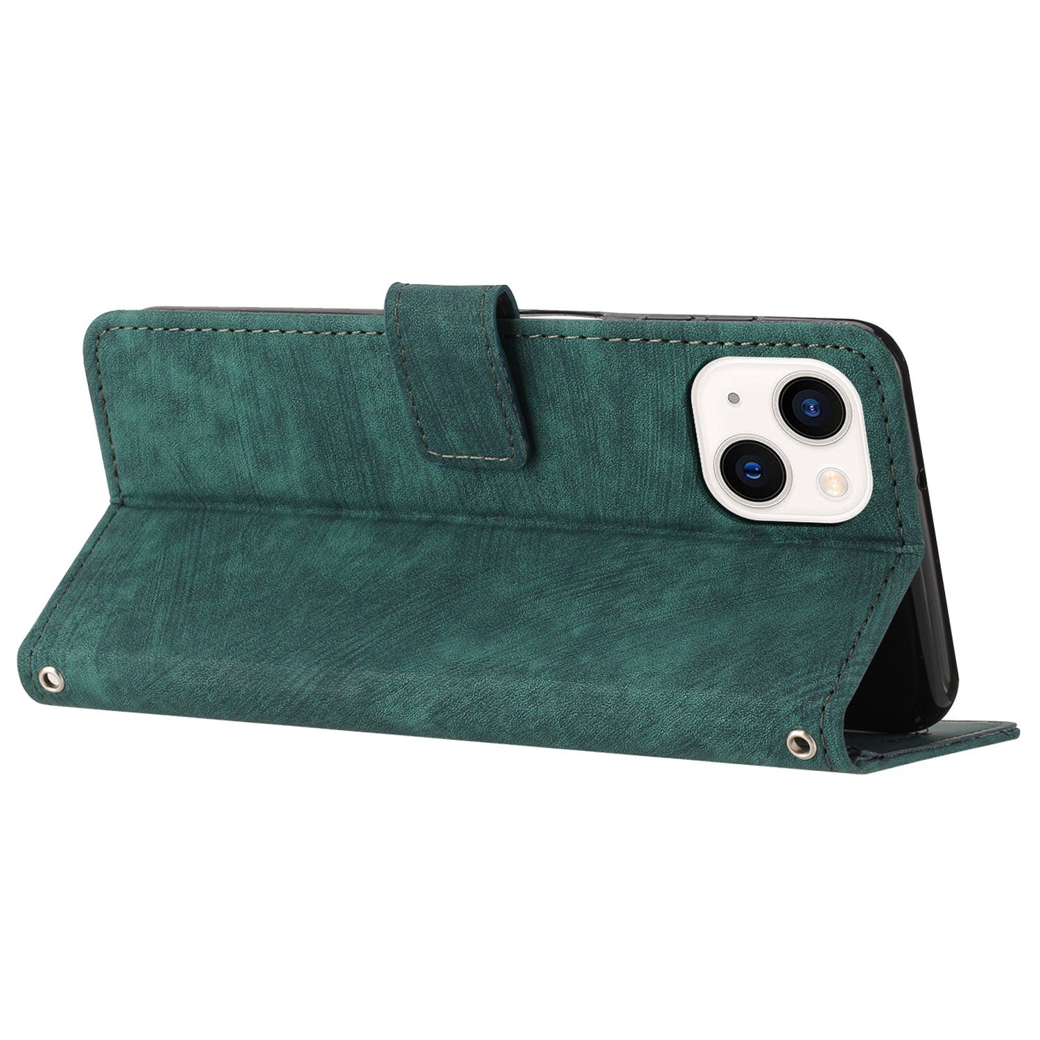 For iPhone 14 / 13 6.1 inch PU Leather Phone Case Stand Lines Imprinted Skin-touch Wallet Cover